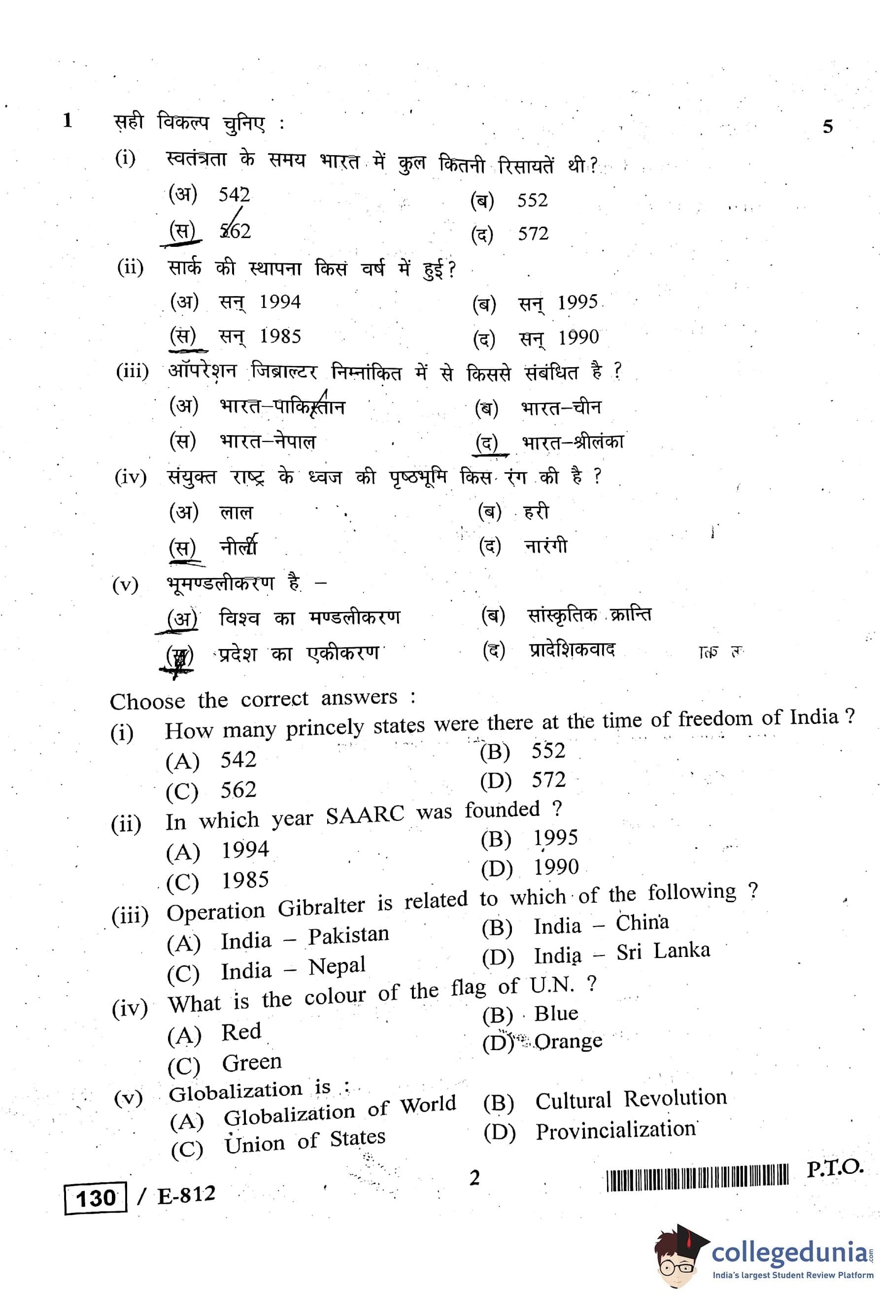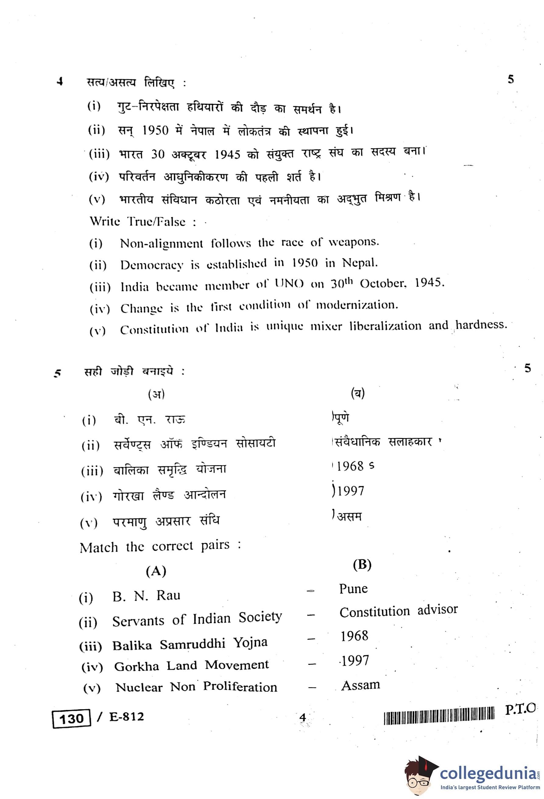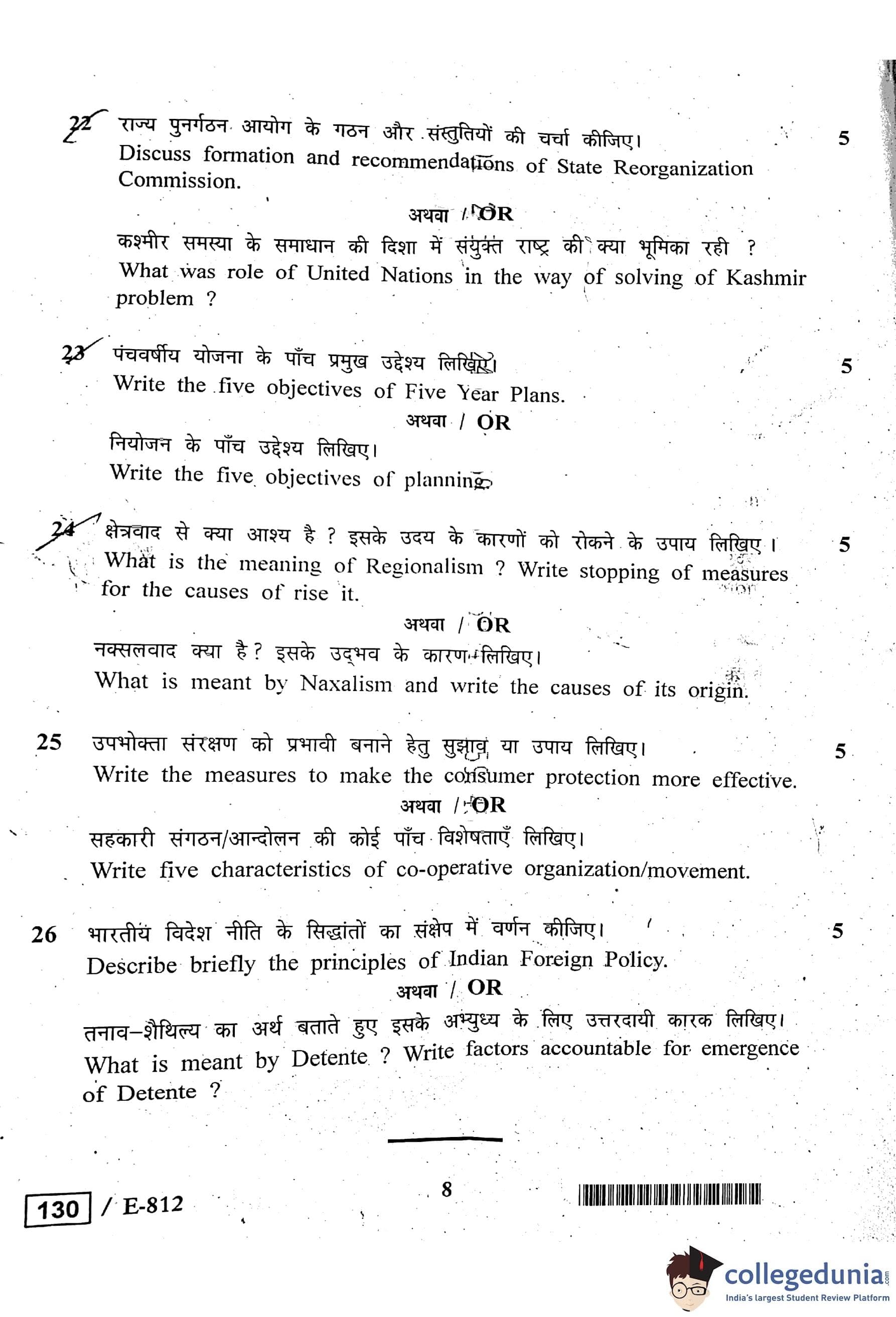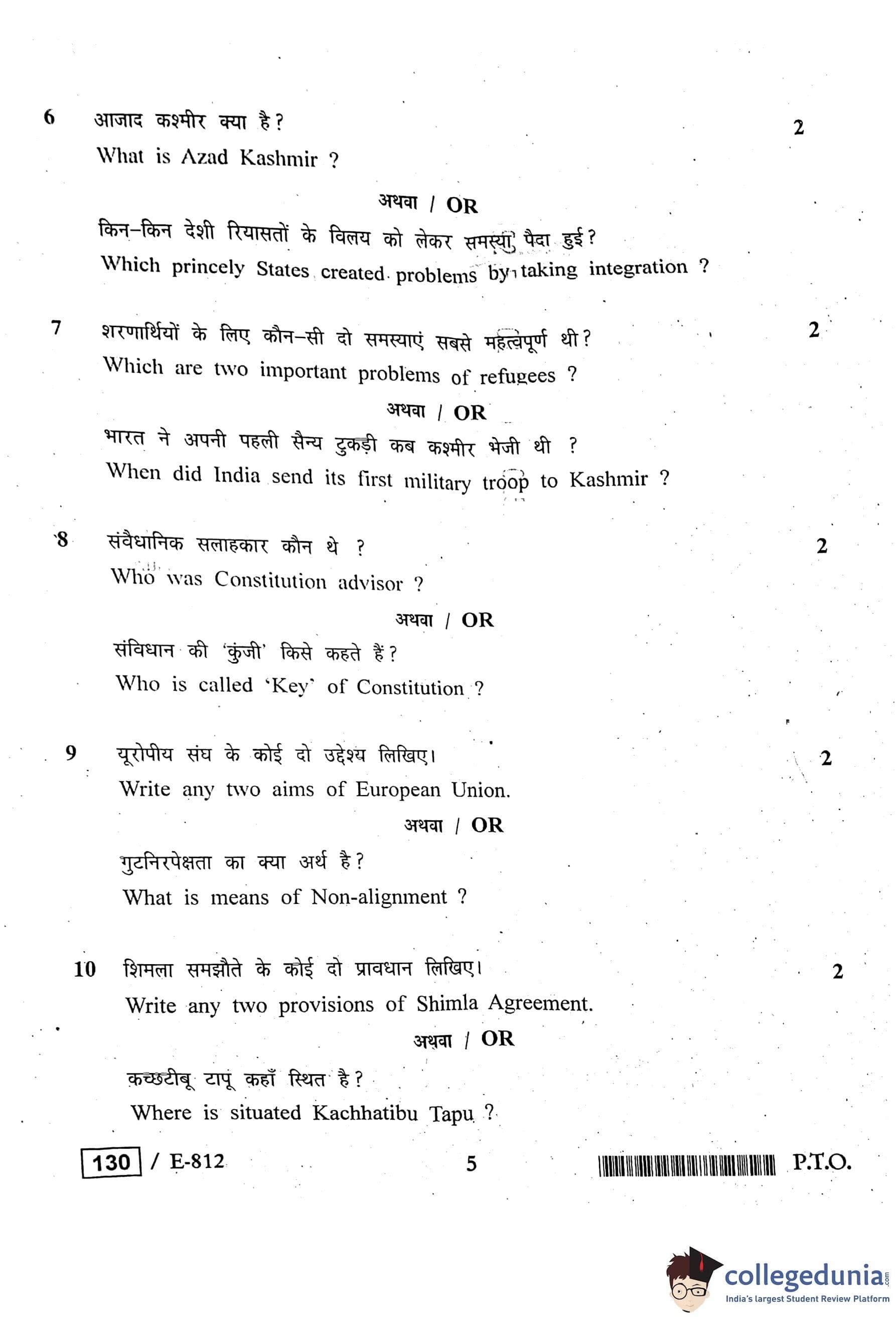 MP Board 12th Political Science Question Paper 2020 with Answer Key