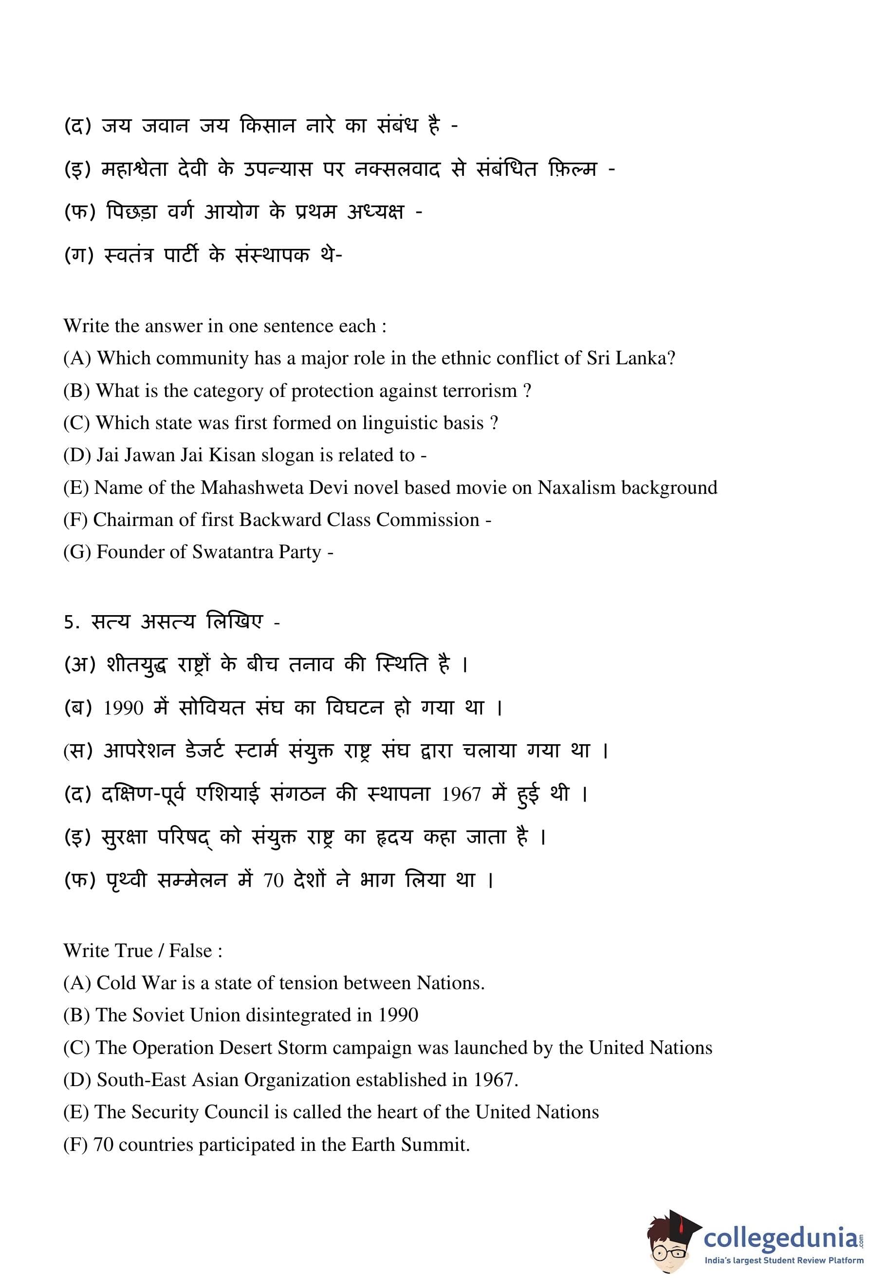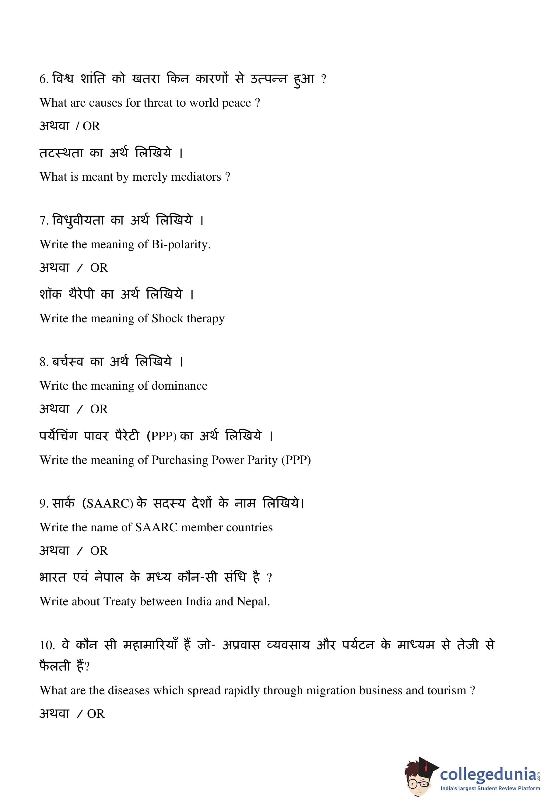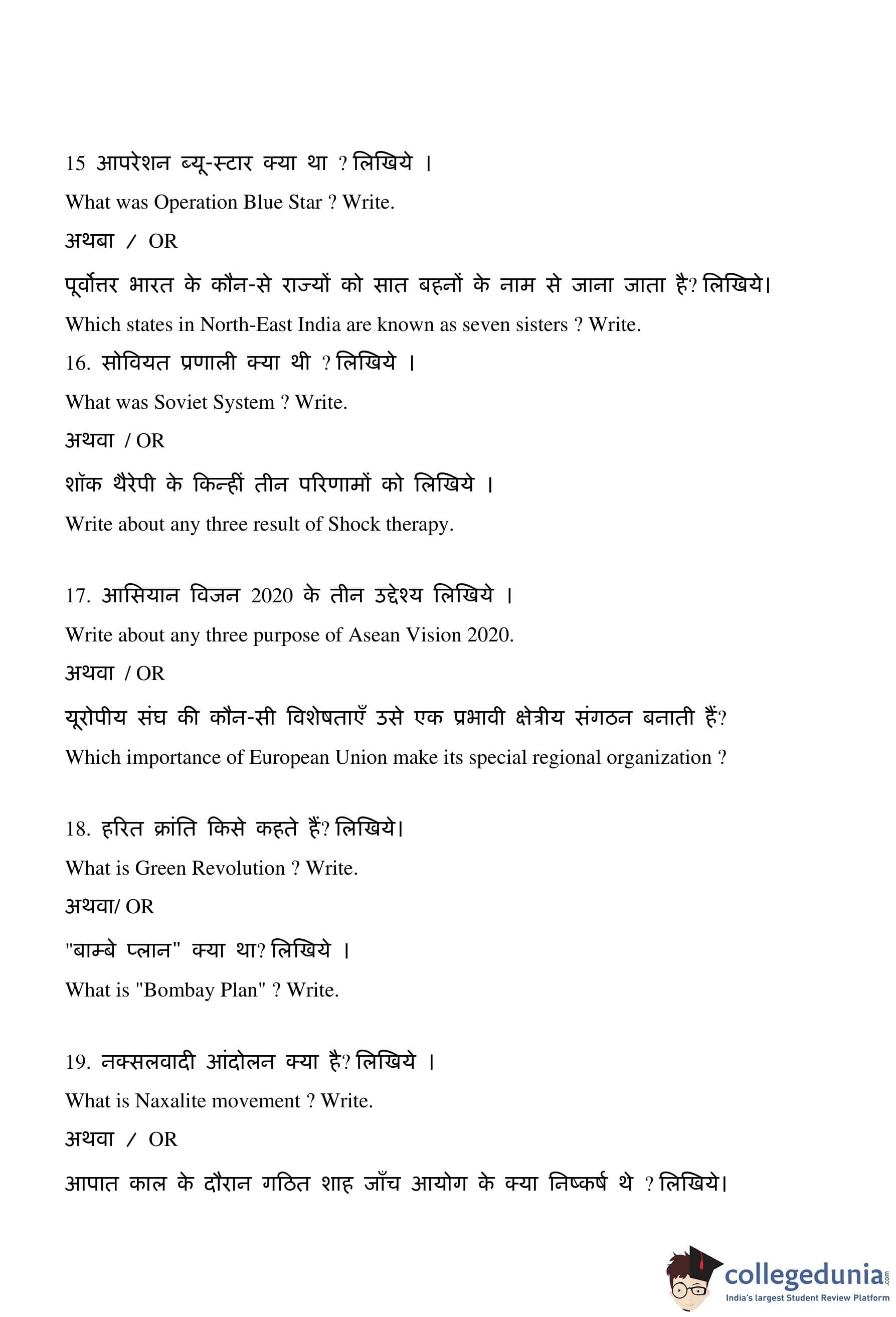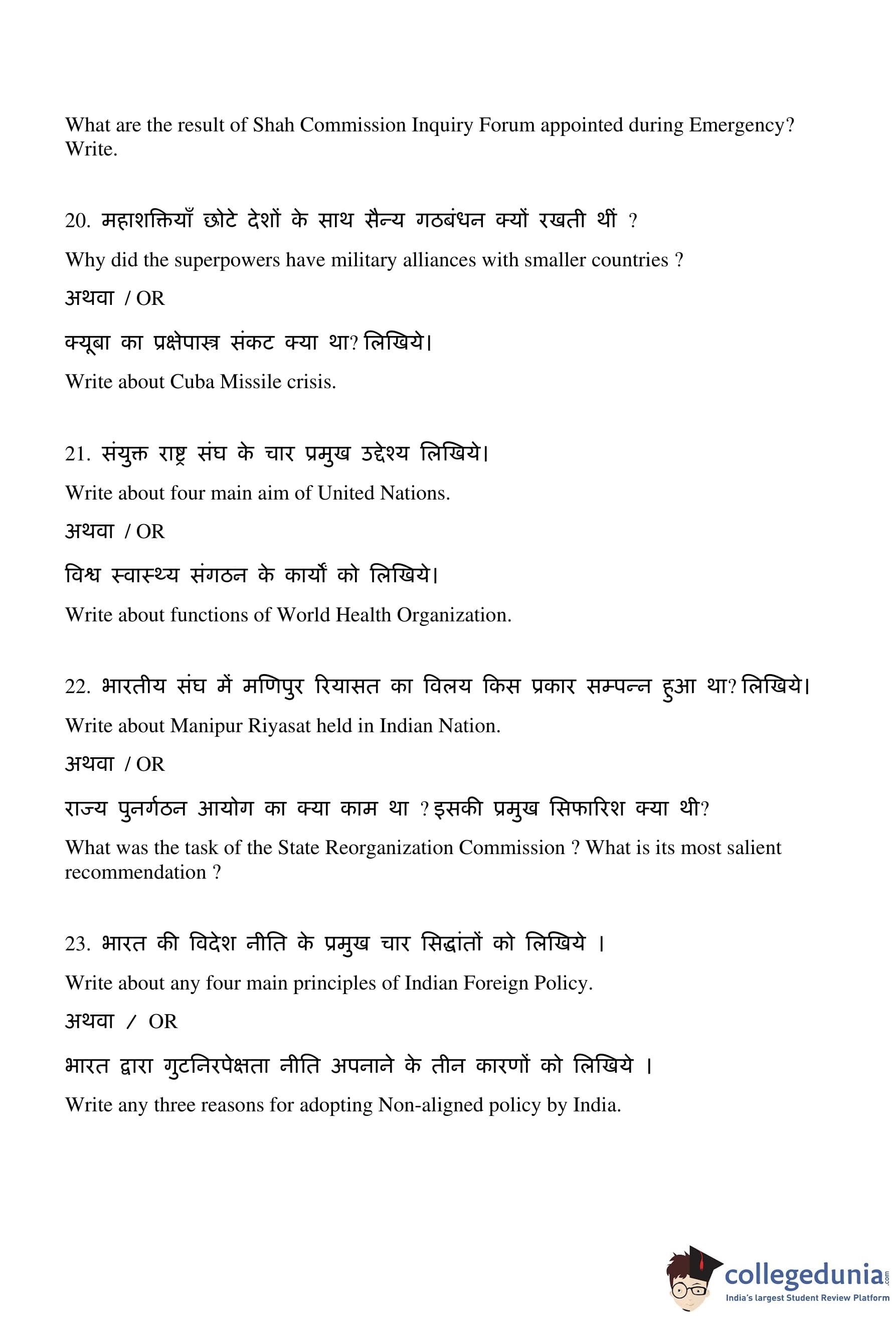MP Board 12th Political Science Question Paper 2022 with Answer Key