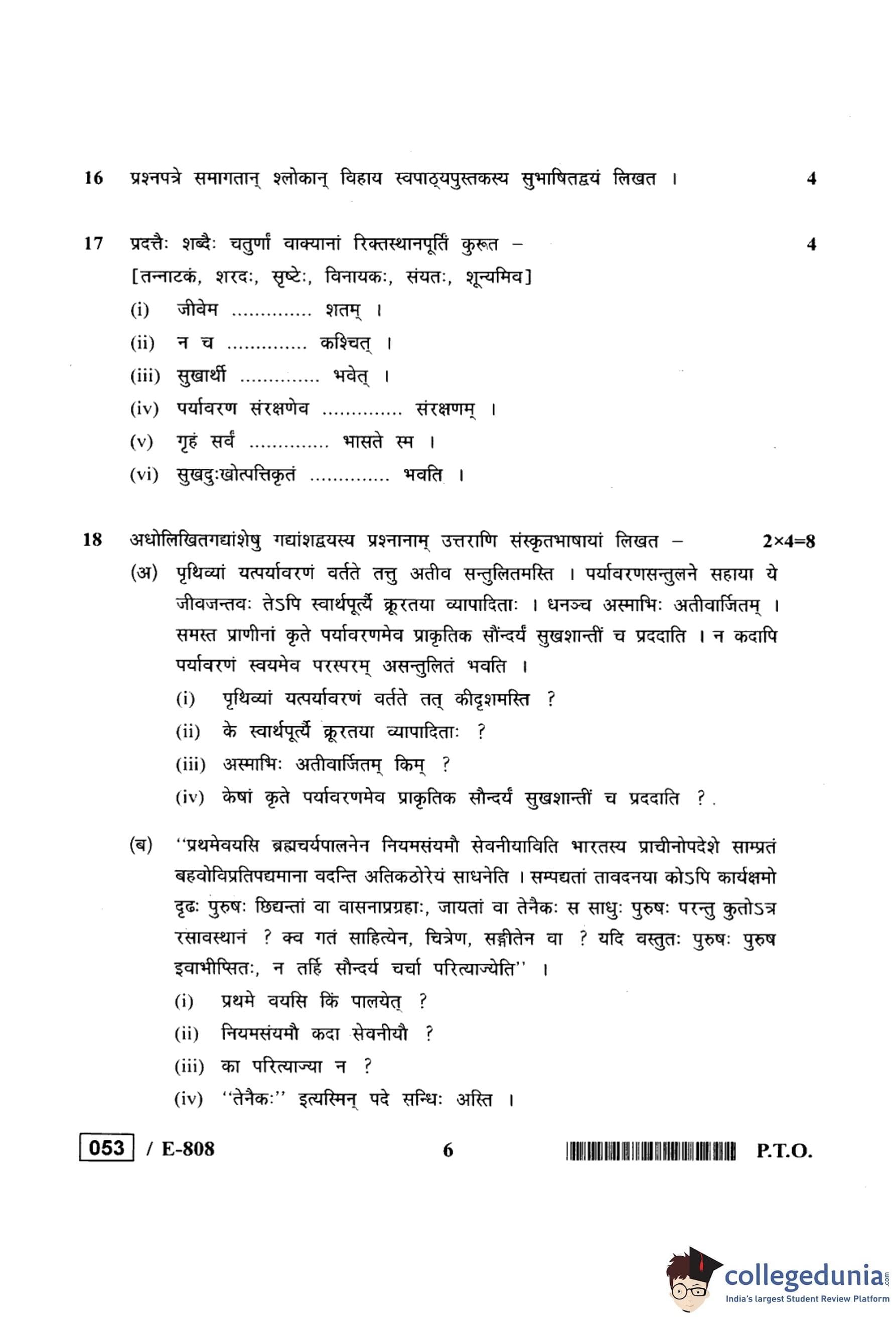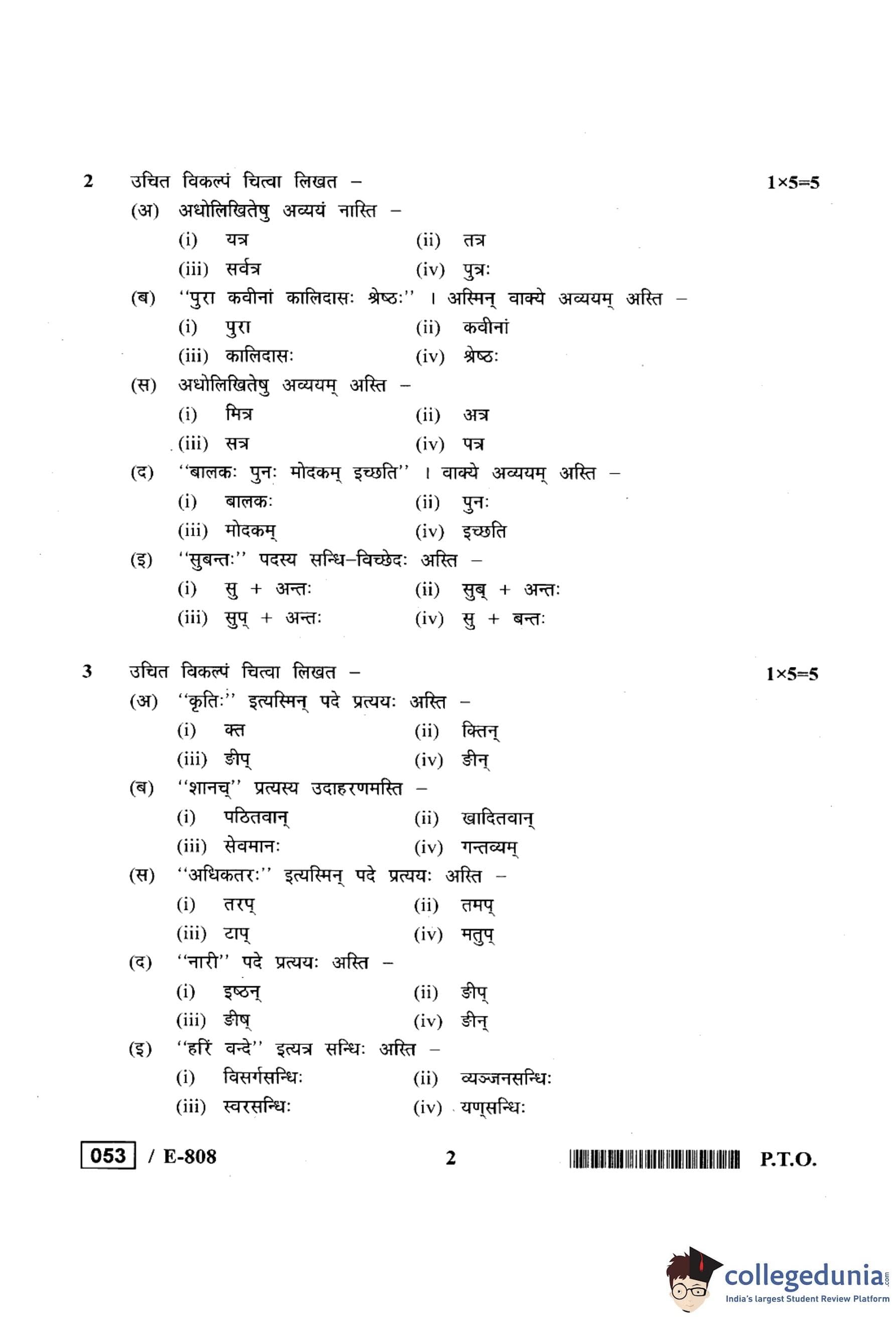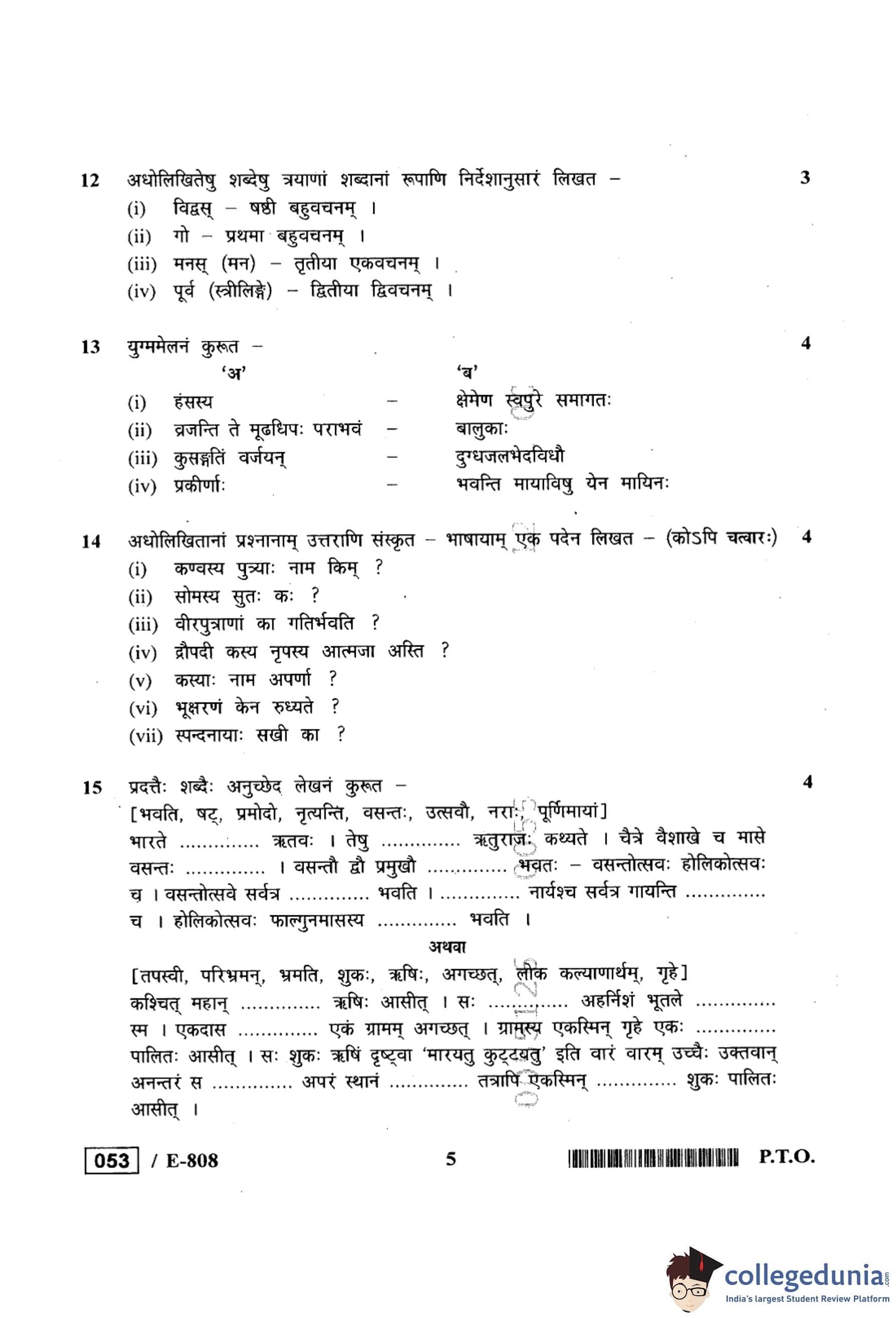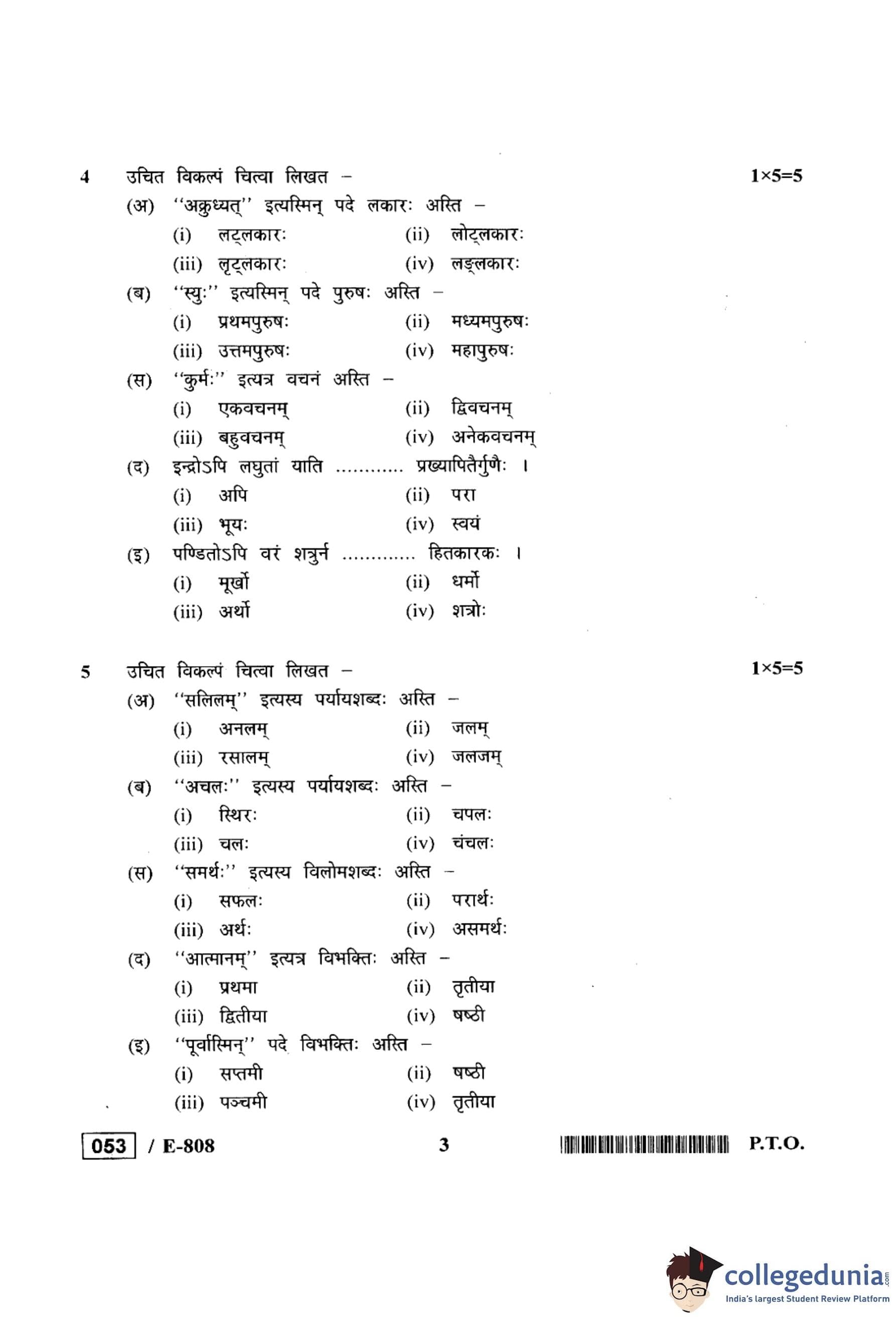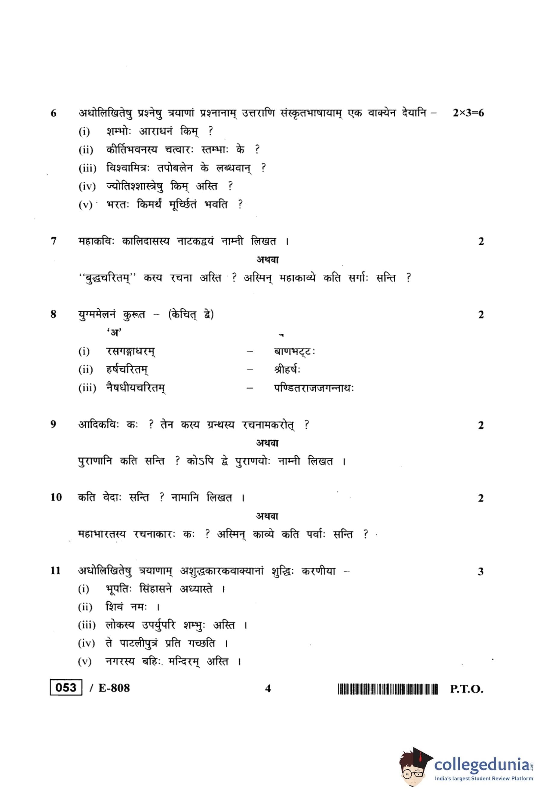 MP Board 12th Sanskrit (General) Question Paper 2020 with Answer Key