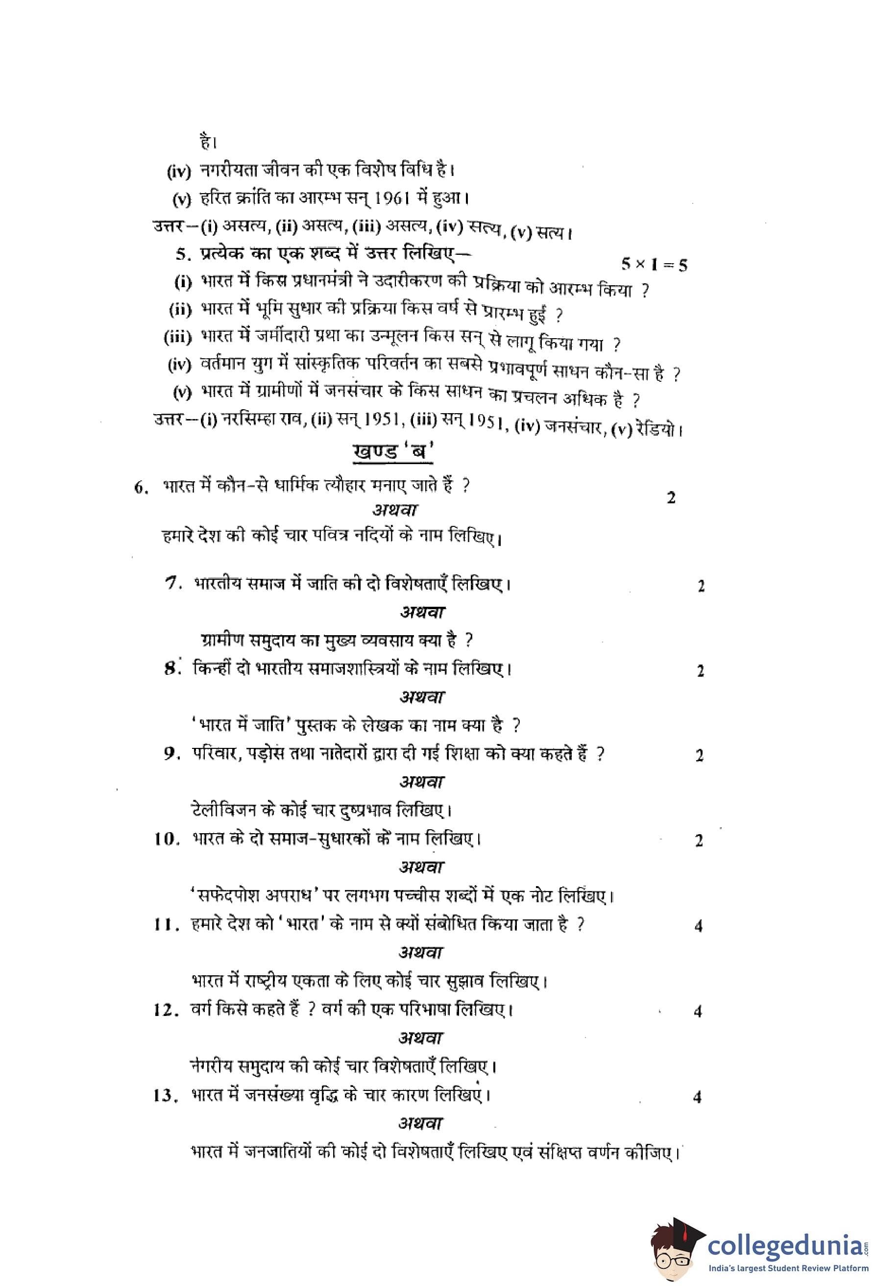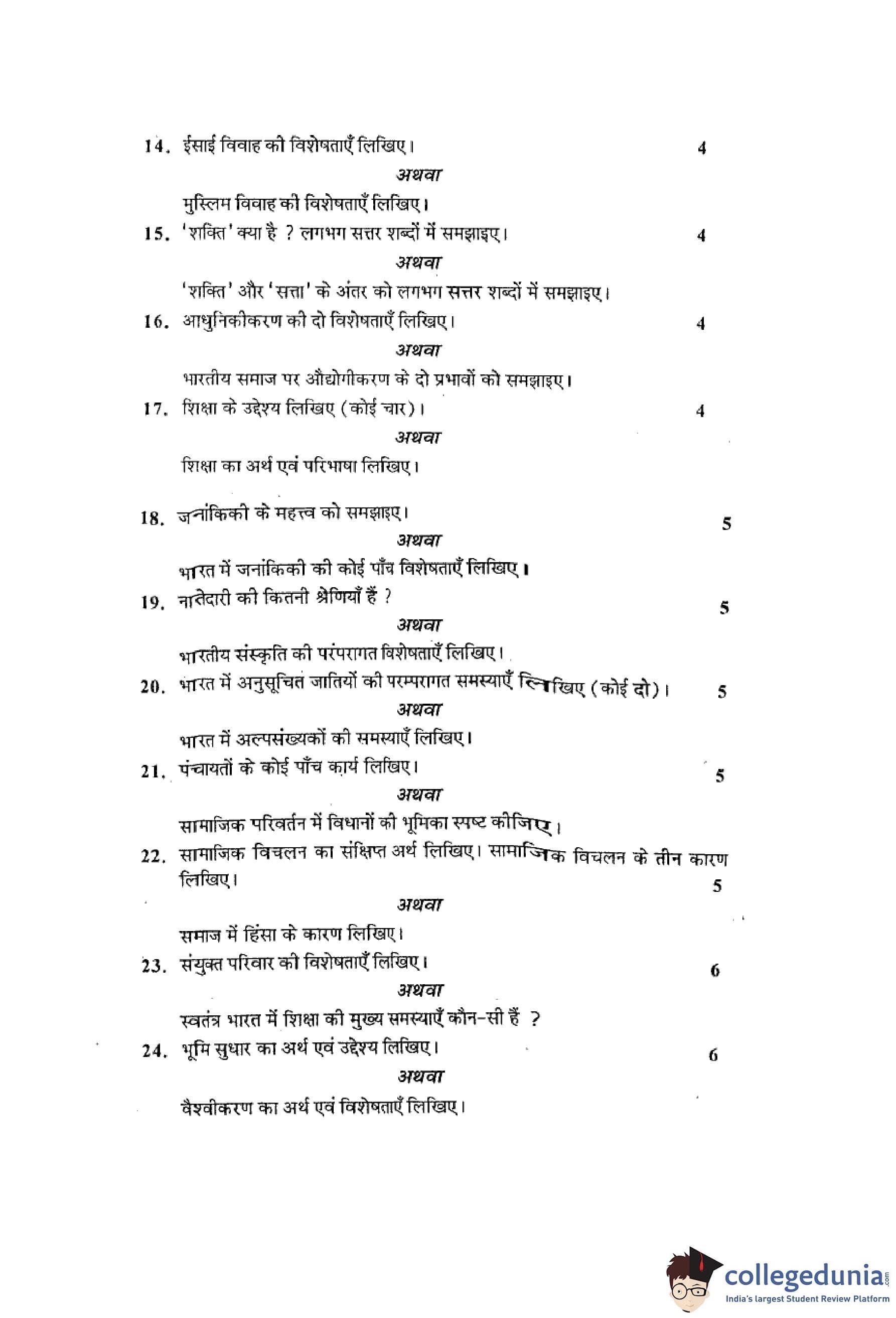 MP Board 12th Sociology Hindi Question Paper 2014 with Answer Key