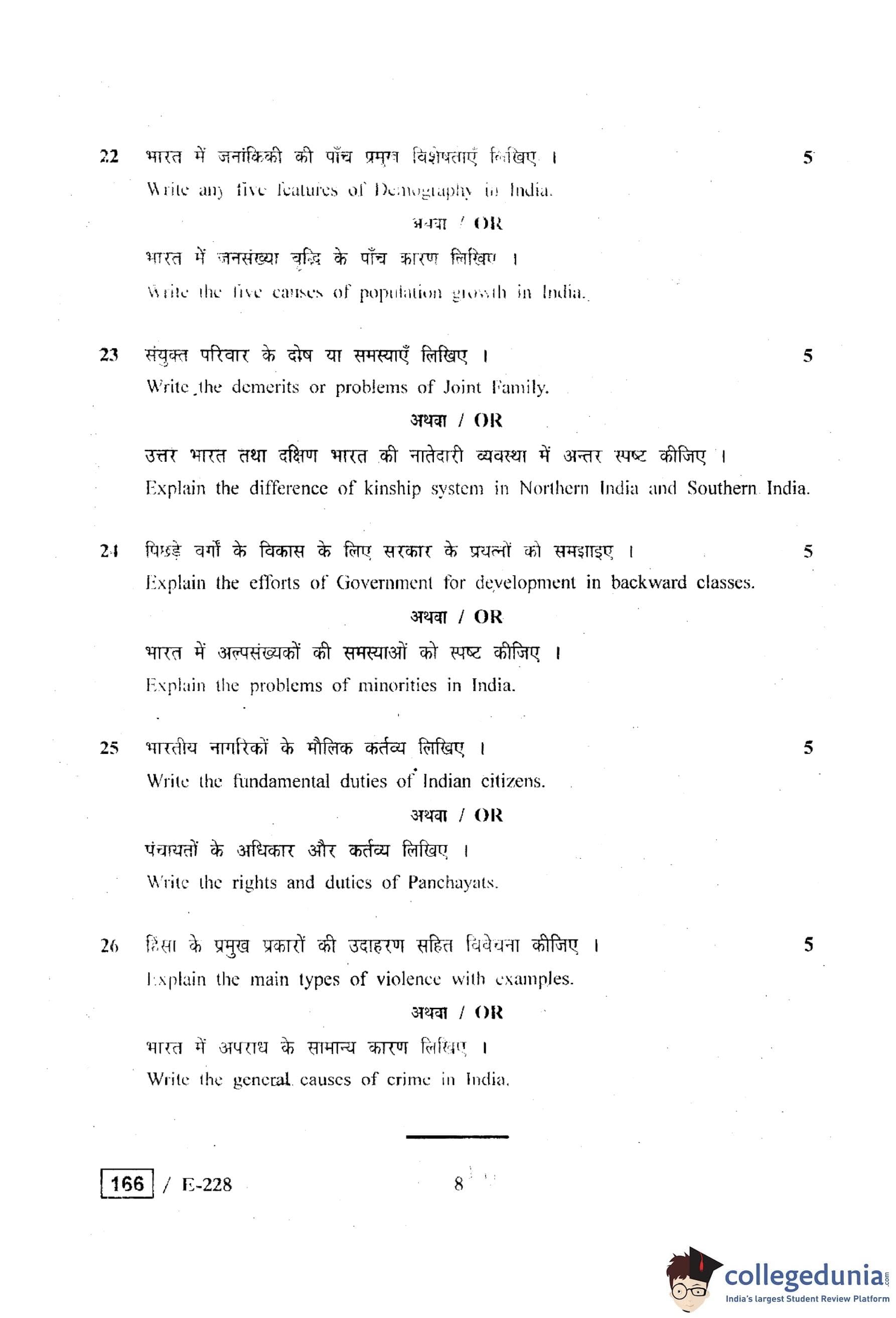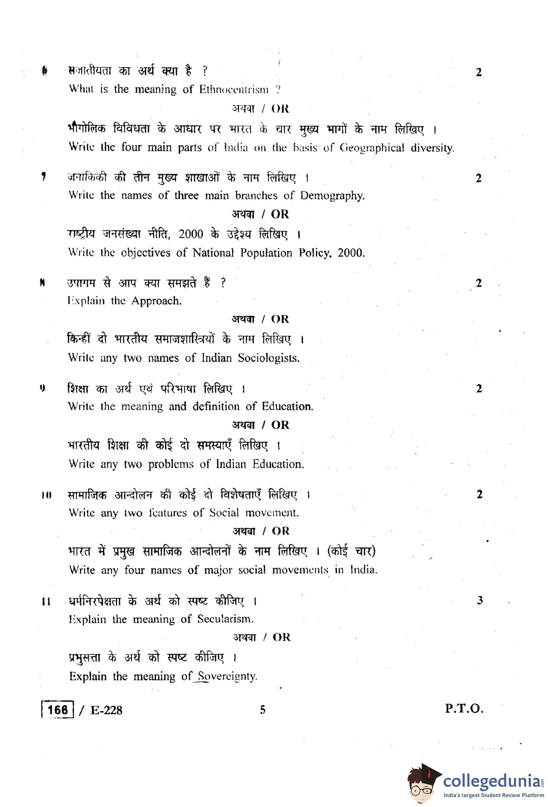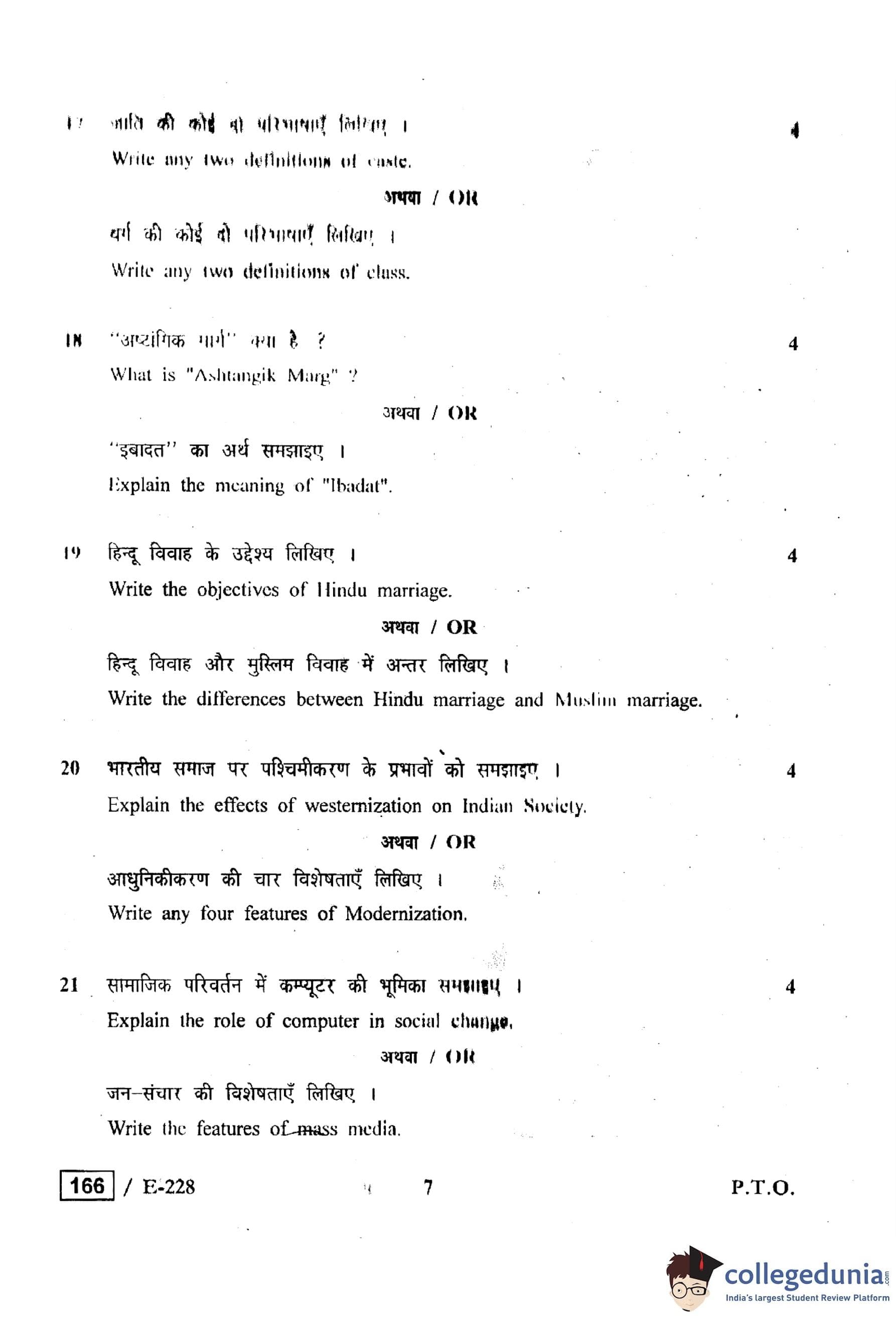MP Board 12th Sociology Question Paper 2019 with Answer Key