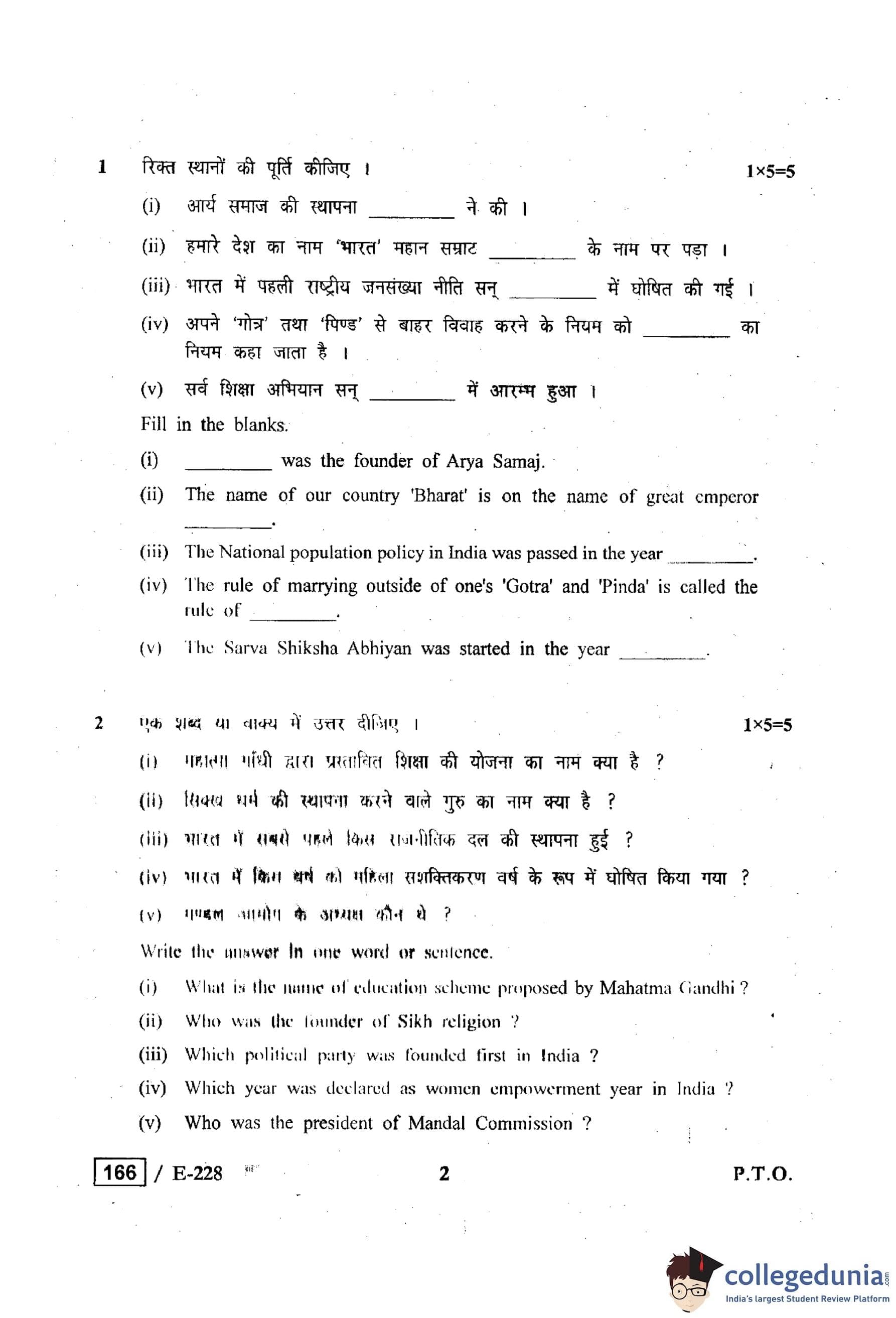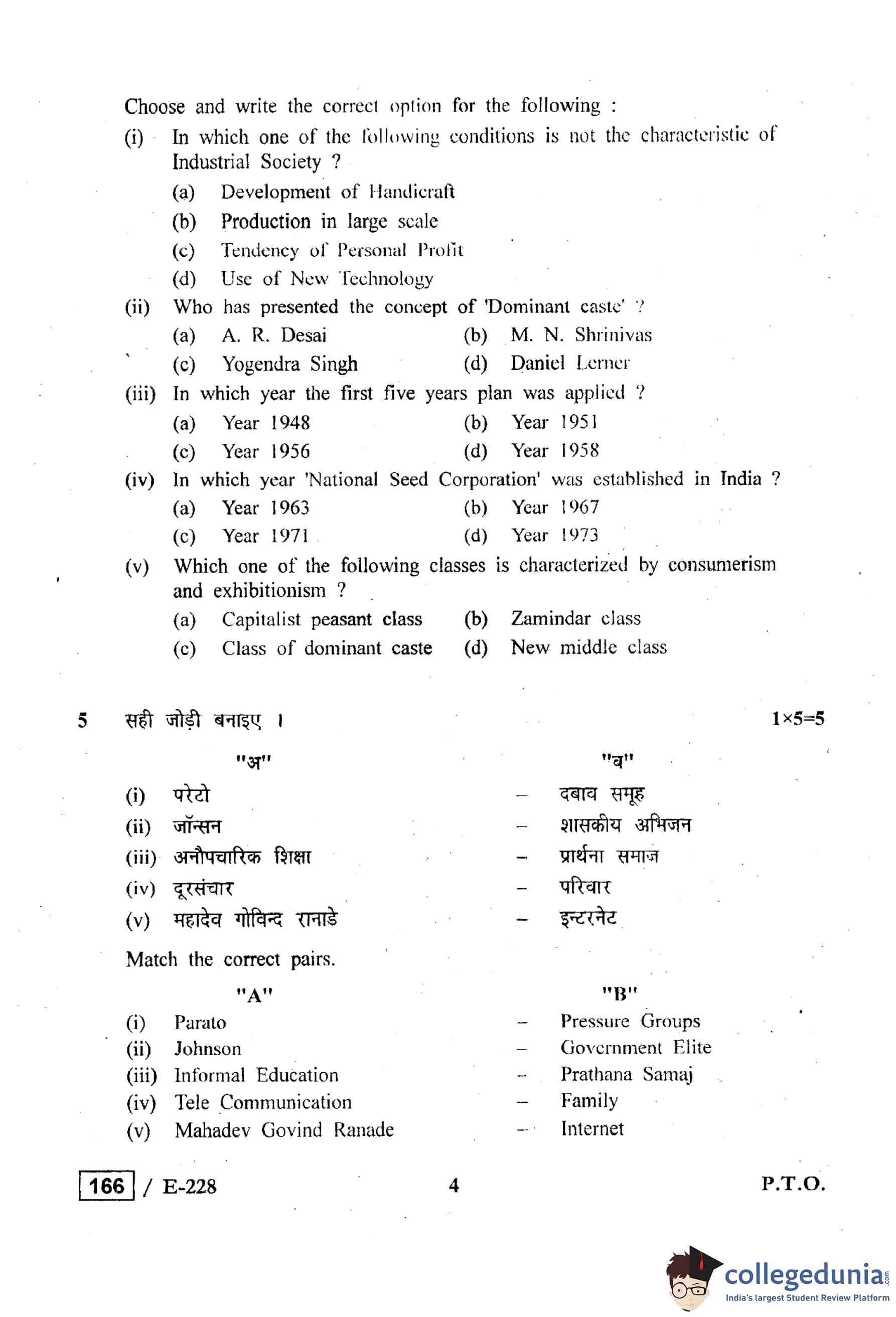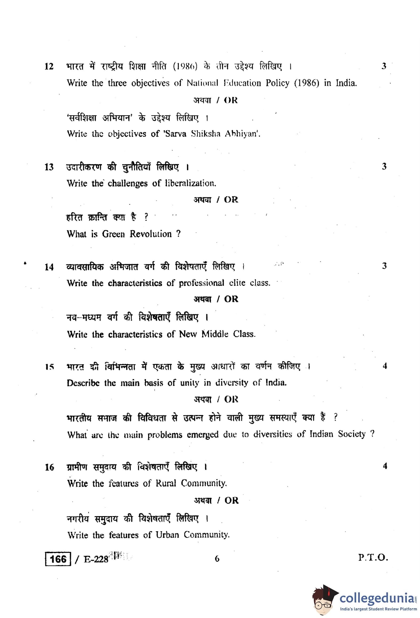 MP Board 12th Sociology Question Paper 2019 with Answer Key