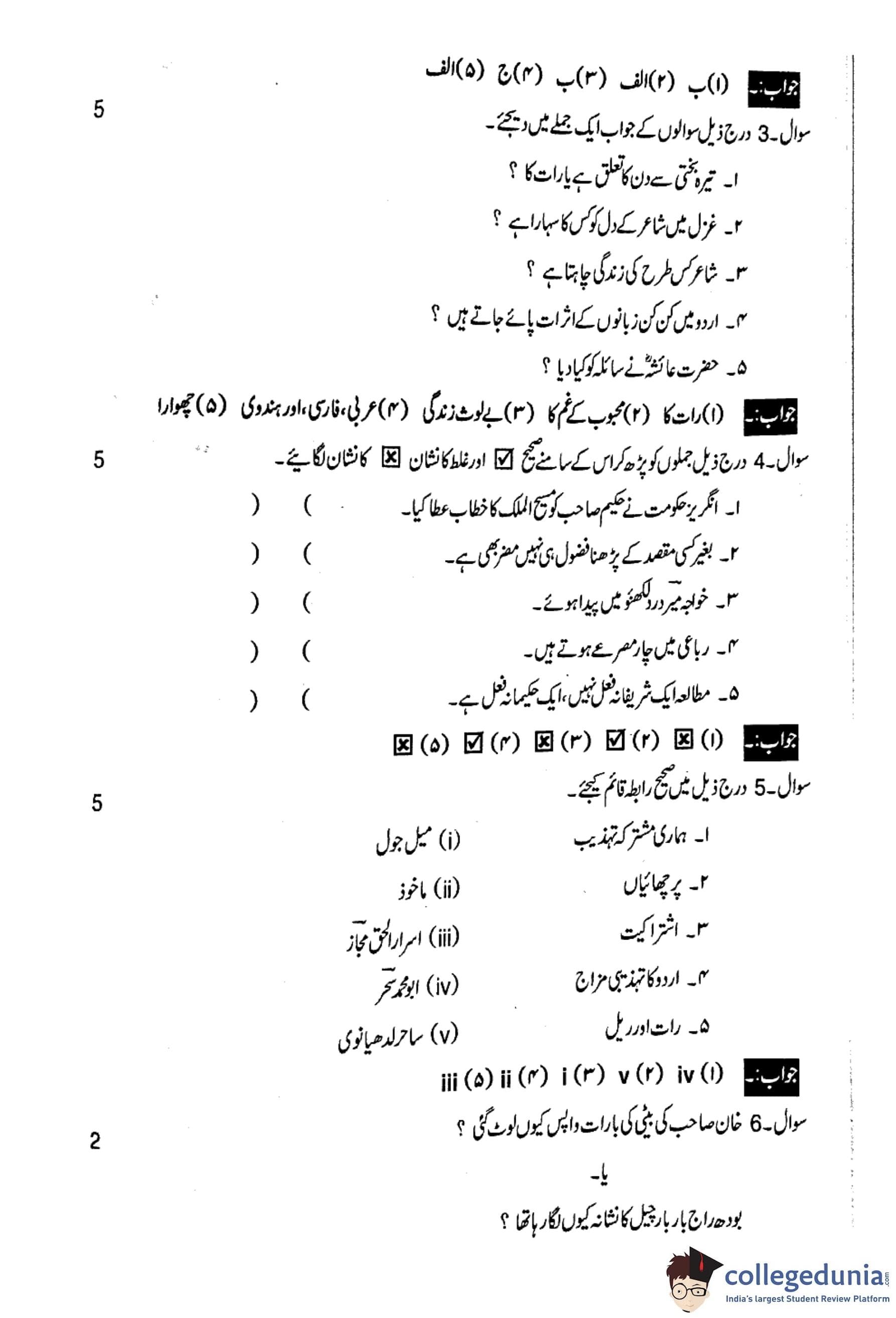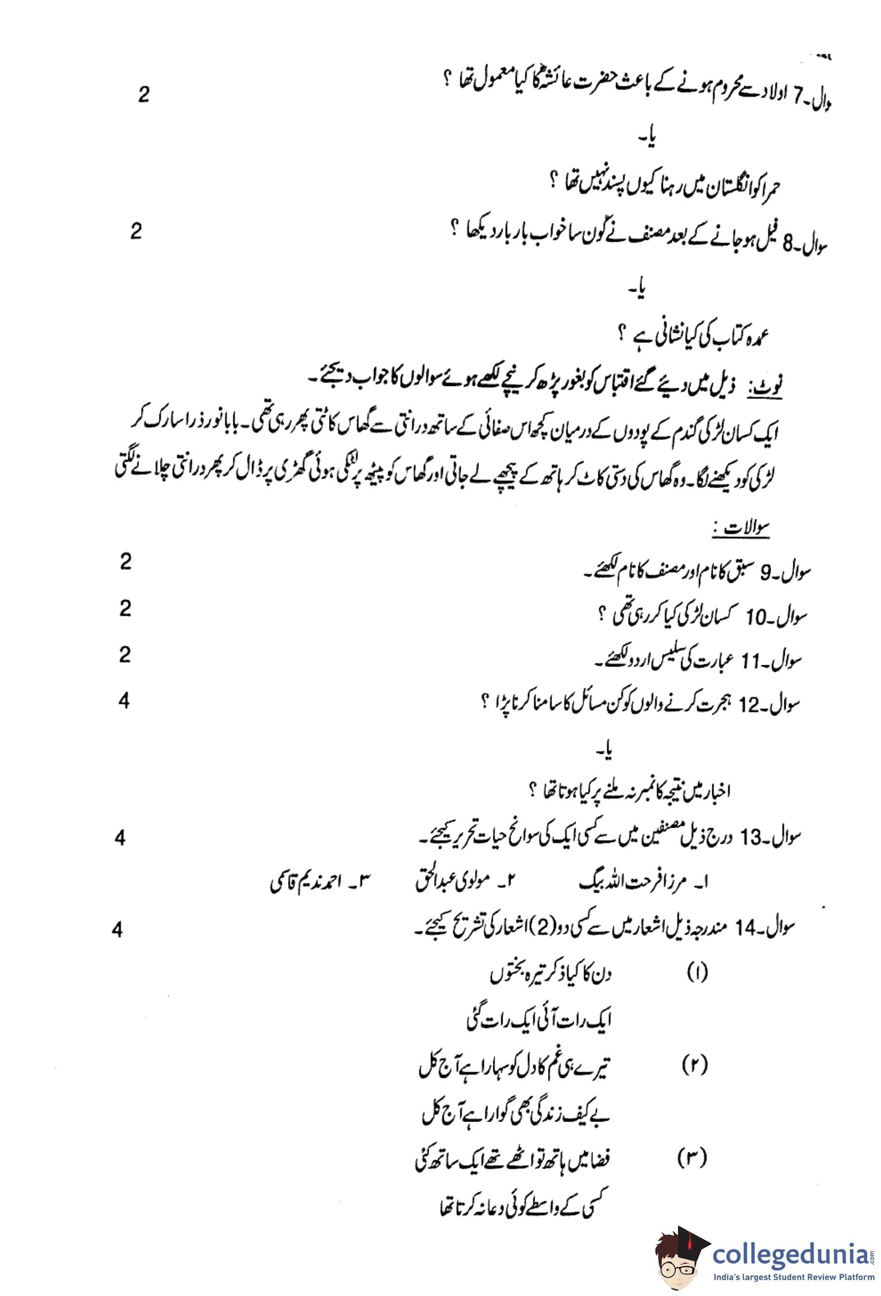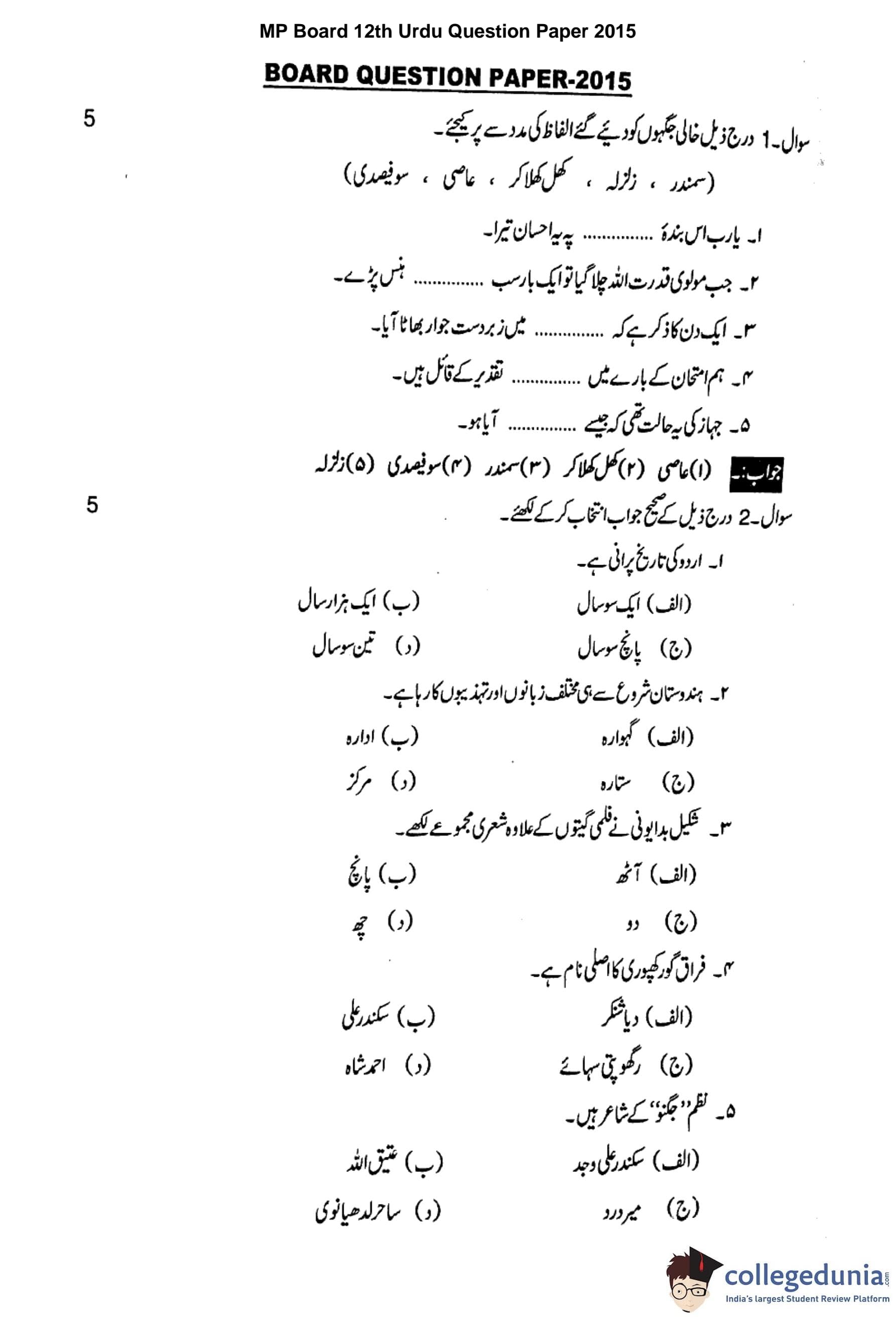 MP Board 12th Urdu Question Paper 2015 with Answer Key