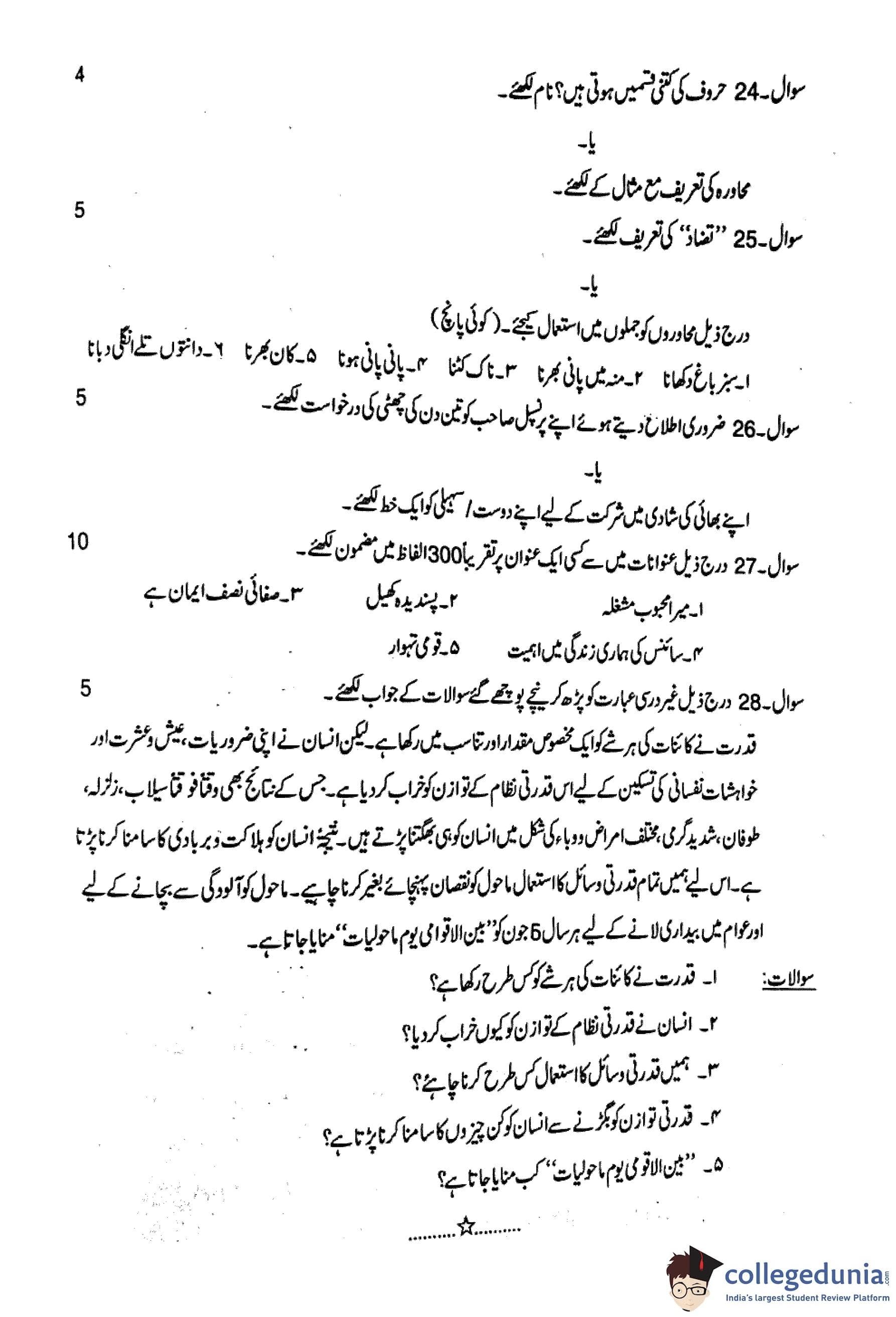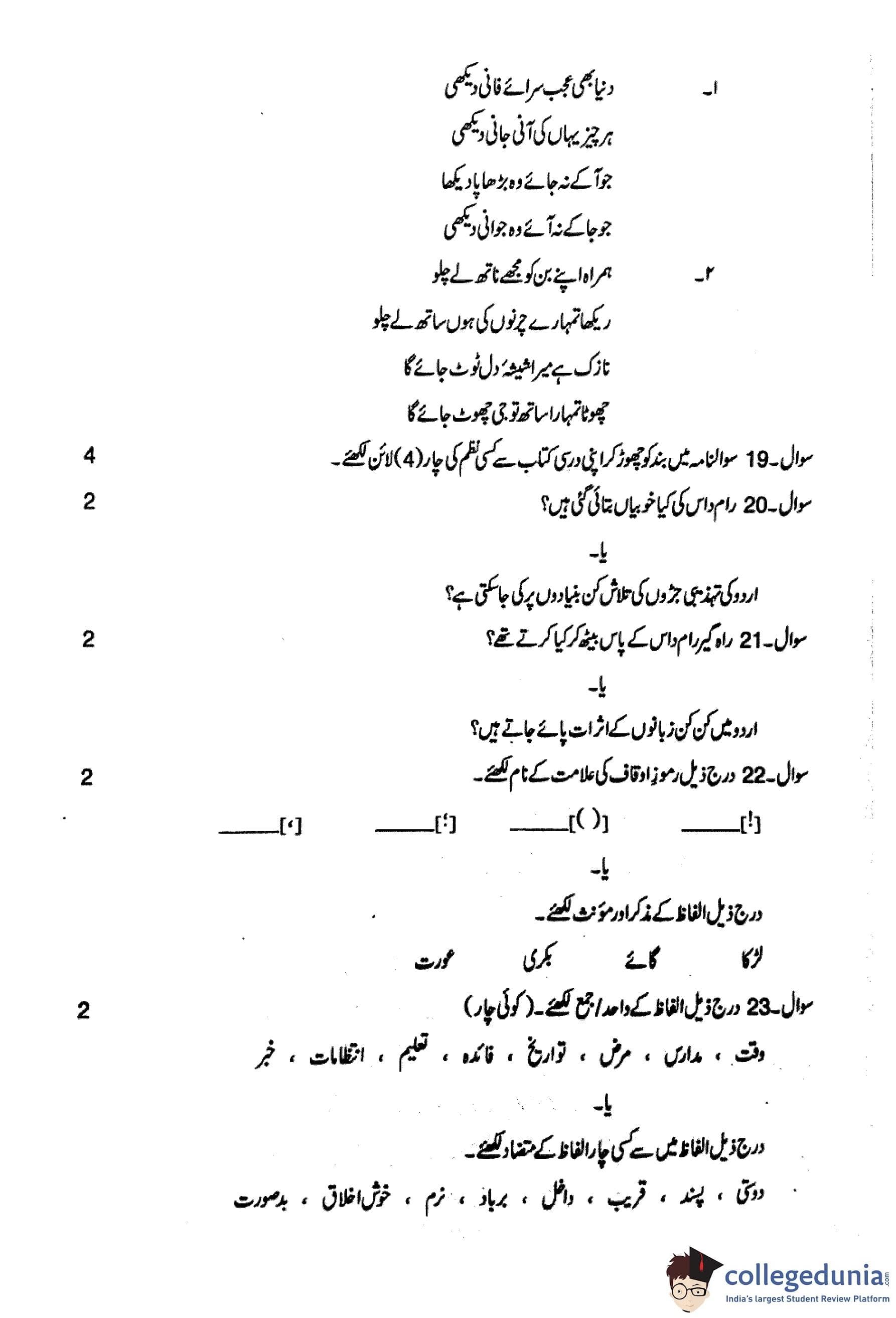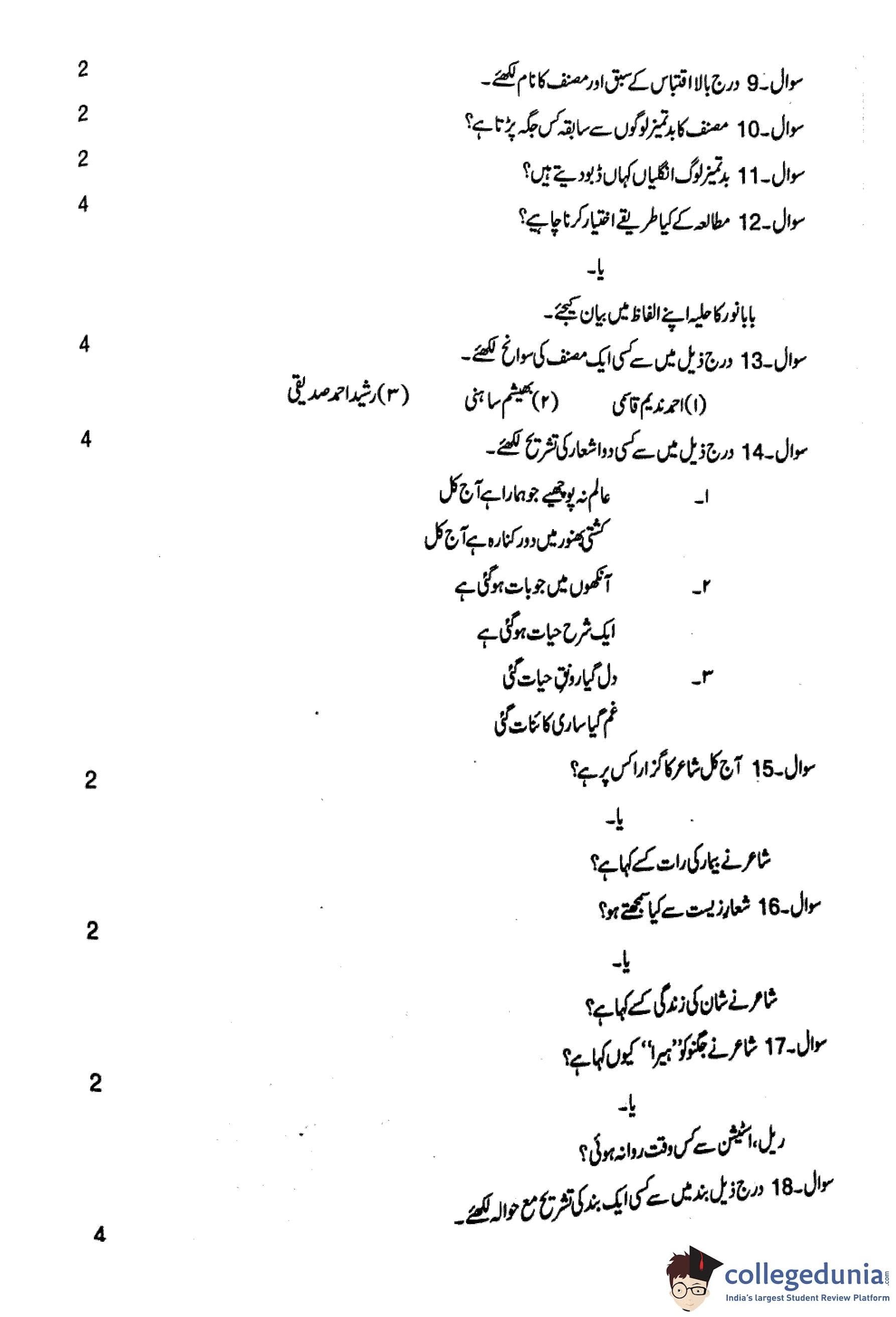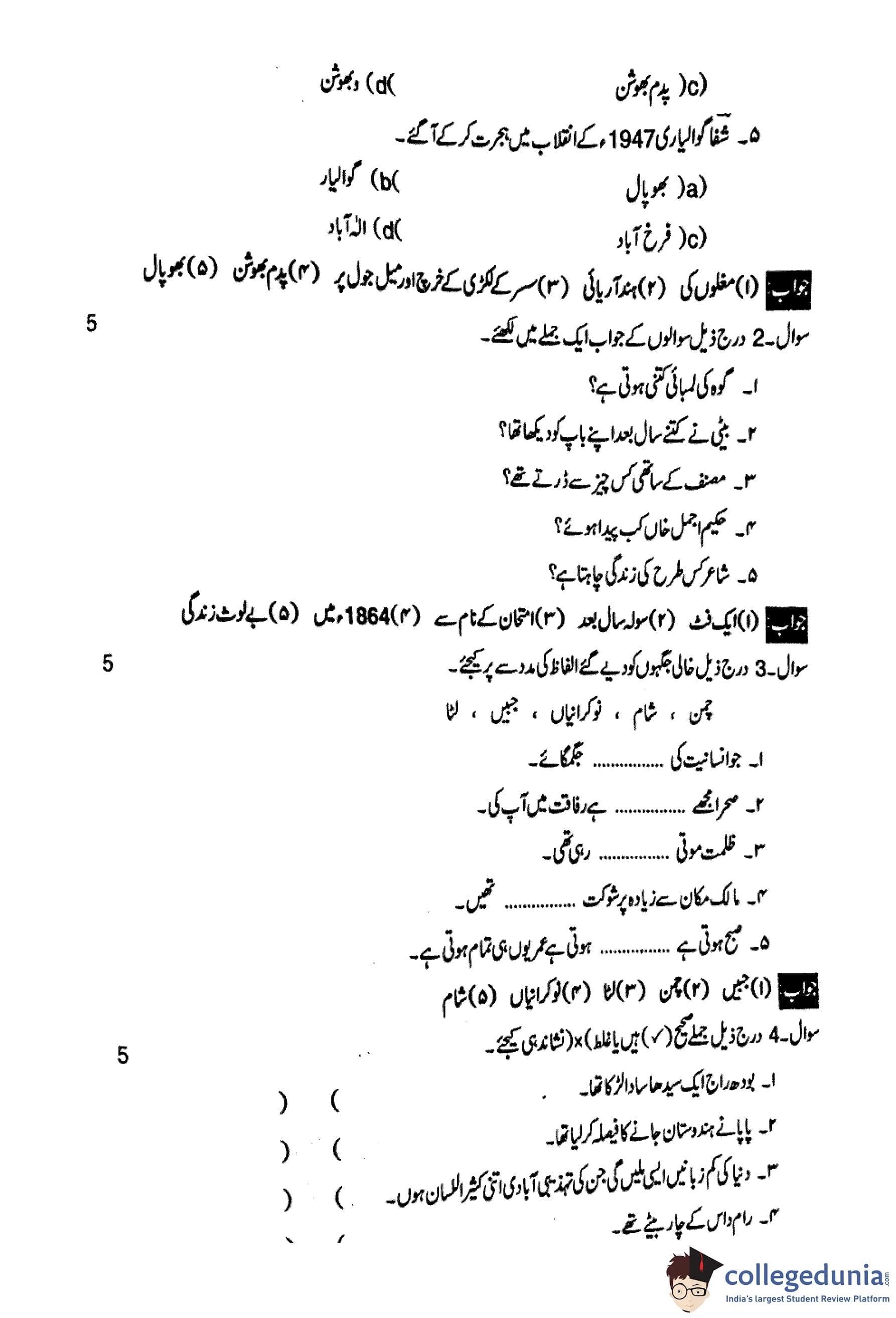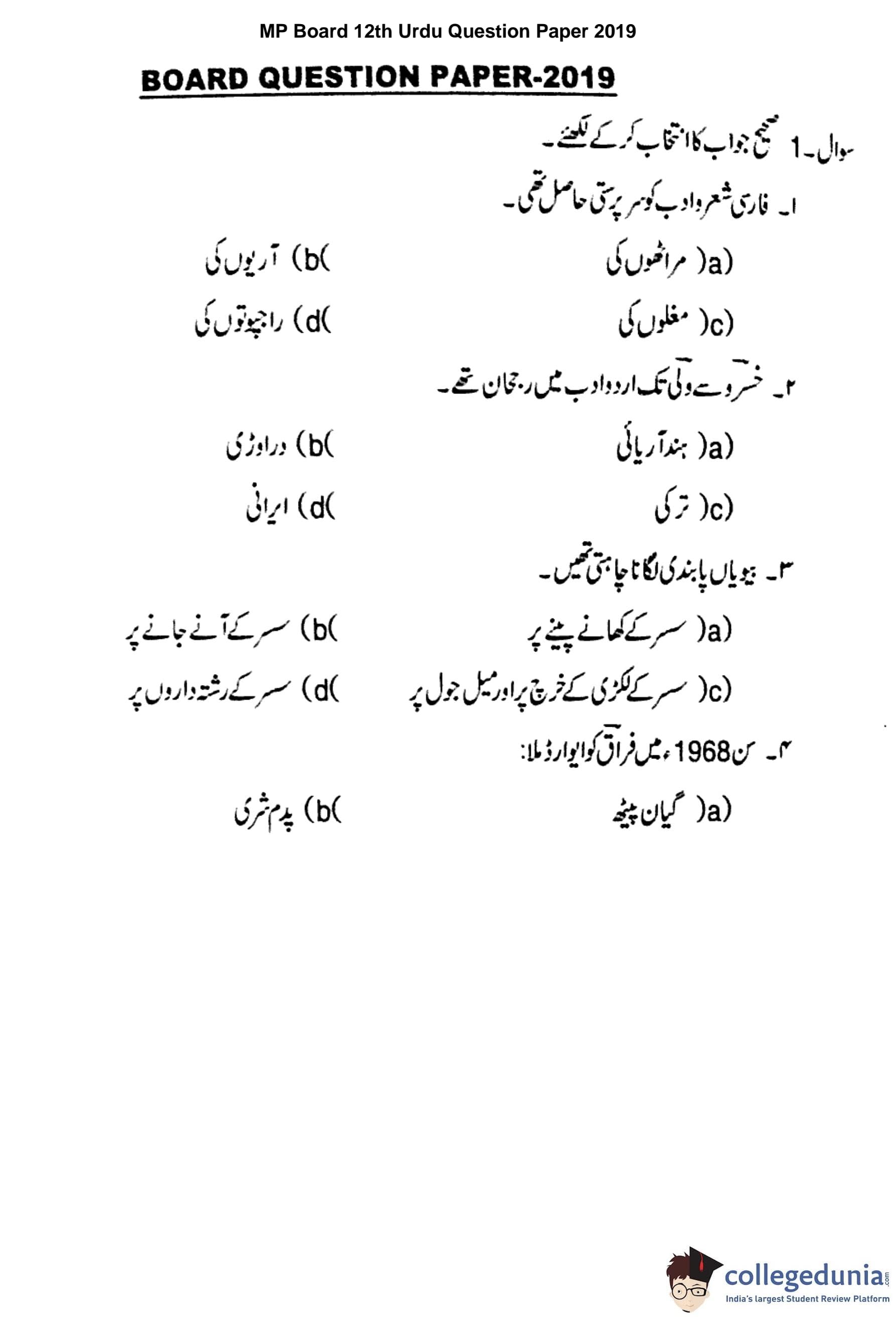 MP Board 12th Urdu Question Paper 2019 with Answer Key