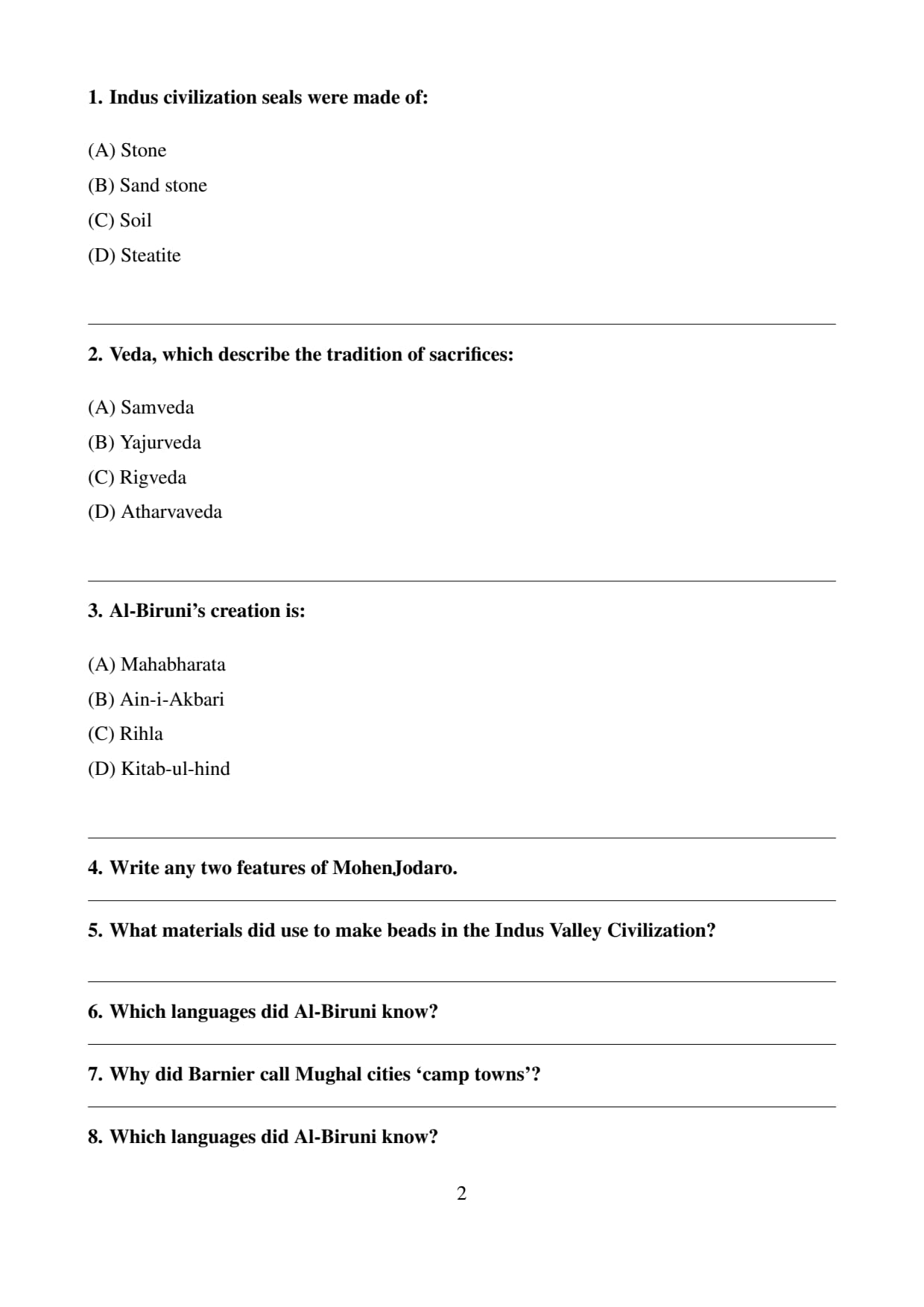 - (D) Kitab-ul-hind: This is the correct answer as it is Al-Biruni's creation, focusing on India’s culture and traditions.