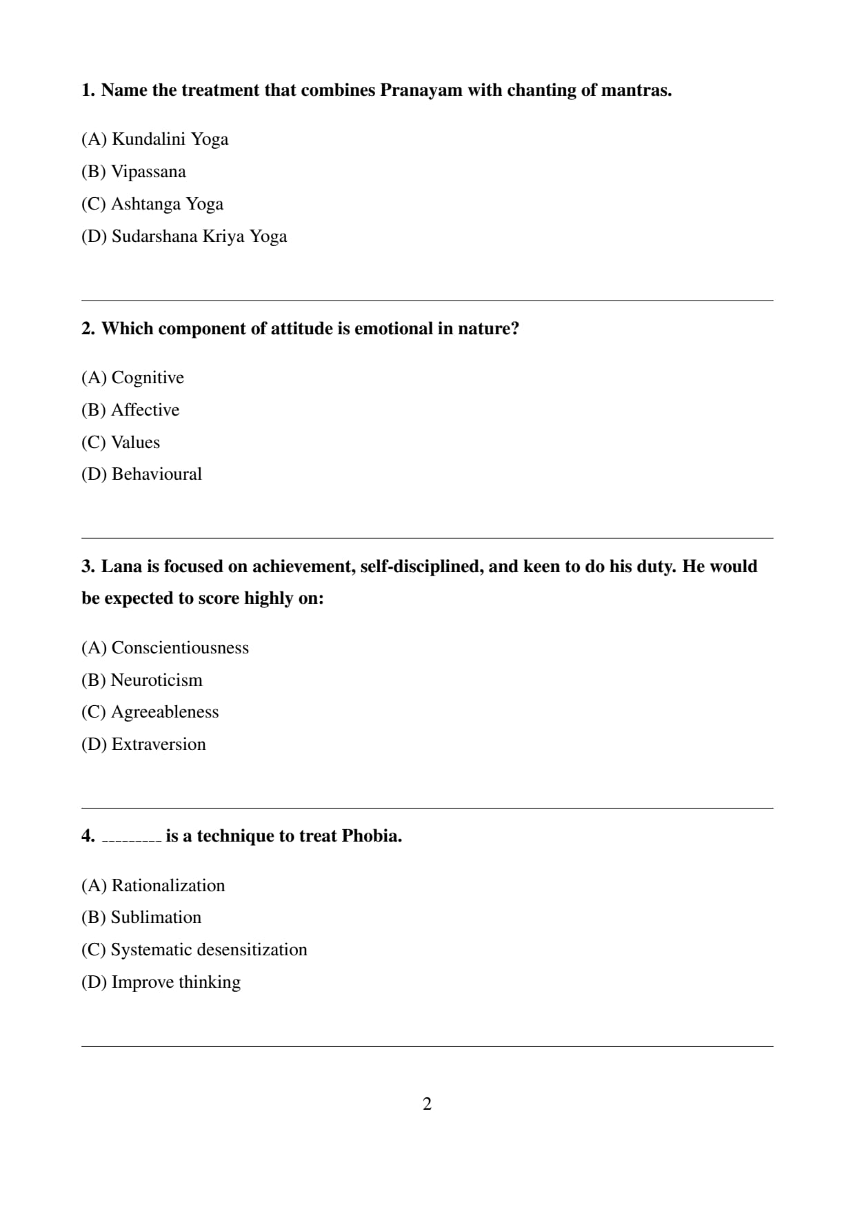 Final Answer: \[ \boxed{(D) \, Sudarshana Kriya Yoga} \] Quick Tip: Sudarshana Kriya Yoga is beneficial for reducing stress and improving emotional well-being through controlled breathing and the chanting of mantras.