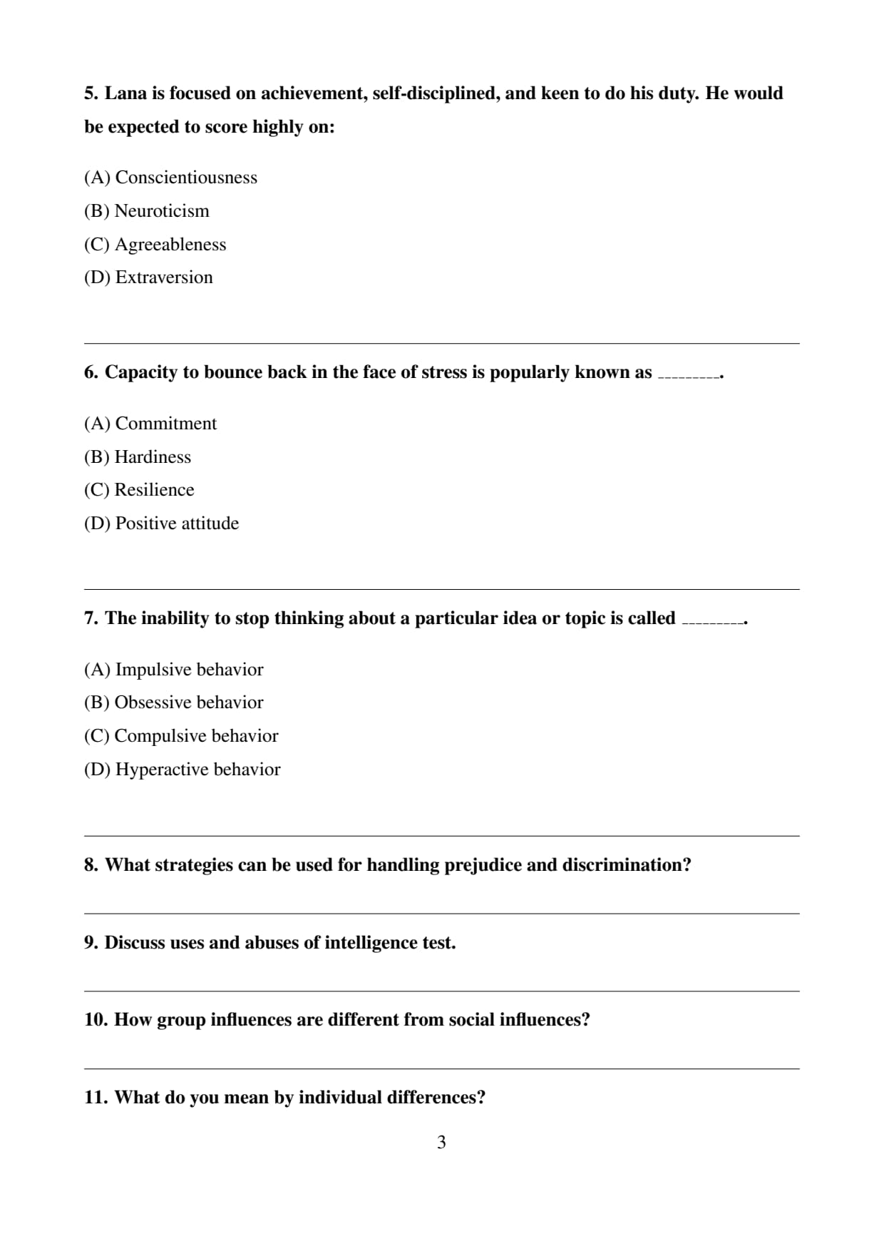The official question paper of MP Board Class 12 Psychology Board Exam 2026 is provided below. Students can download the official paper in PDF format for reference.