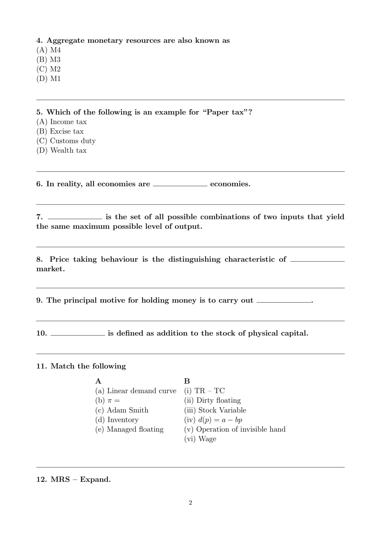 Therefore, the correct answer is Income tax. Quick Tip: \textbf{Paper Tax:} A tax assessed through written records, documents, or tax returns. \textbf{Examples:} Income Tax Corporate Tax Indirect taxes like excise duty and customs duty are collected through transactions rather than paperwork.