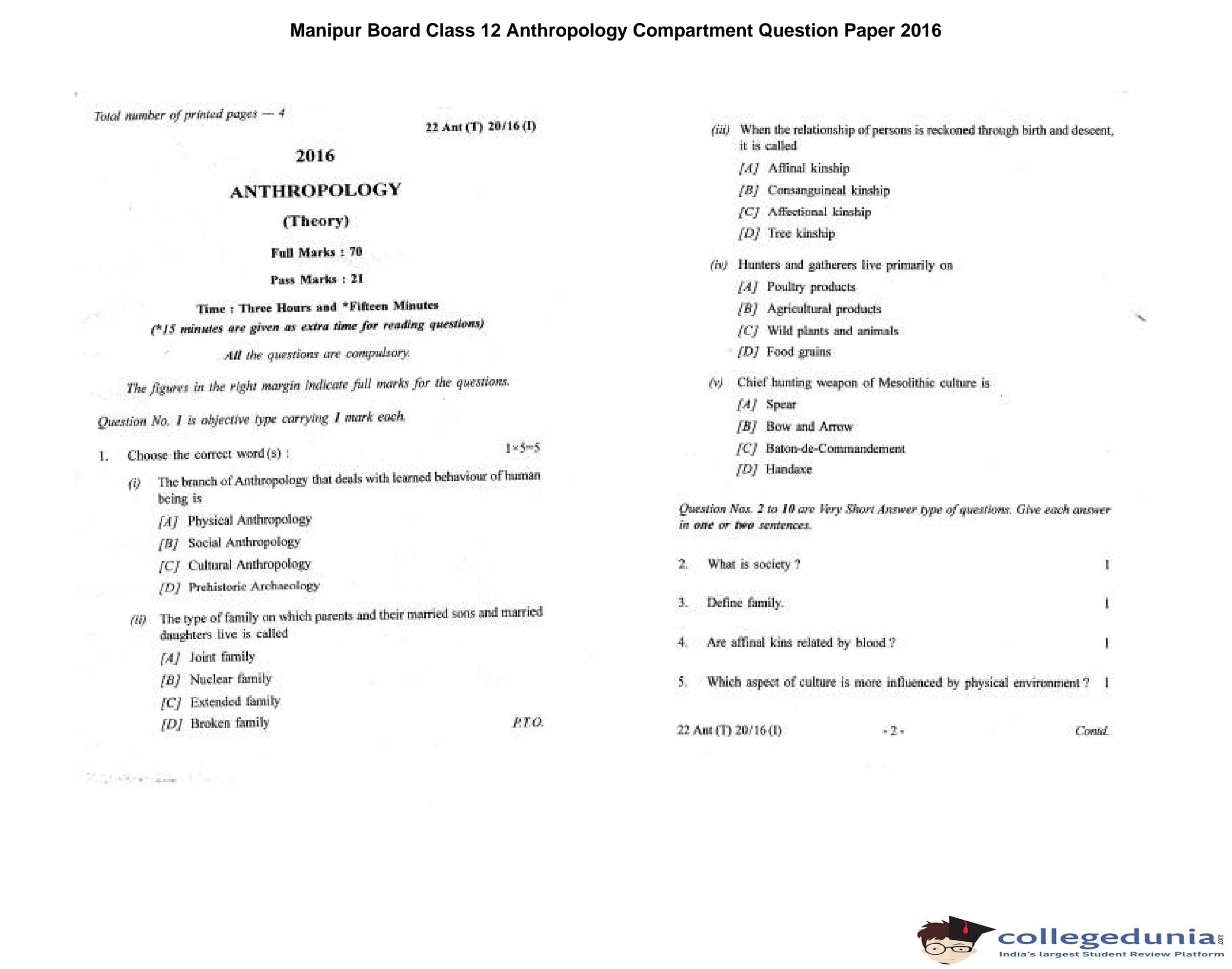 | Manipur Board Class 12 Anthropology Question Paper 2016 PDF | Manipur Board Class 12 Anthropology Answer Key 2016 PDF |