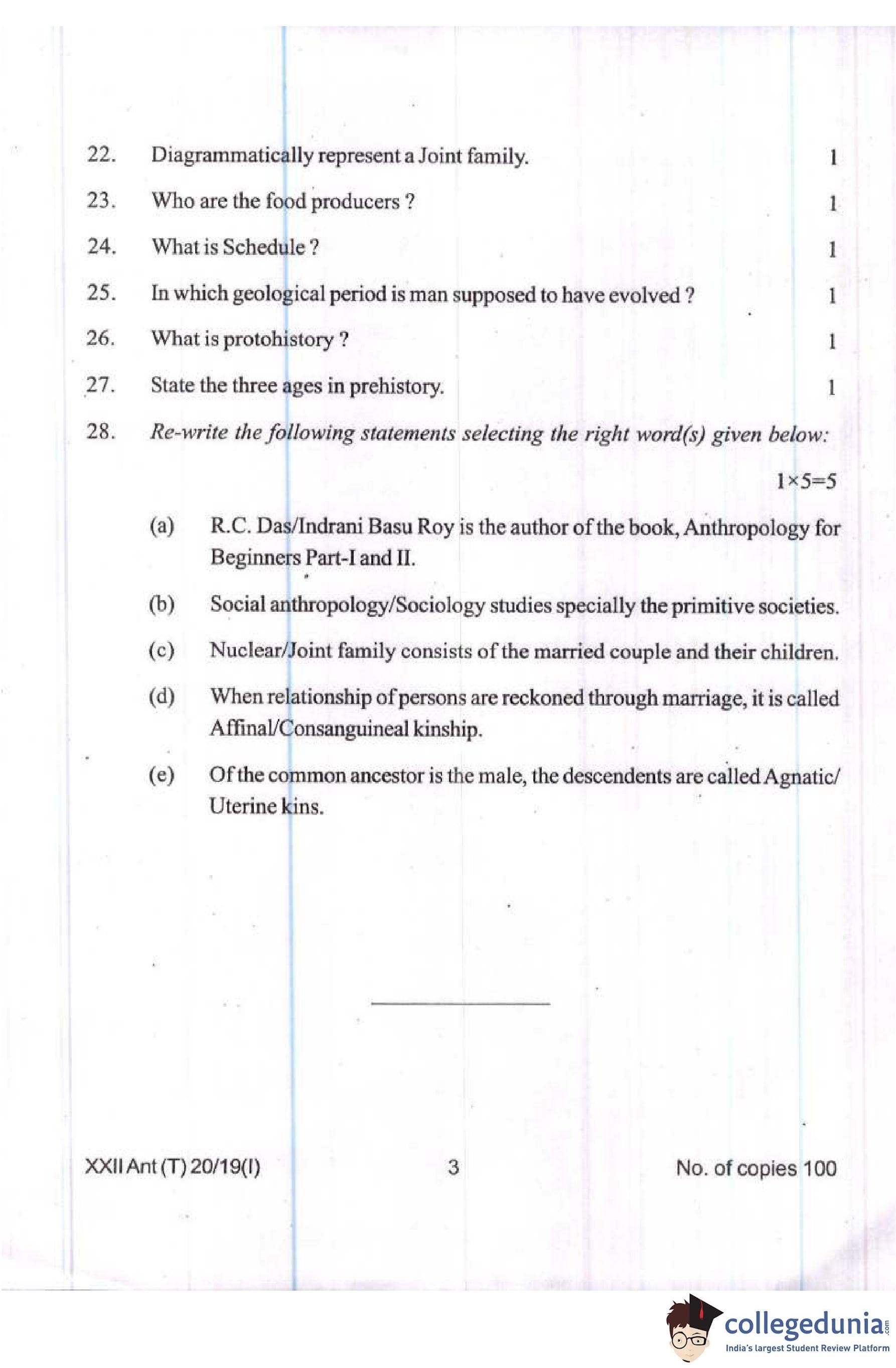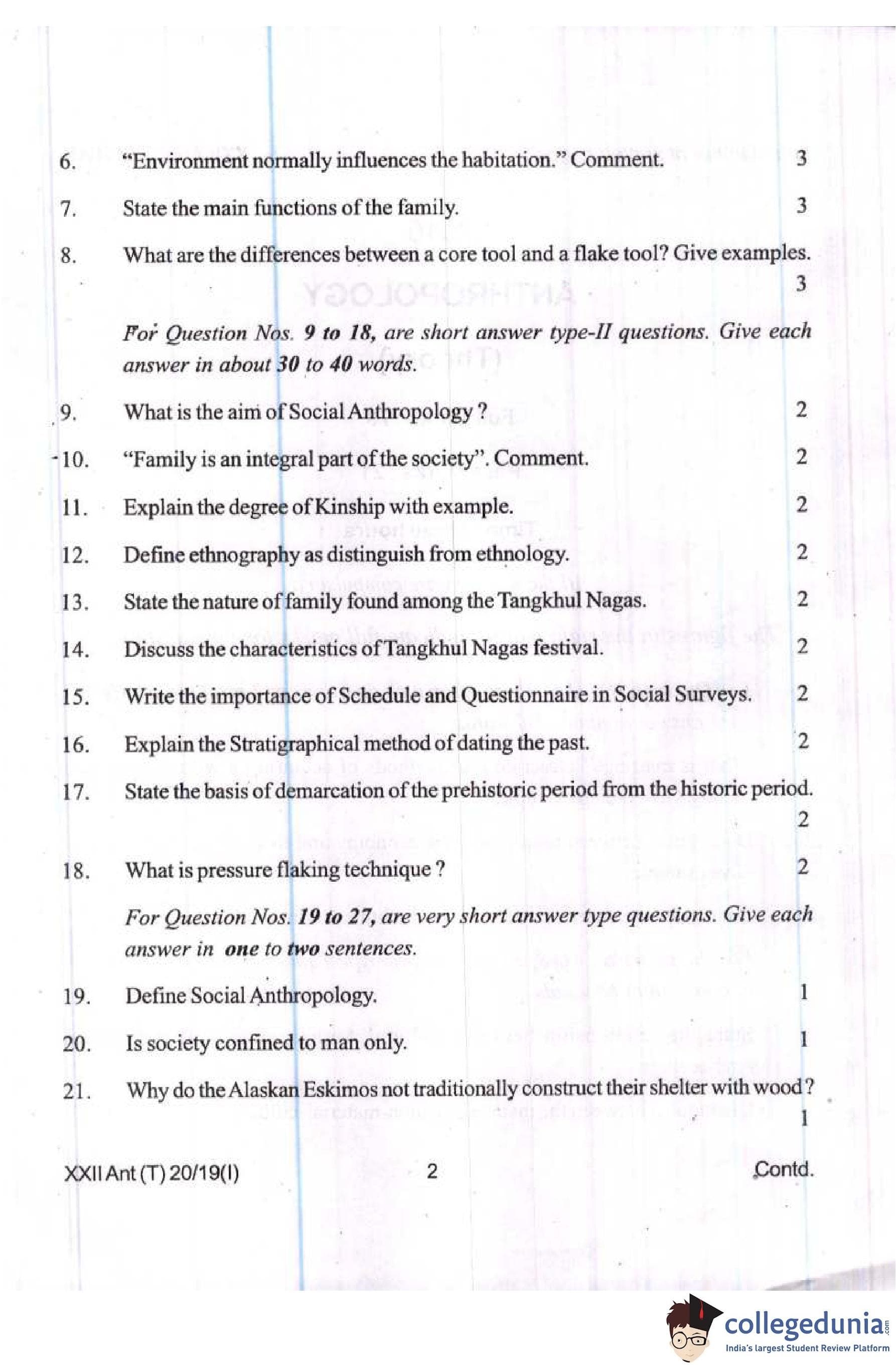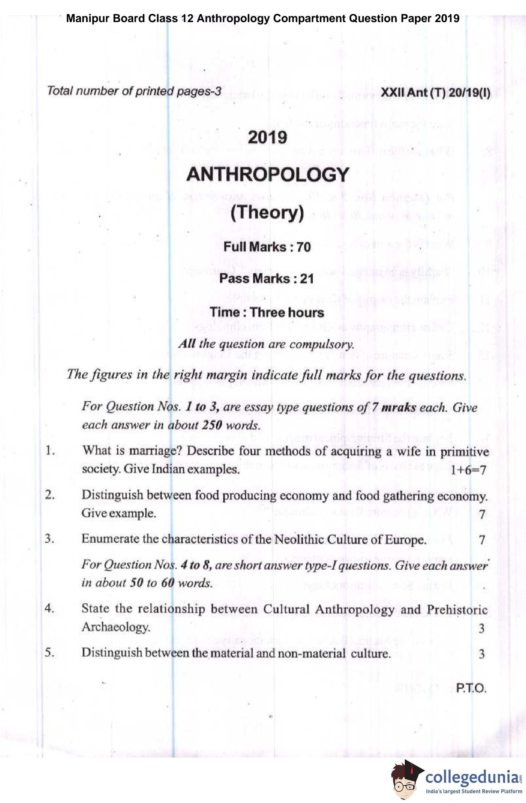 Manipur Board Class 12 Anthropology Compartment Question Paper 2019