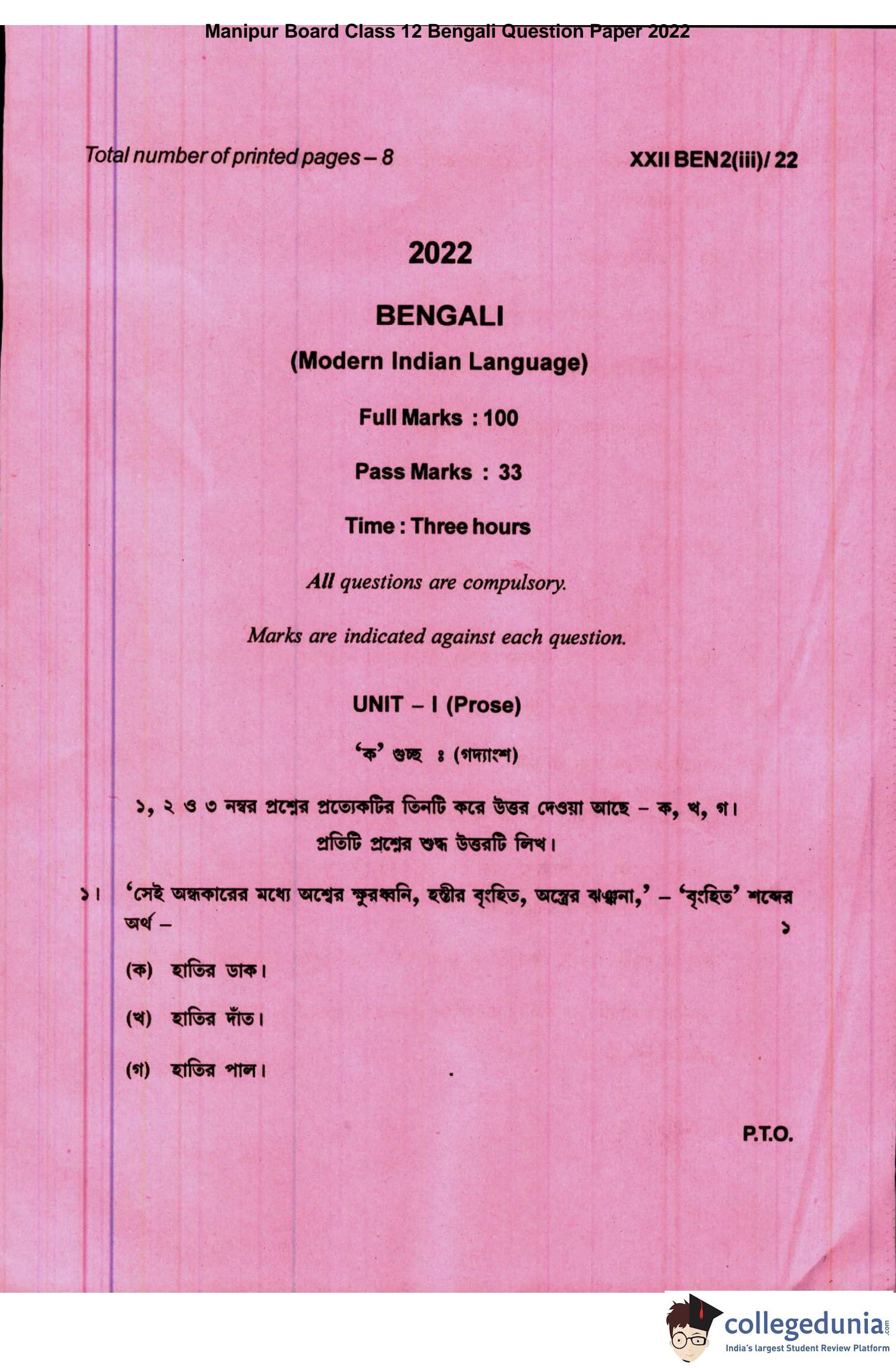 | Manipur Board Class 12 Bengali Question Paper 2022 PDF | Manipur Board Class 12 Bengali Answer Key 2022 PDF |