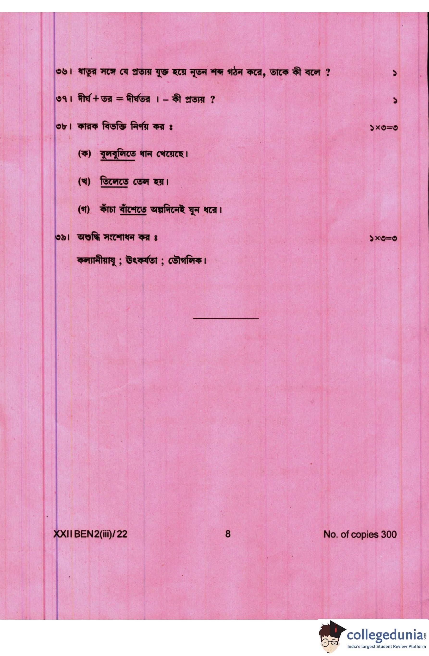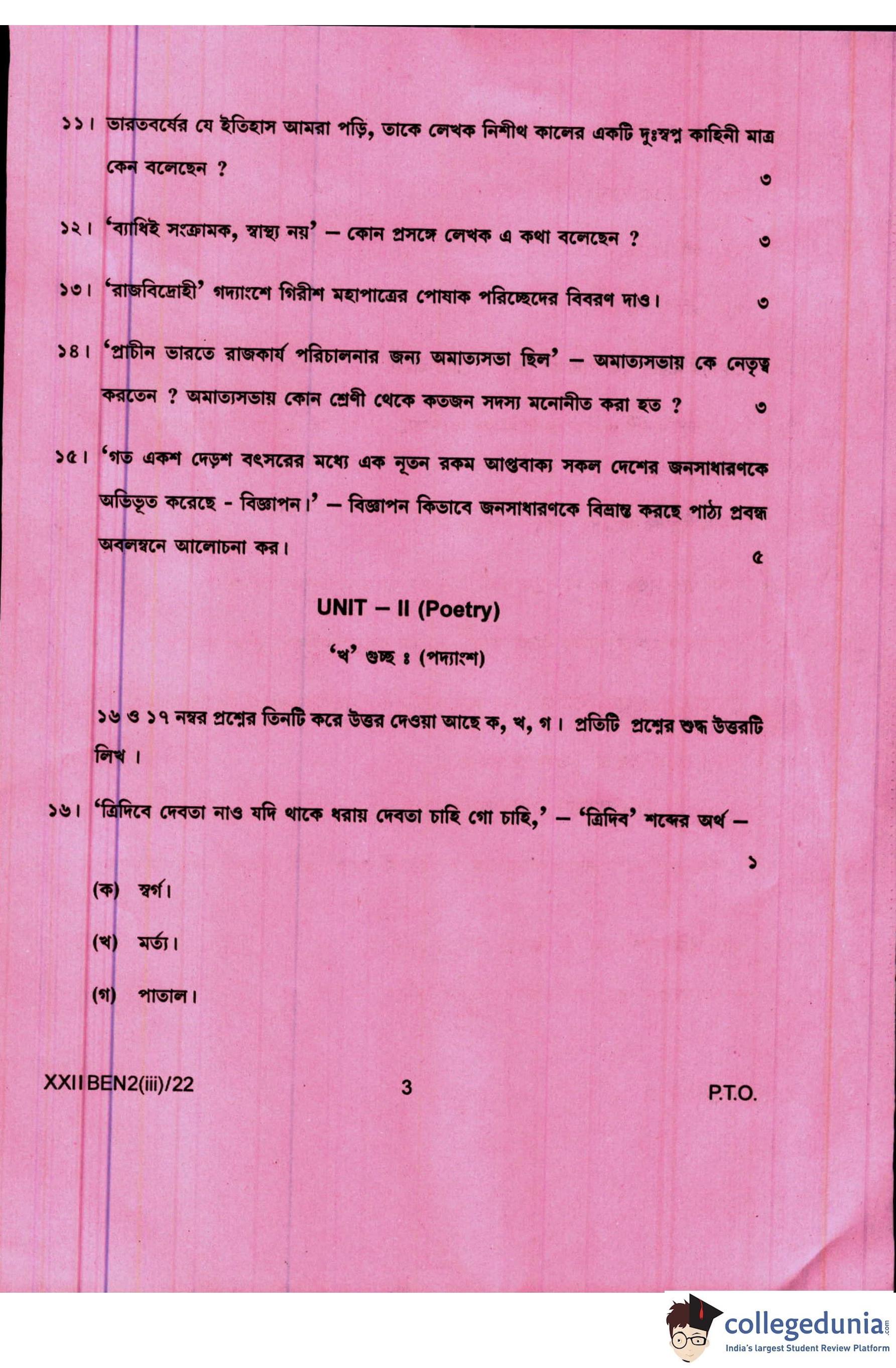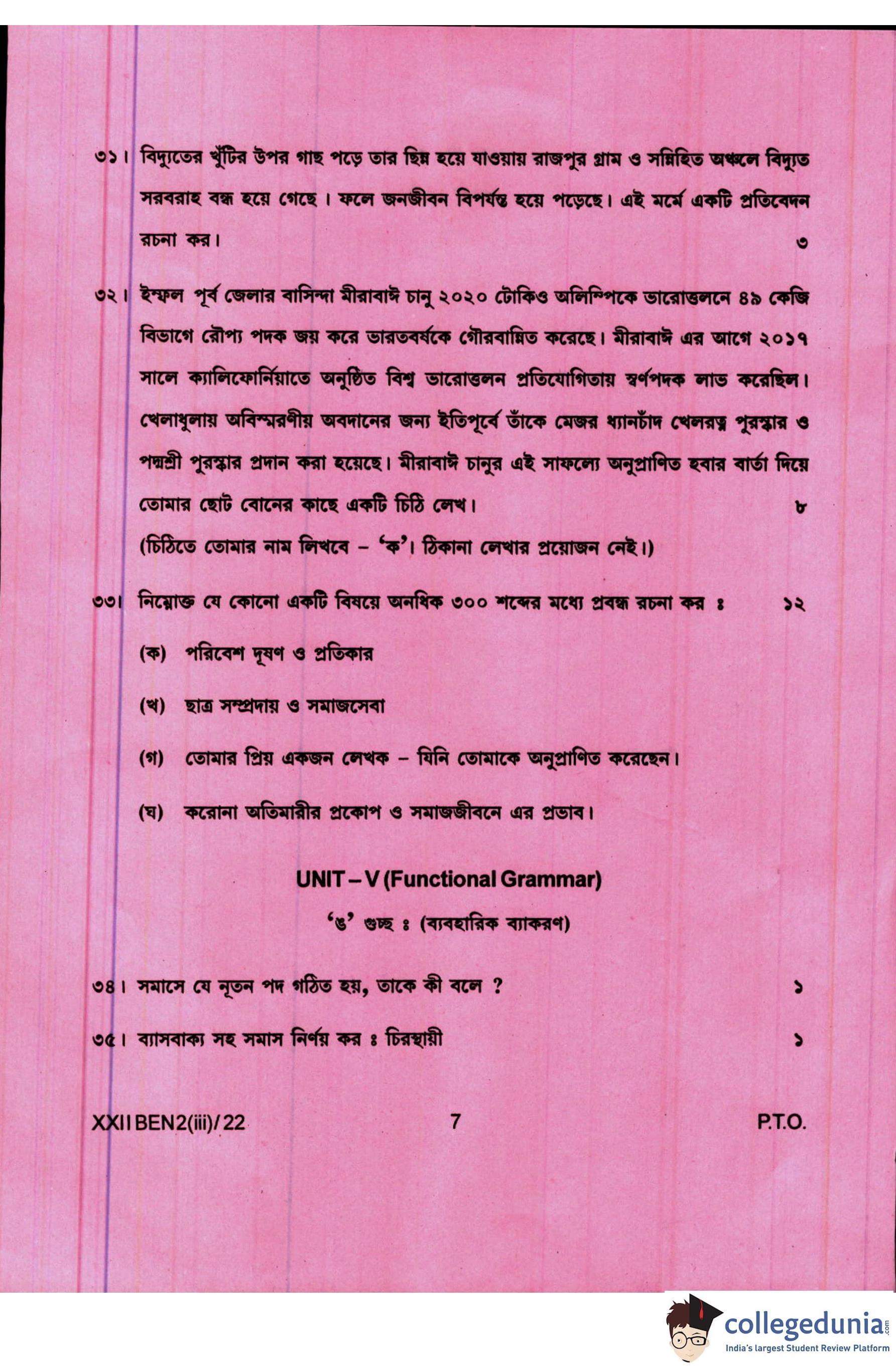 Manipur Board Class 12 Bengali Question Paper 2022 with Answer Key pdf is available for download here. The exam was conducted by Council Of Higher Secondary Education, Manipur on April 9, 2022. The question paper comprised a total of 39 questions divided among 4 sections.