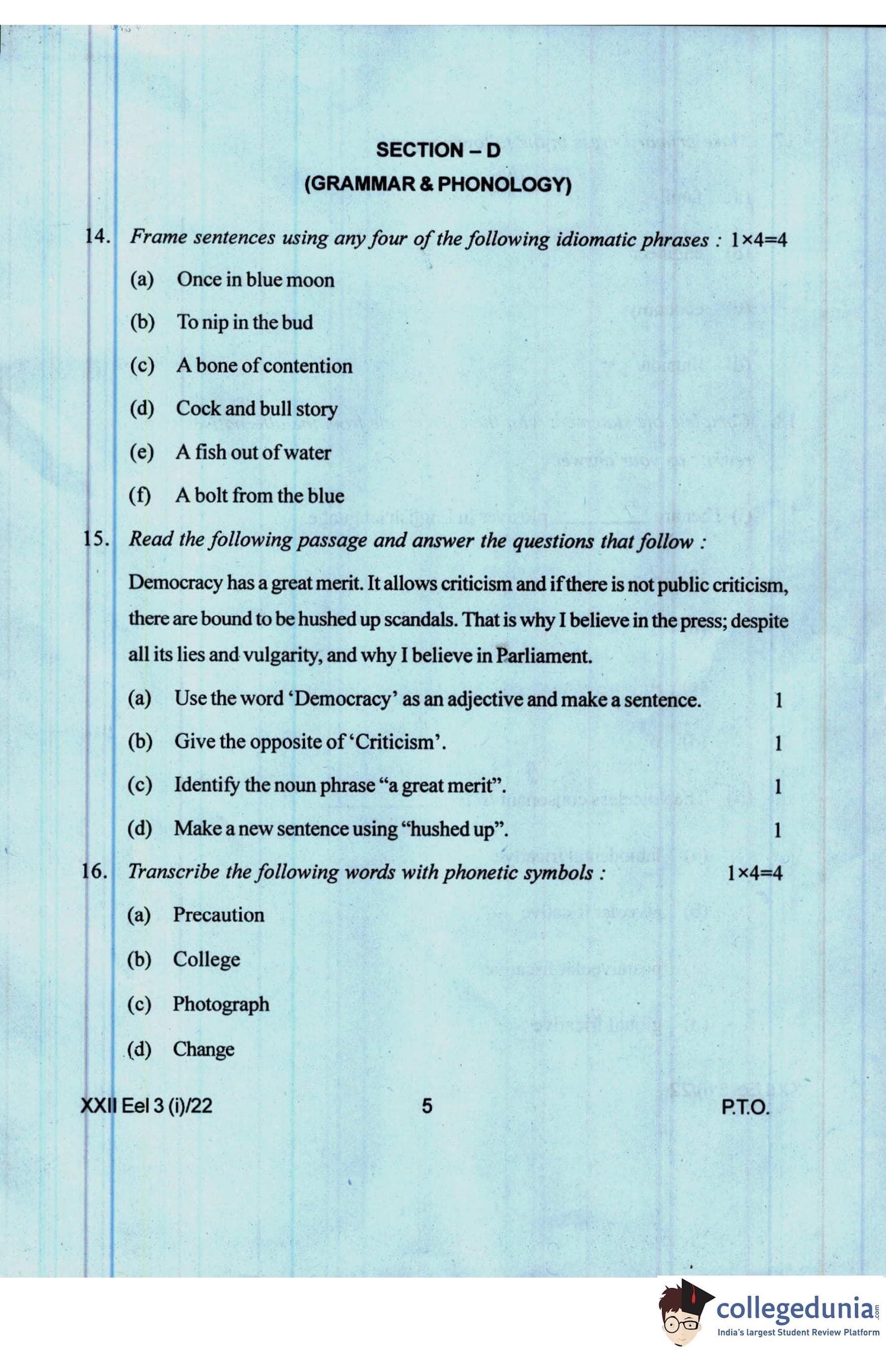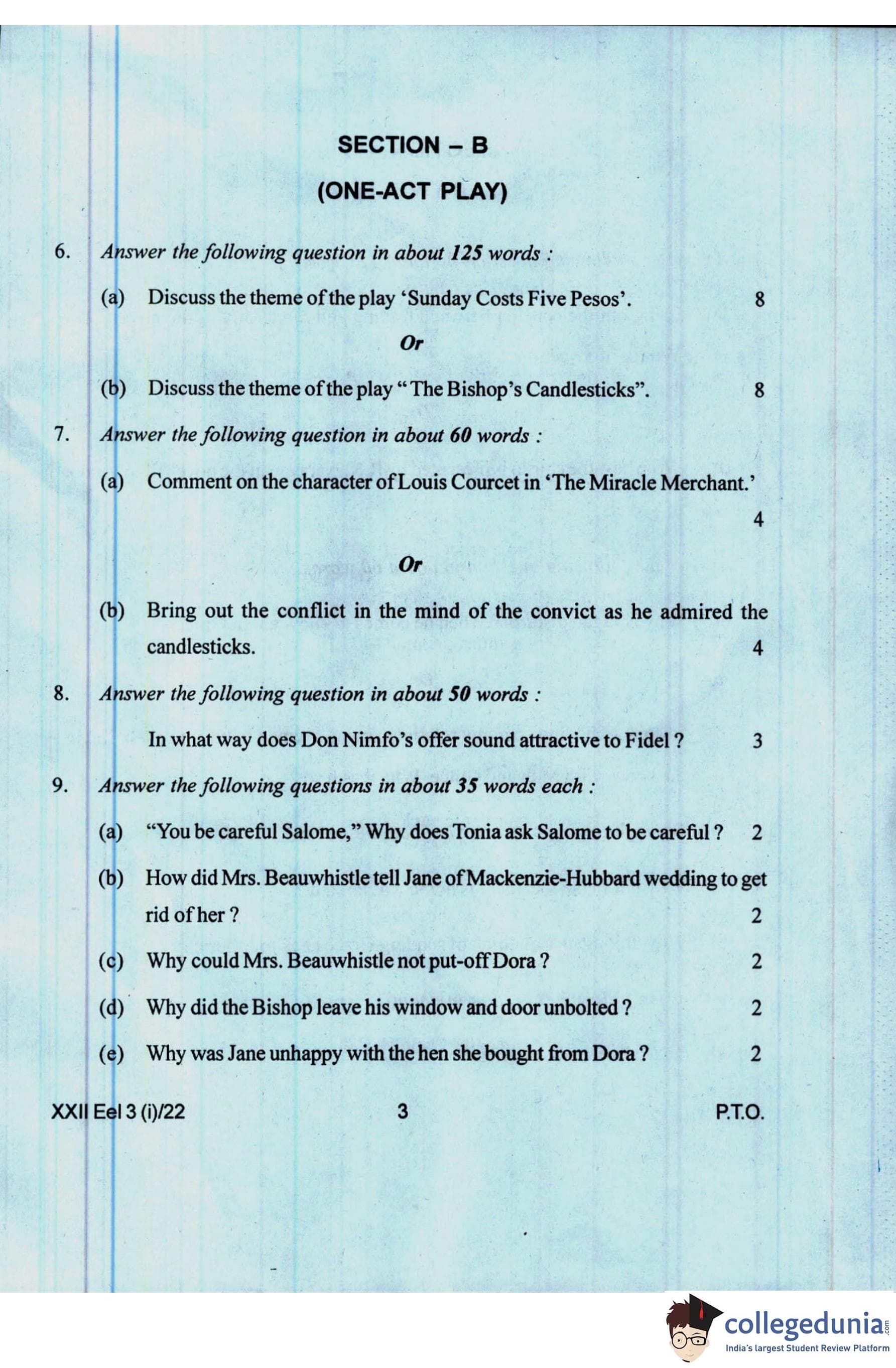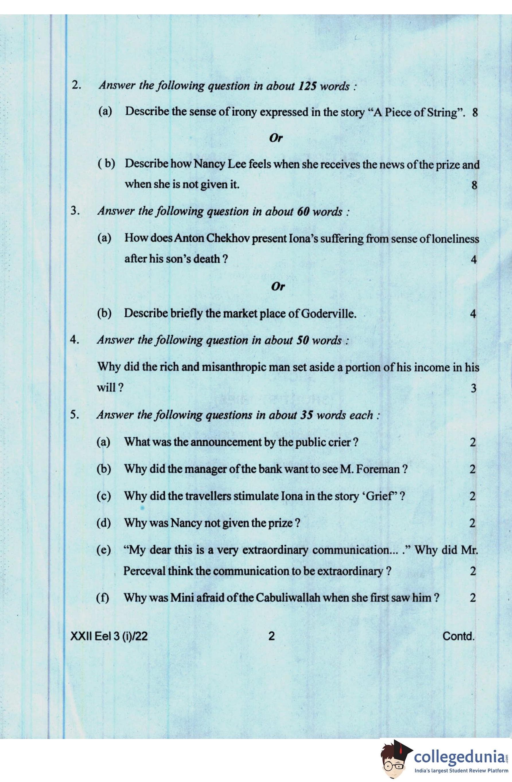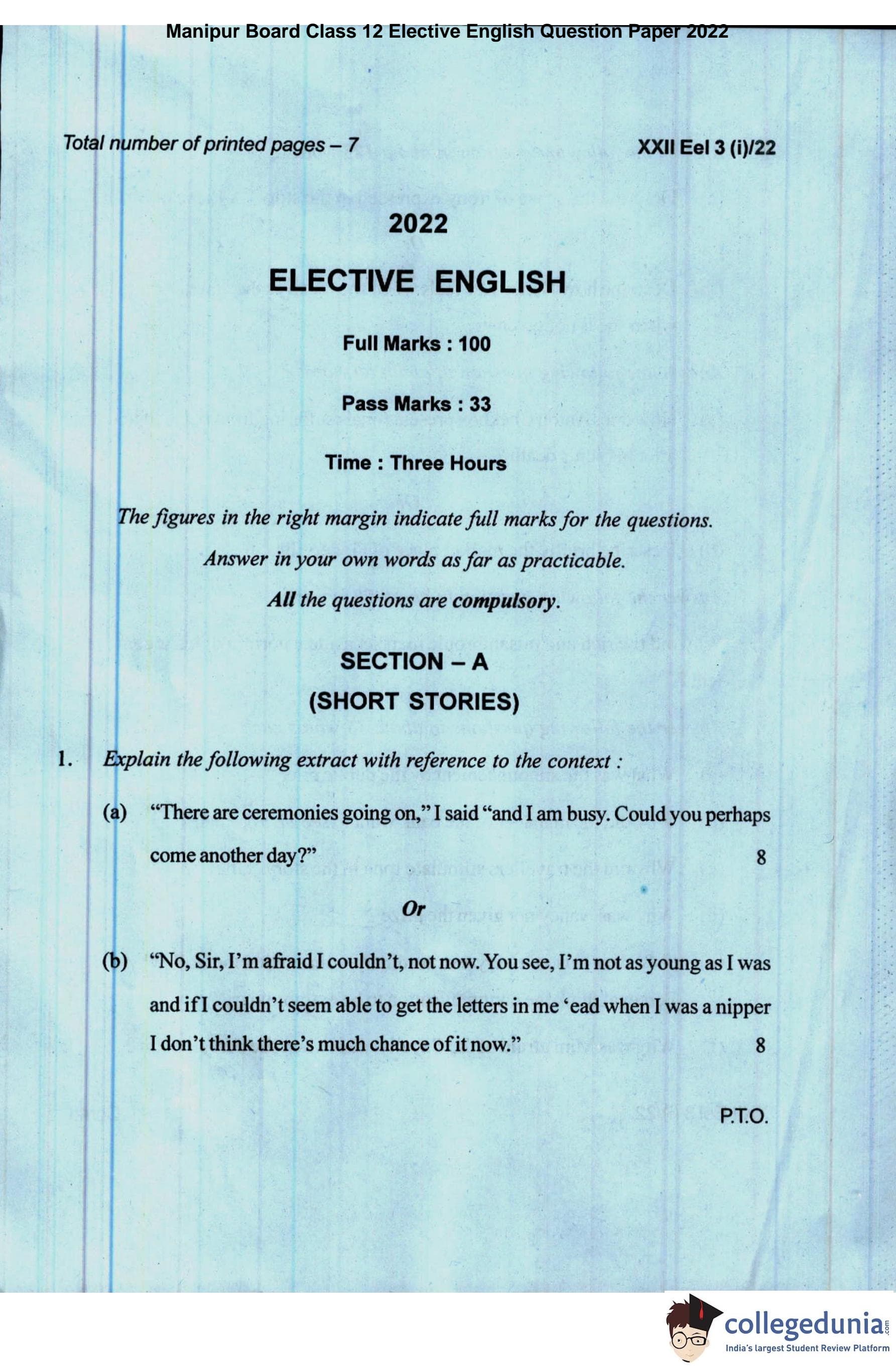 Manipur Board Class 12 Elective English Question Paper 2022