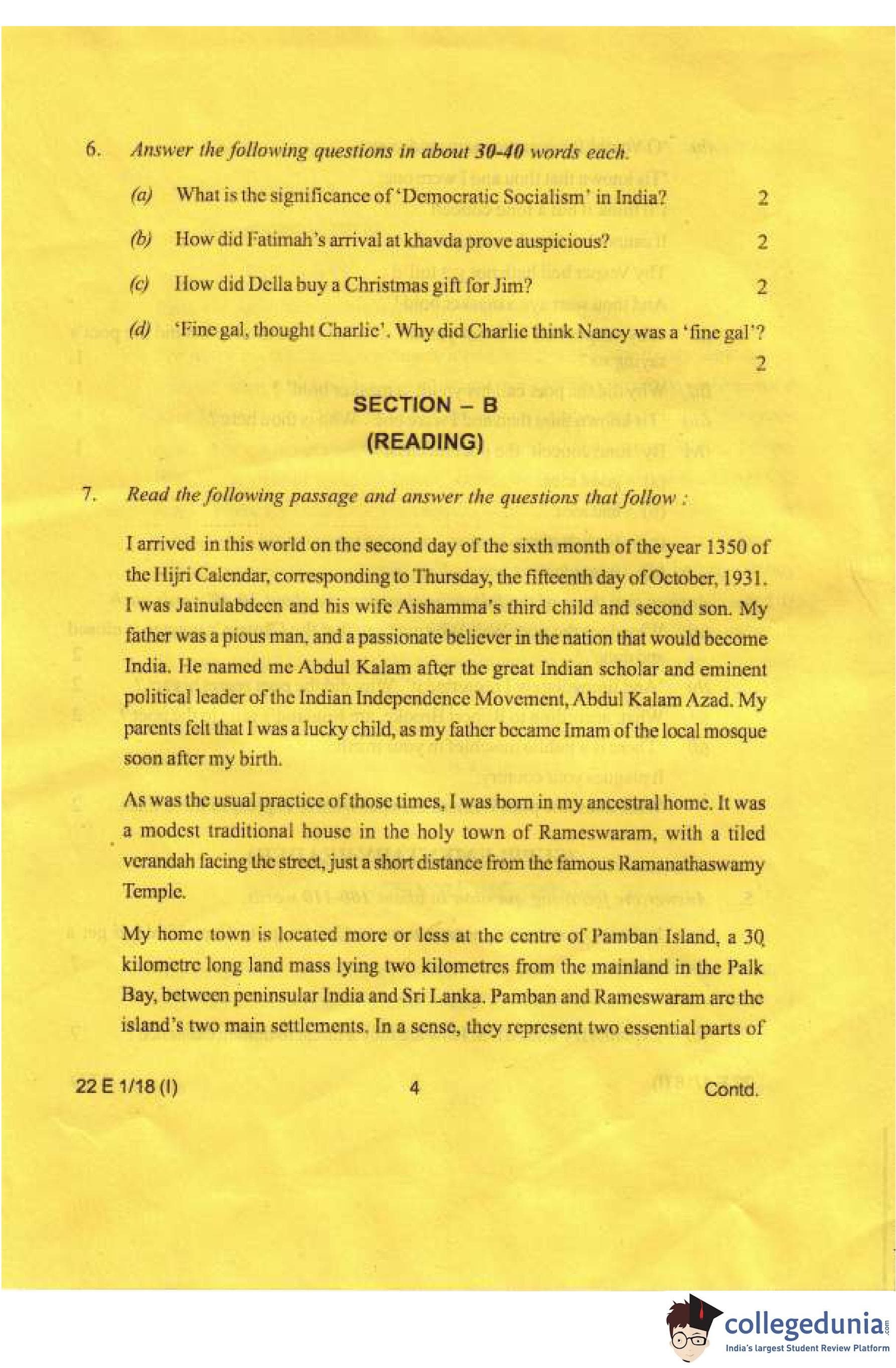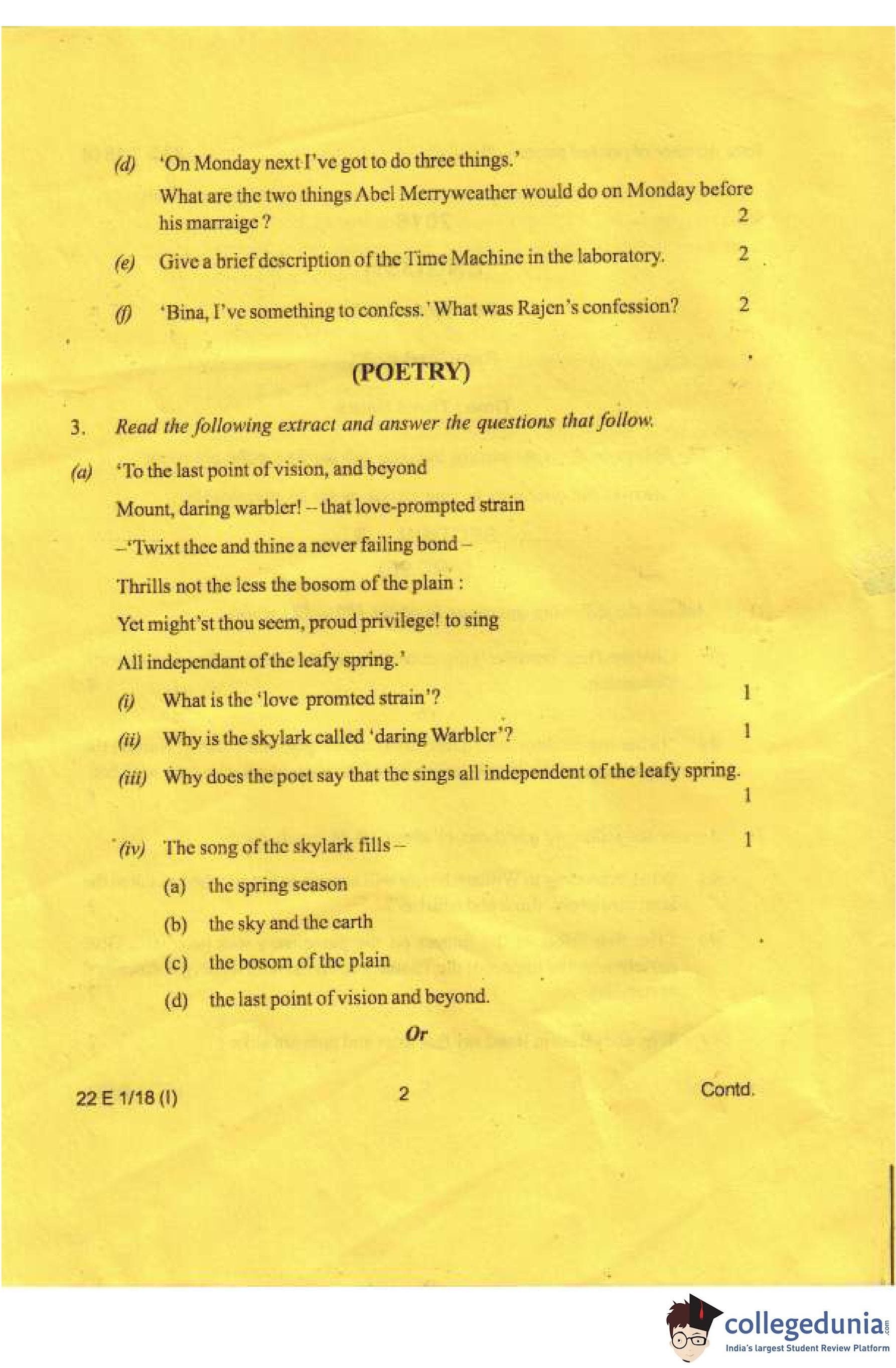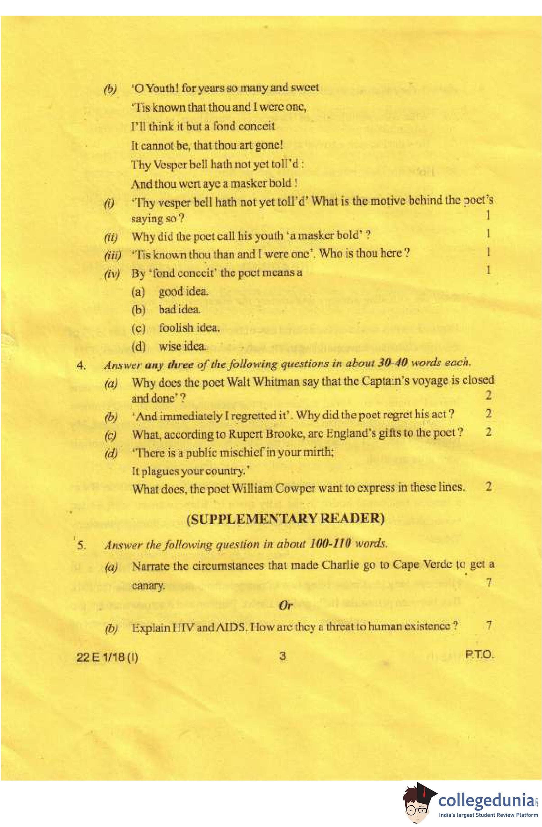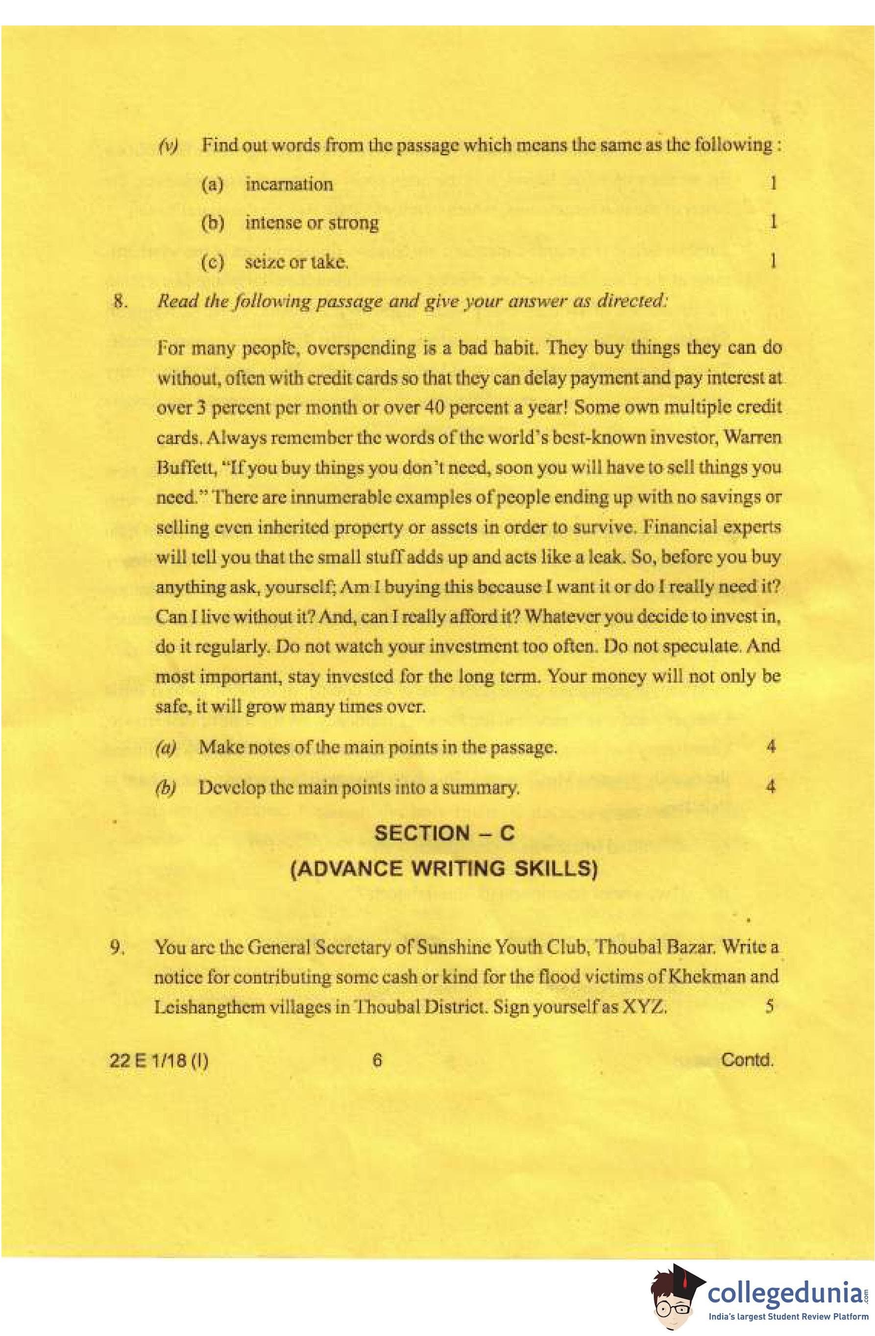 Manipur Board Class 12 English Compartment Question Paper 2018