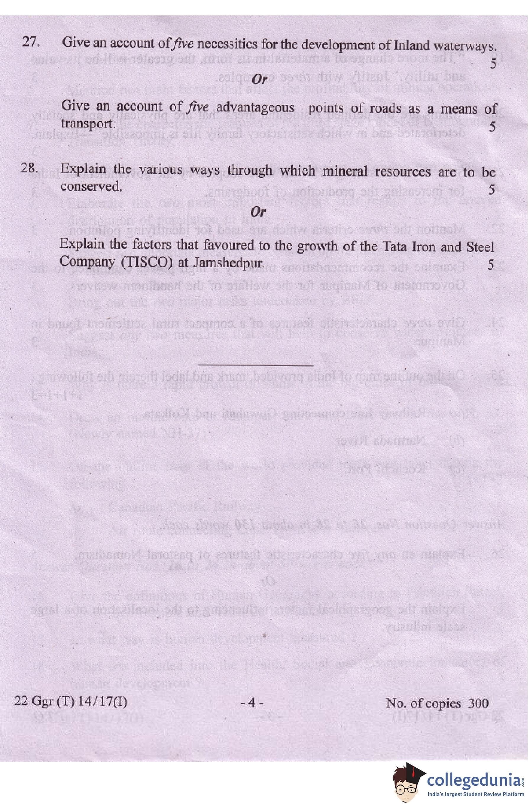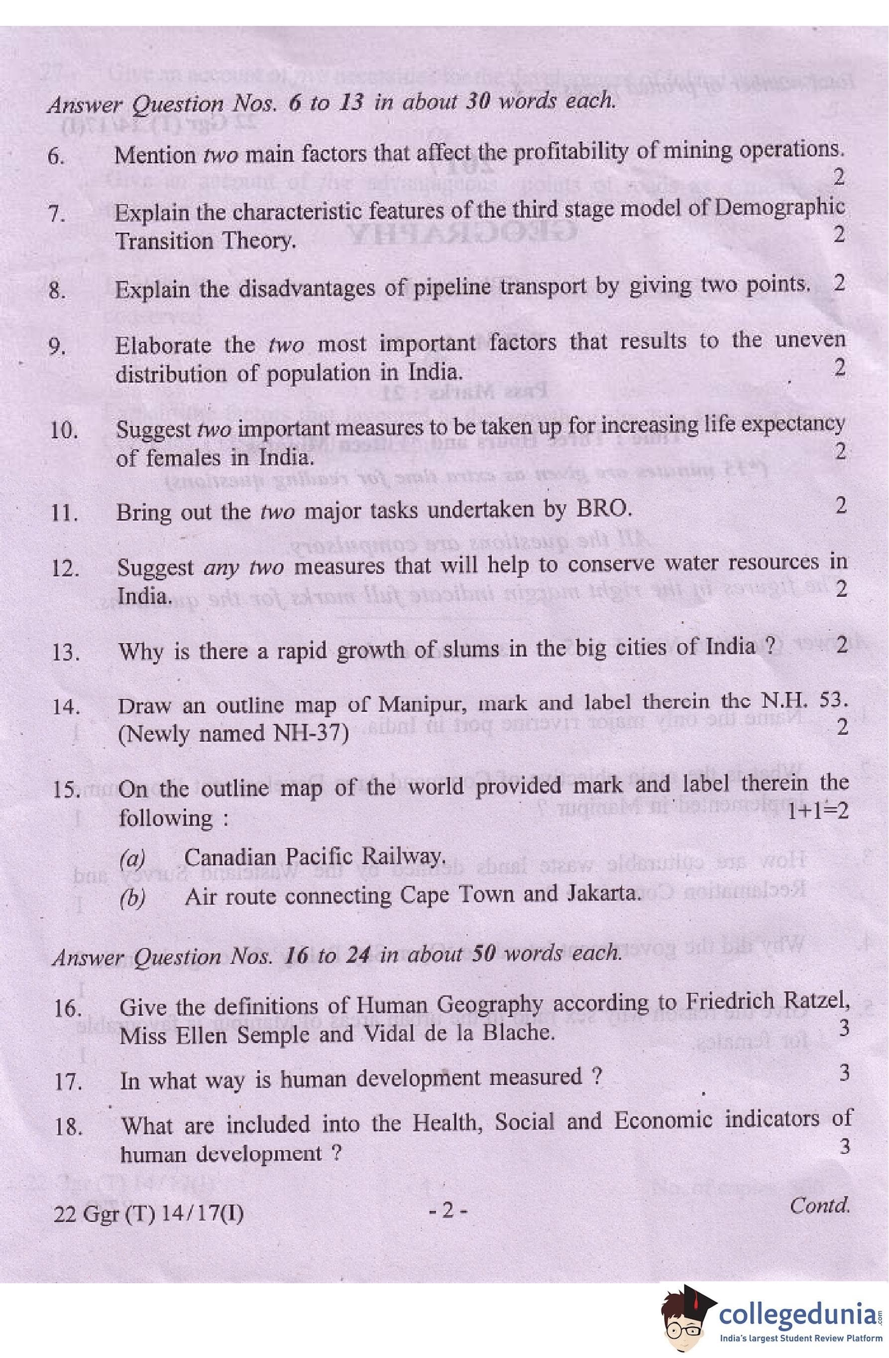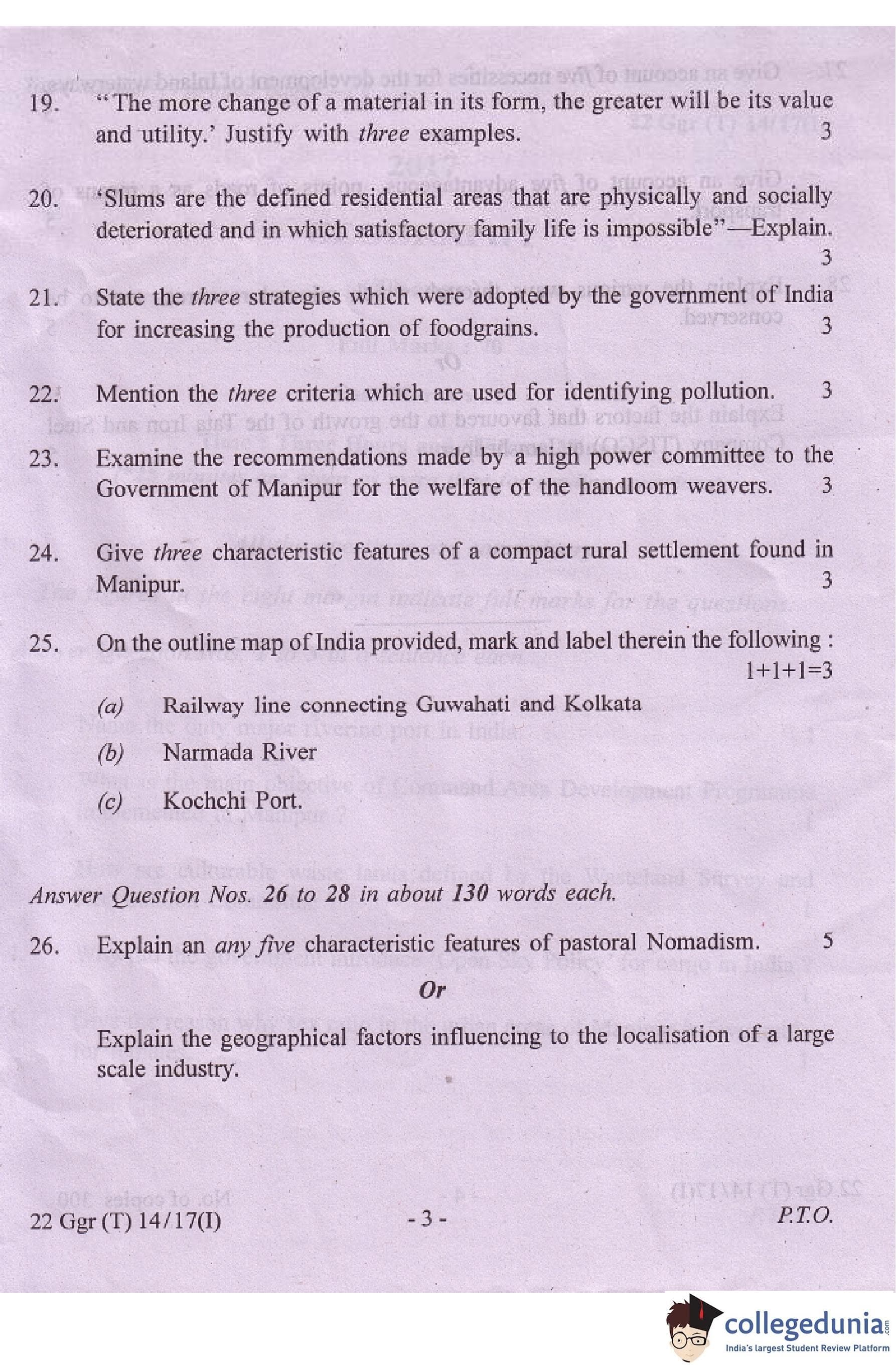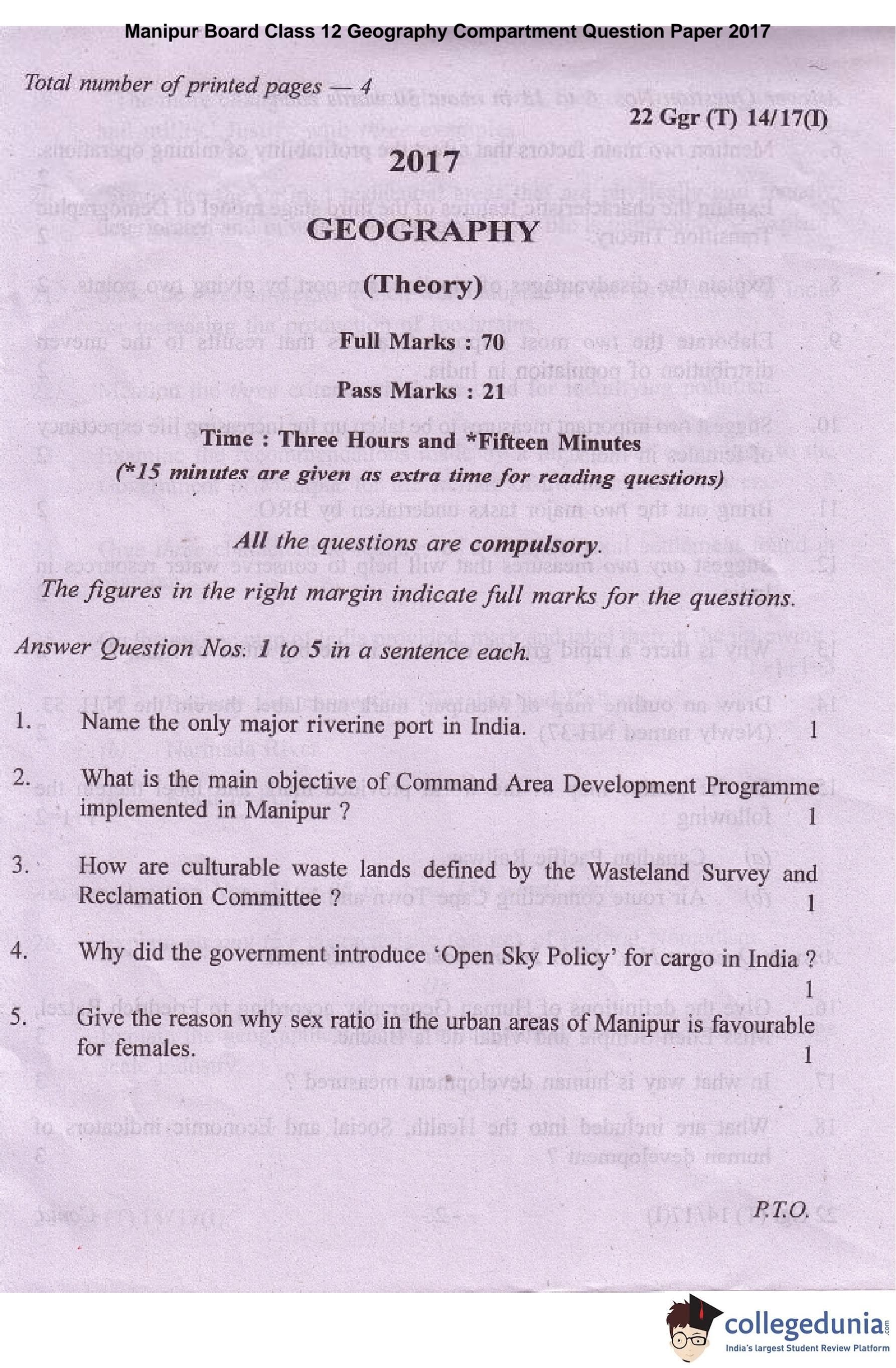 Manipur Board Class 12 Geography Compartment Question Paper 2017