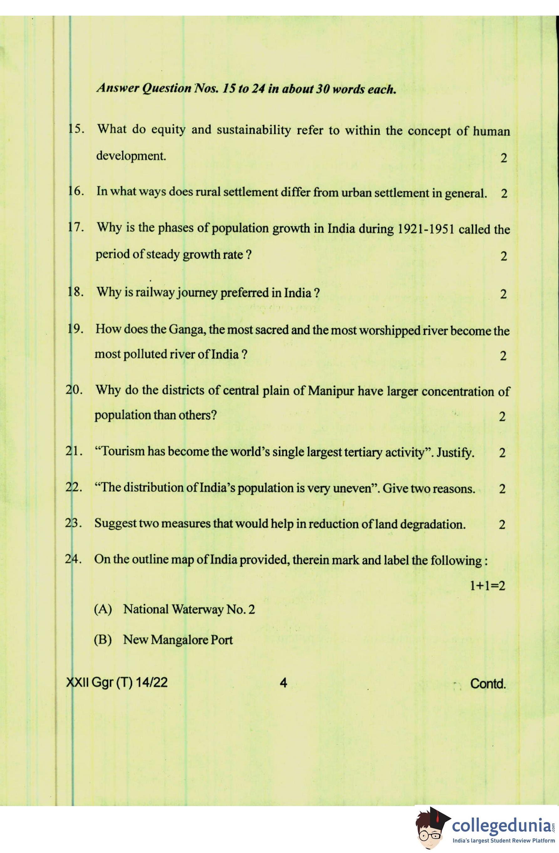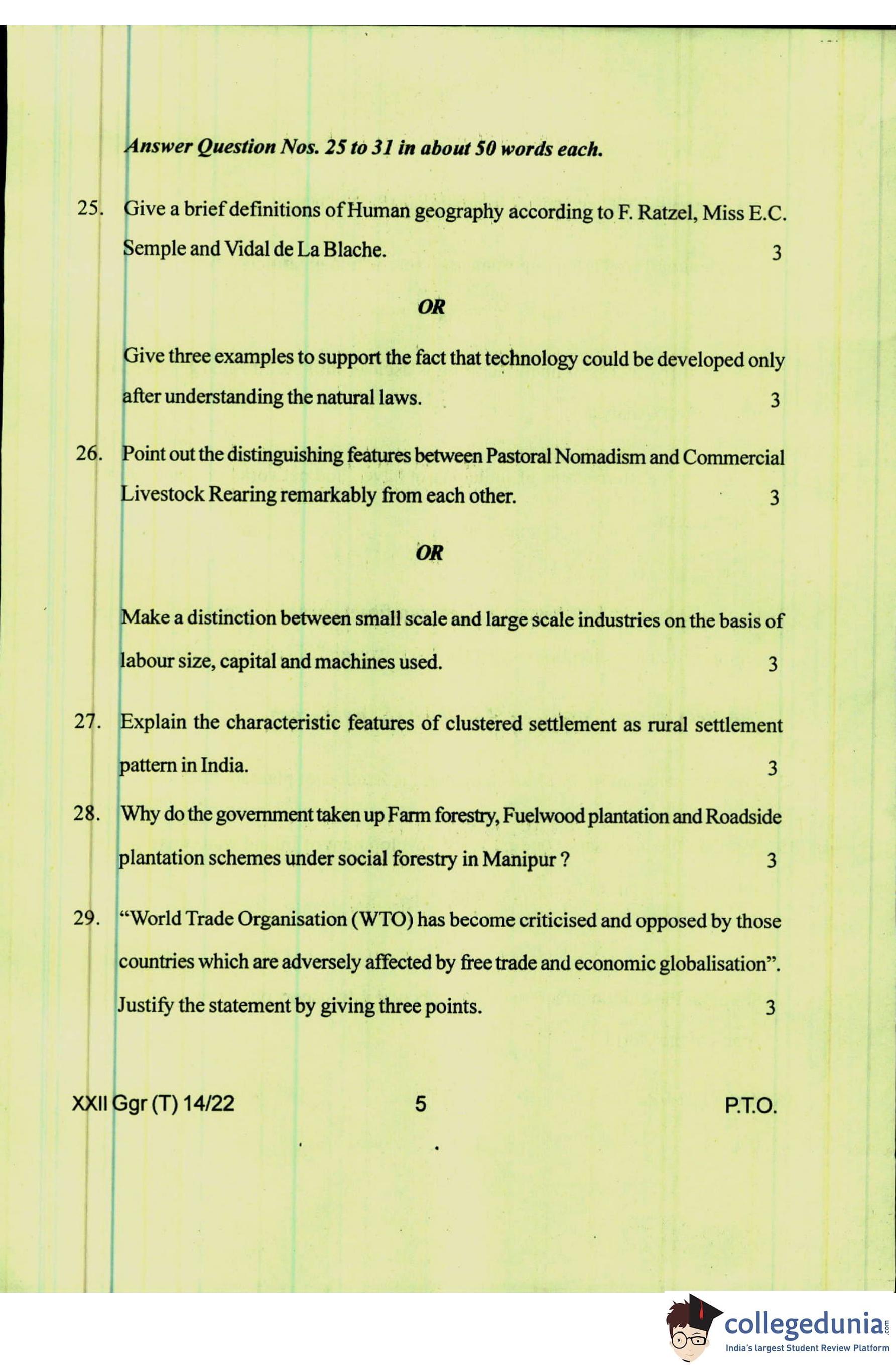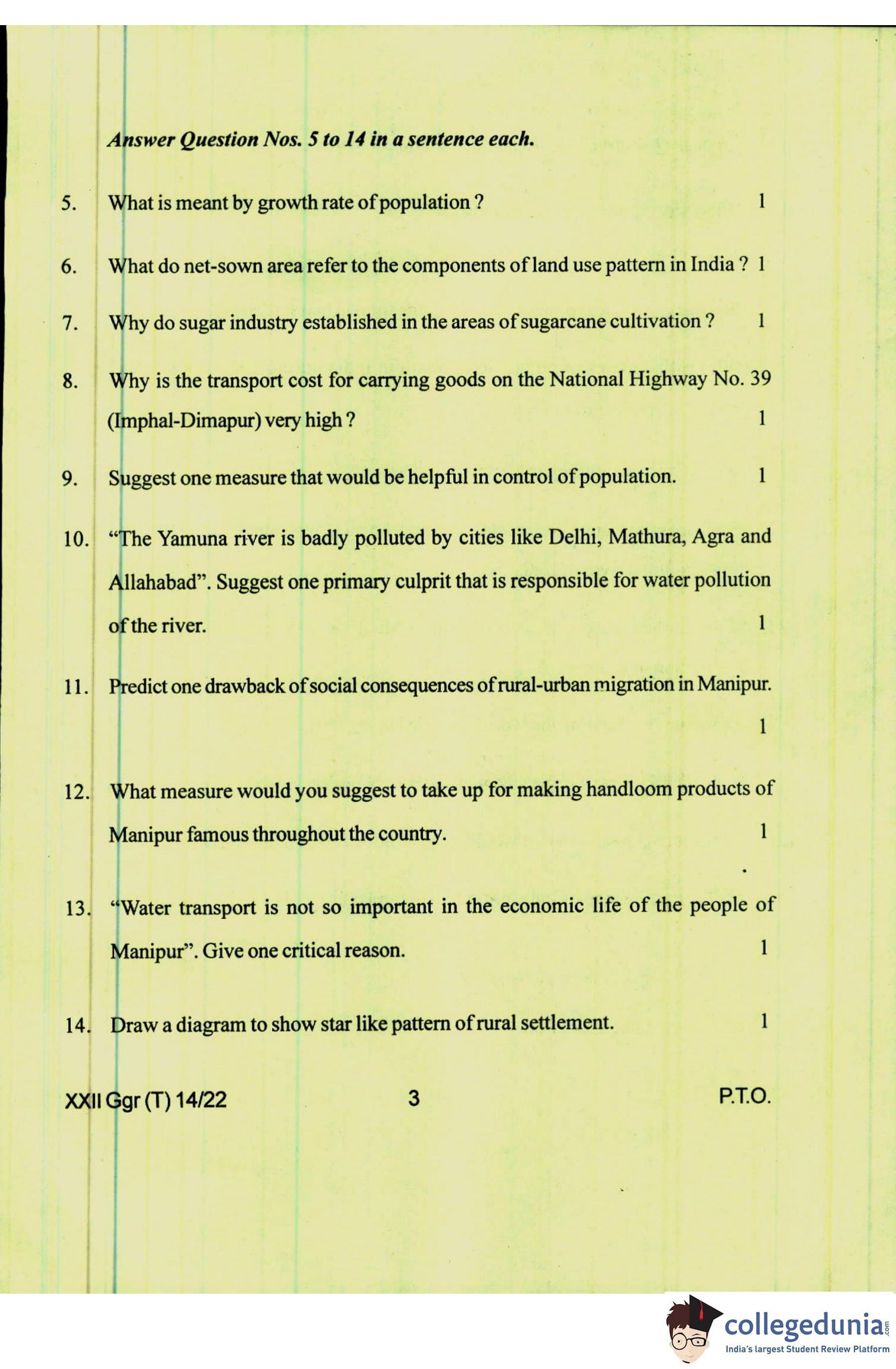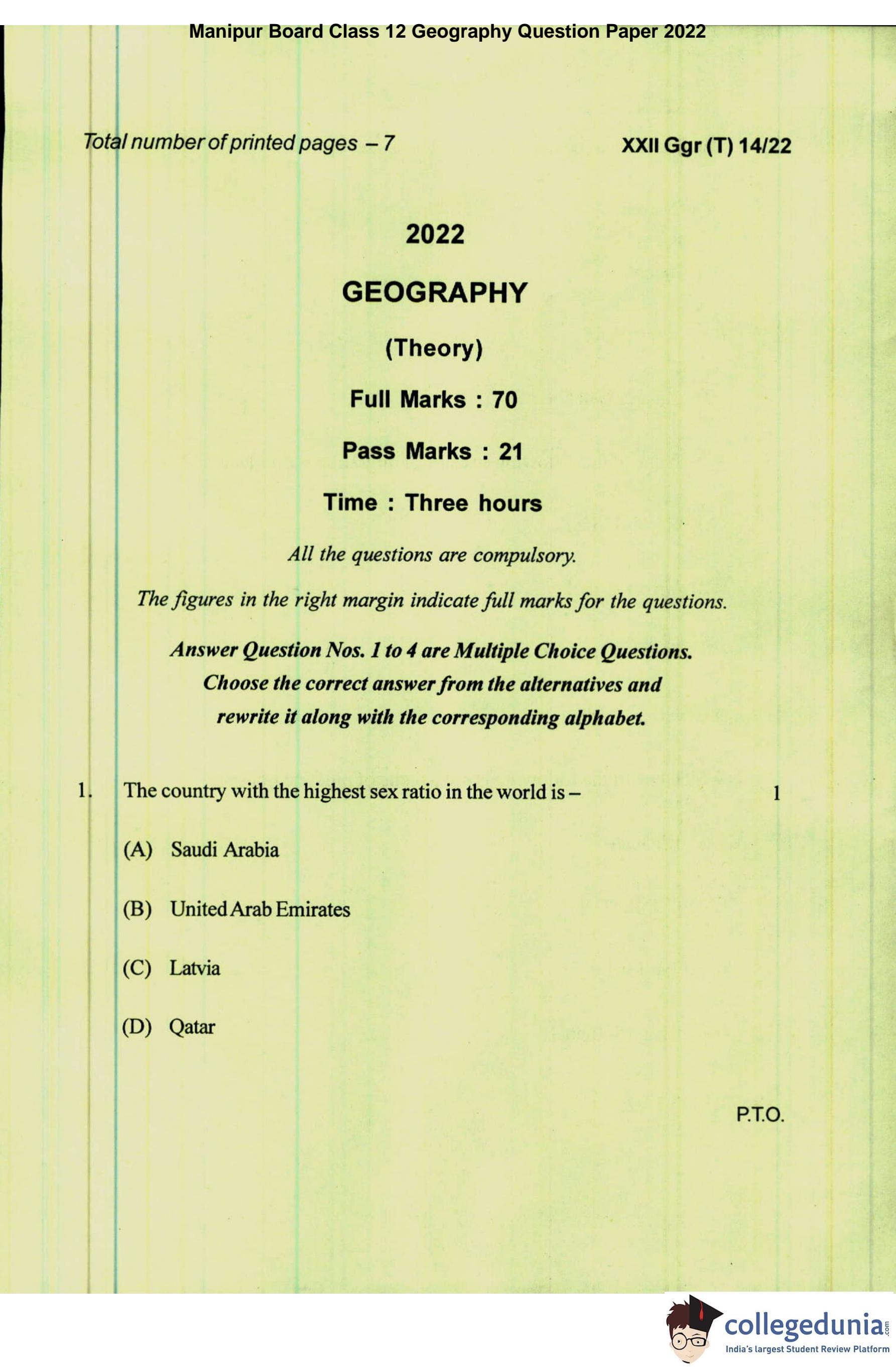 Manipur Board Class 12 Geography Question Paper 2022 with Answer Key pdf is available for download here. The exam was conducted by Council Of Higher Secondary Education, Manipur on May 6, 2022. The question paper comprised a total of 34 questions.