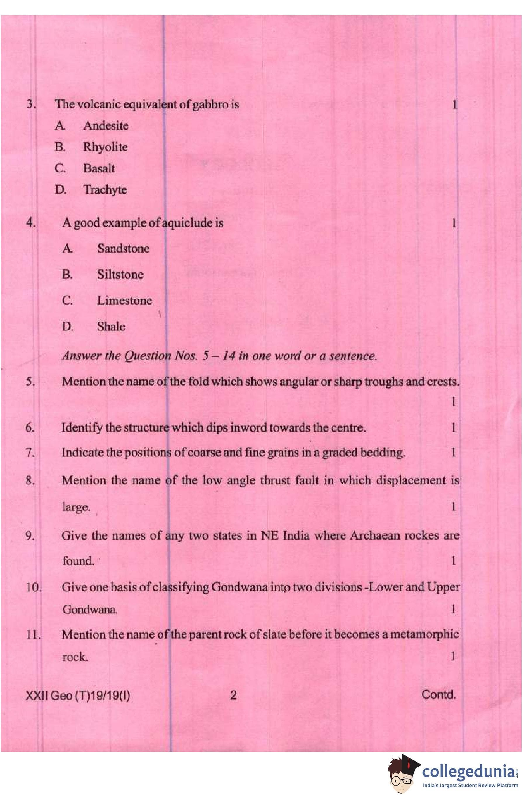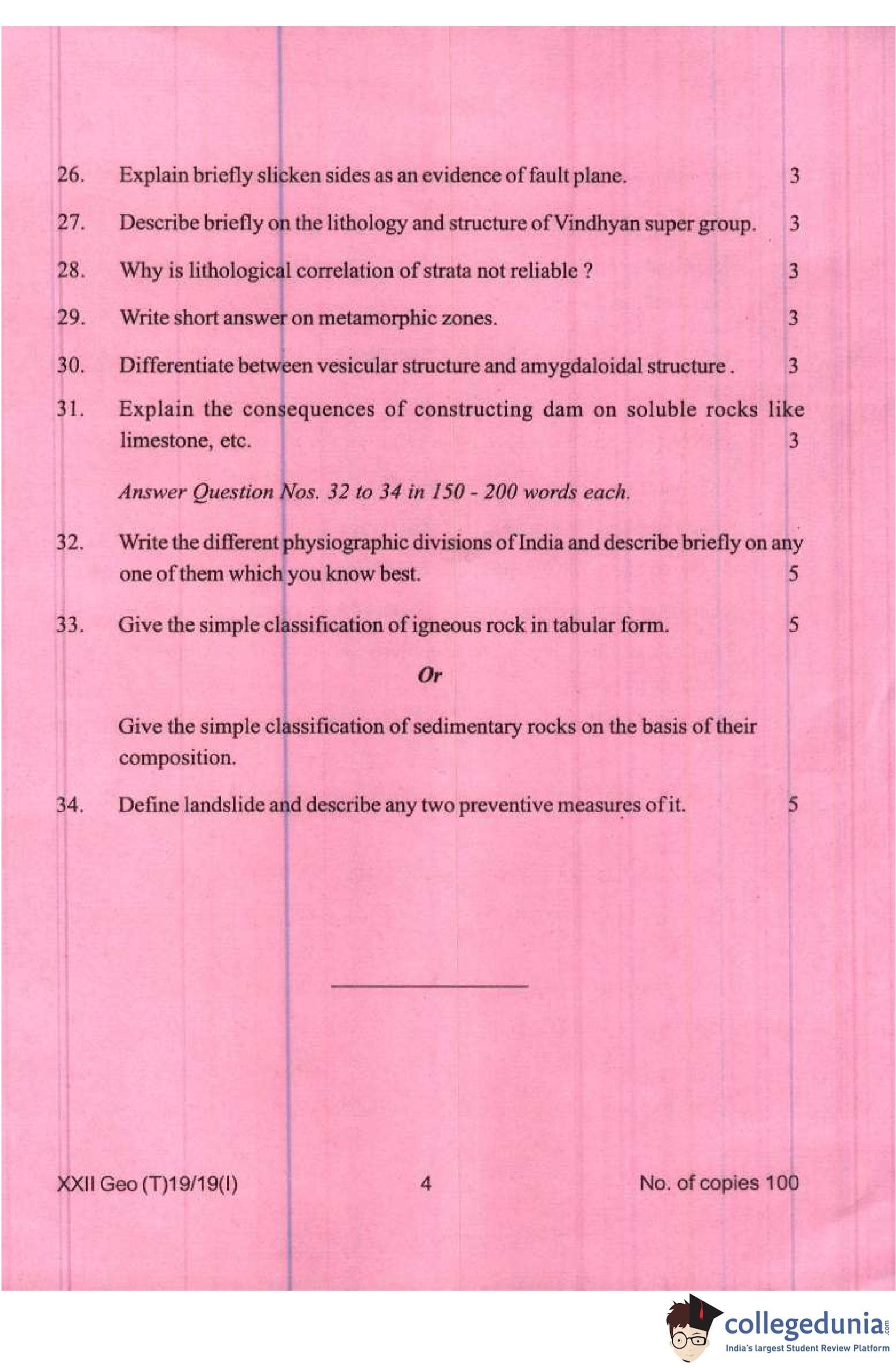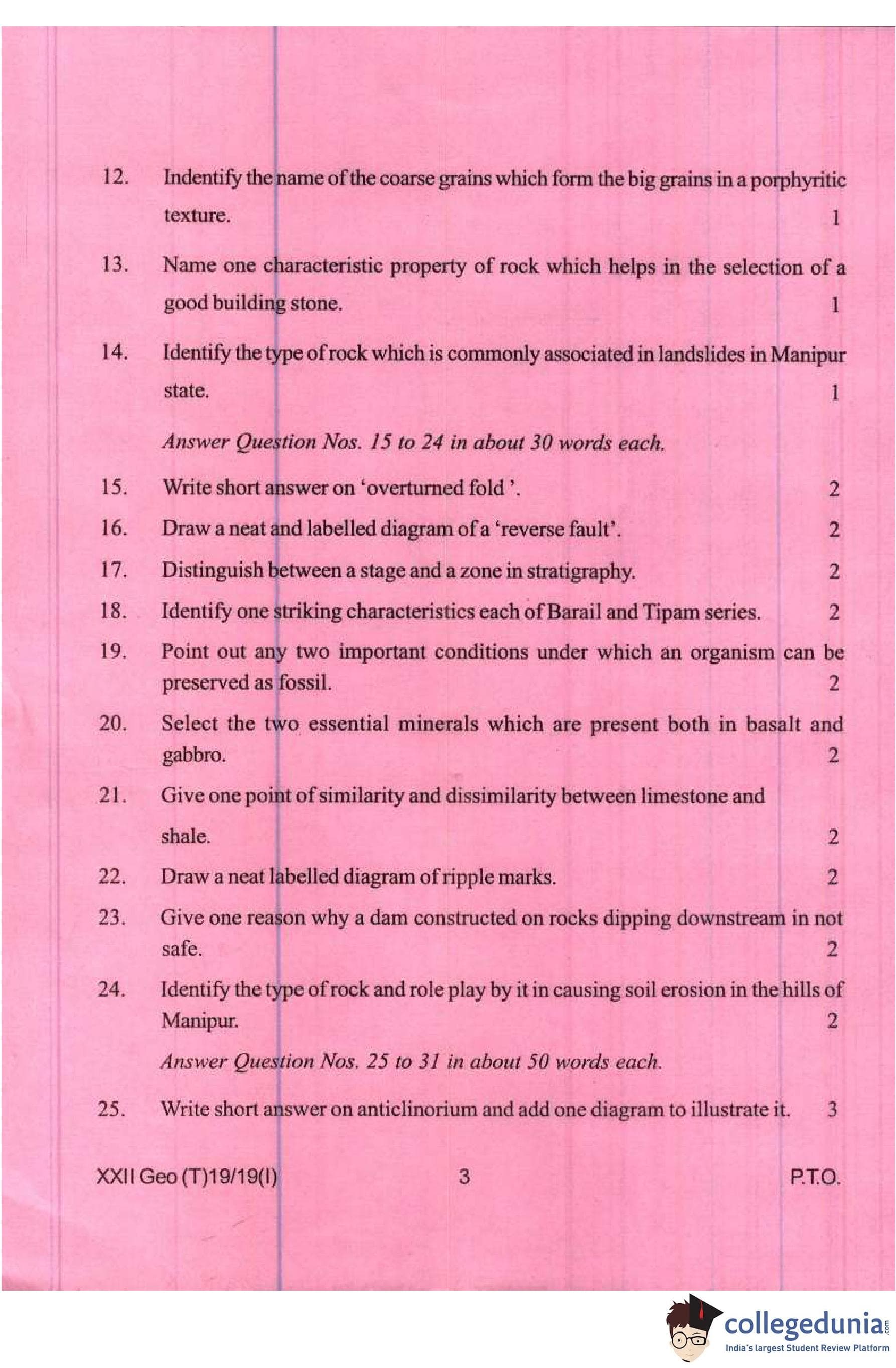 Manipur Board Class 12 Geology Compartment Question Paper 2019