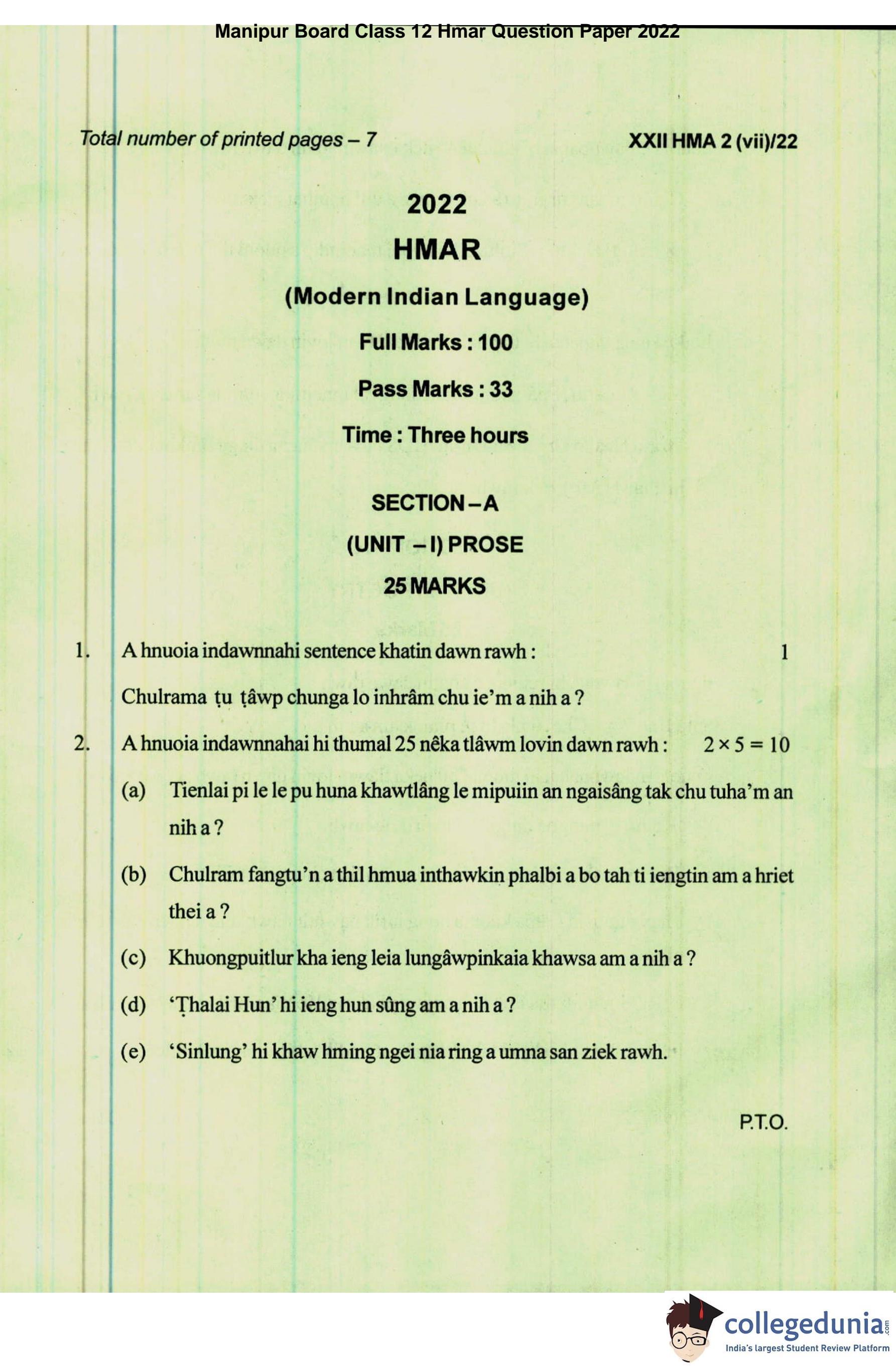 | Manipur Board Class 12 Hmar Question Paper 2022 PDF | Manipur Board Class 12 Hmar Answer Key 2022 PDF |