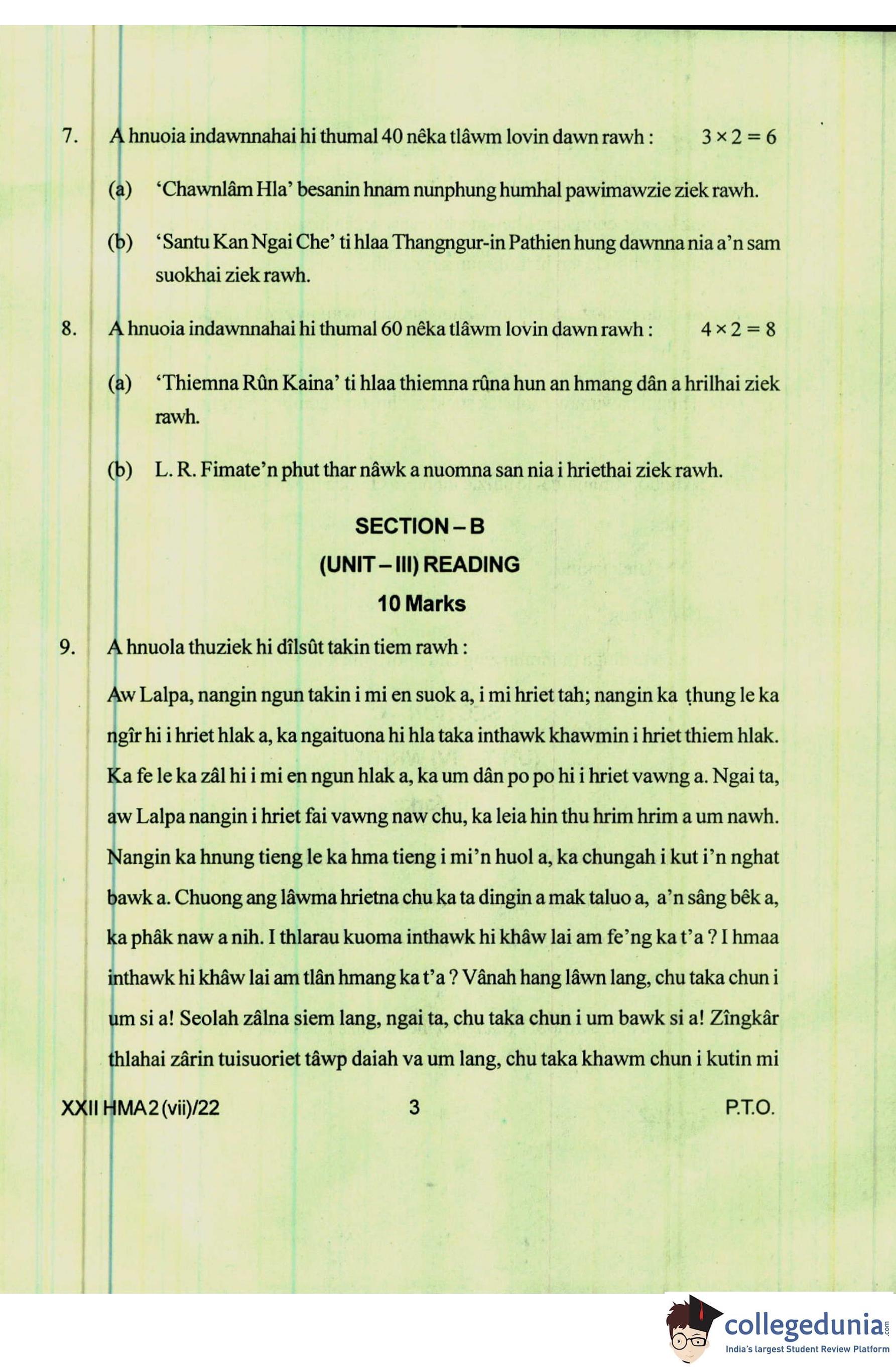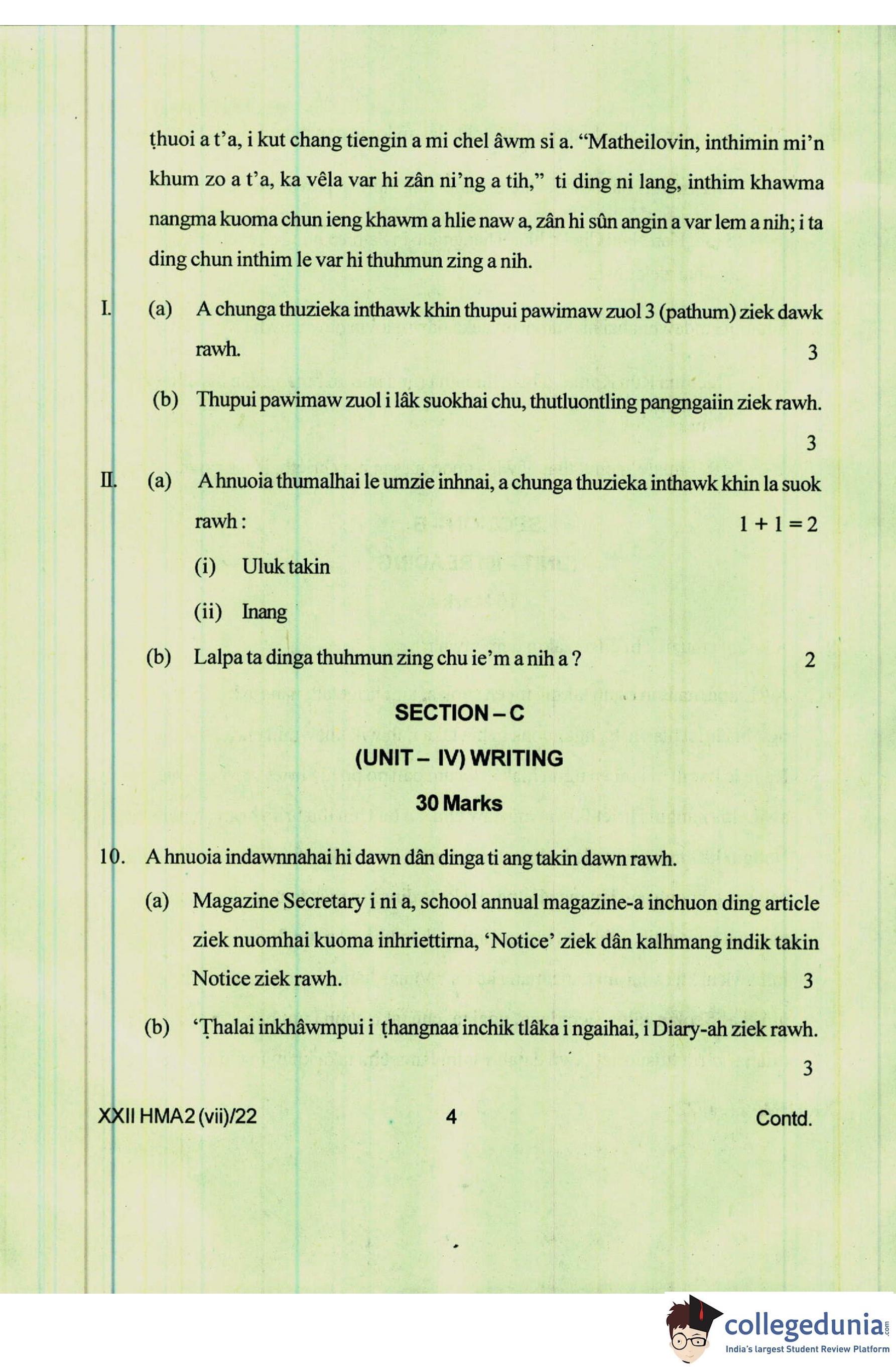Manipur Board Class 12 Hmar Question Paper 2022 with Answer Key pdf is available for download here. The exam was conducted by Council Of Higher Secondary Education, Manipur on April 9, 2022. The question paper comprised a total of 12 questions divided among 4 sections.