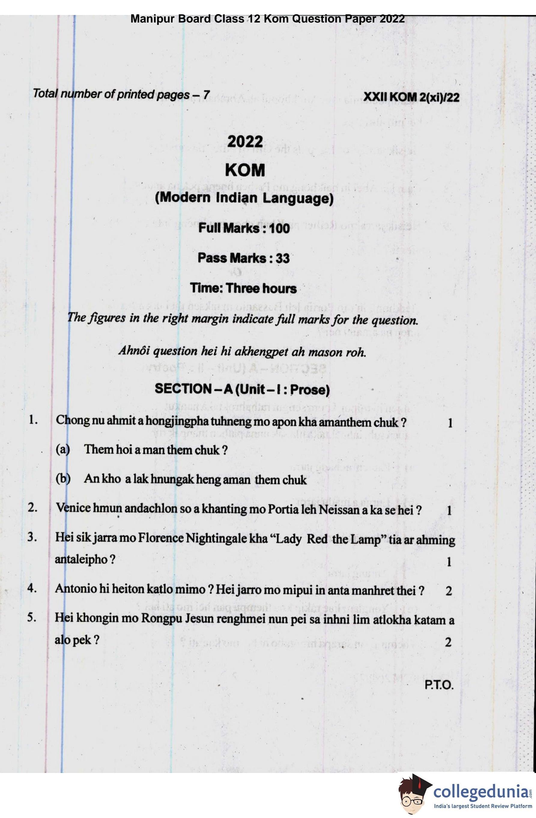 | Manipur Board Class 12 Kom Question Paper 2022 PDF | Manipur Board Class 12 Kom Answer Key 2022 PDF |