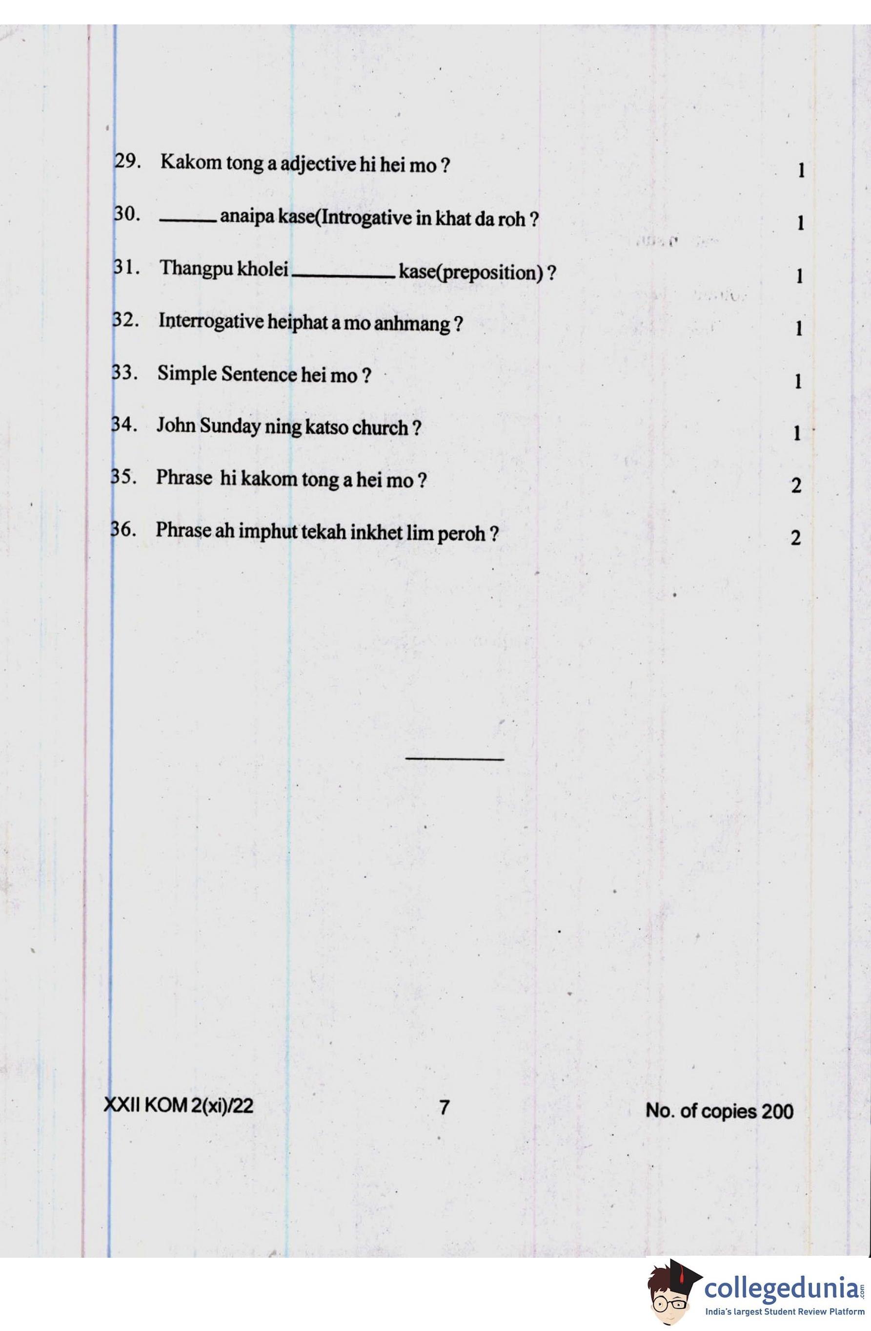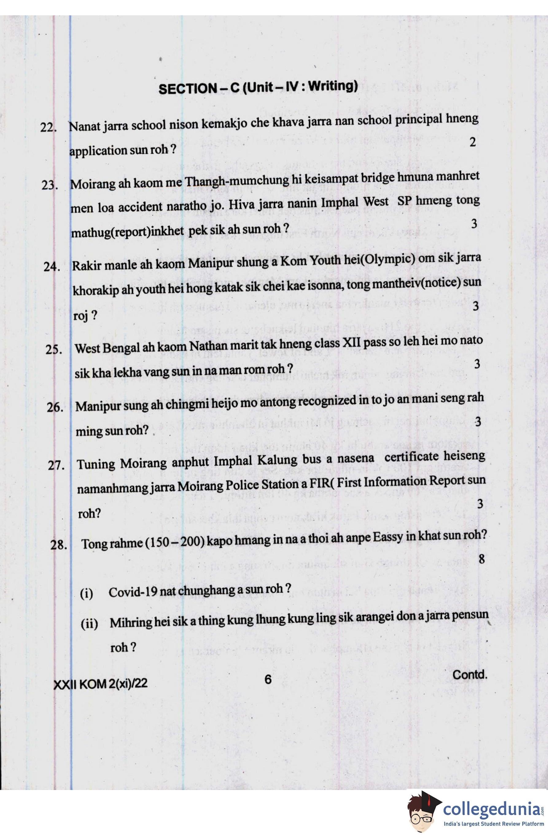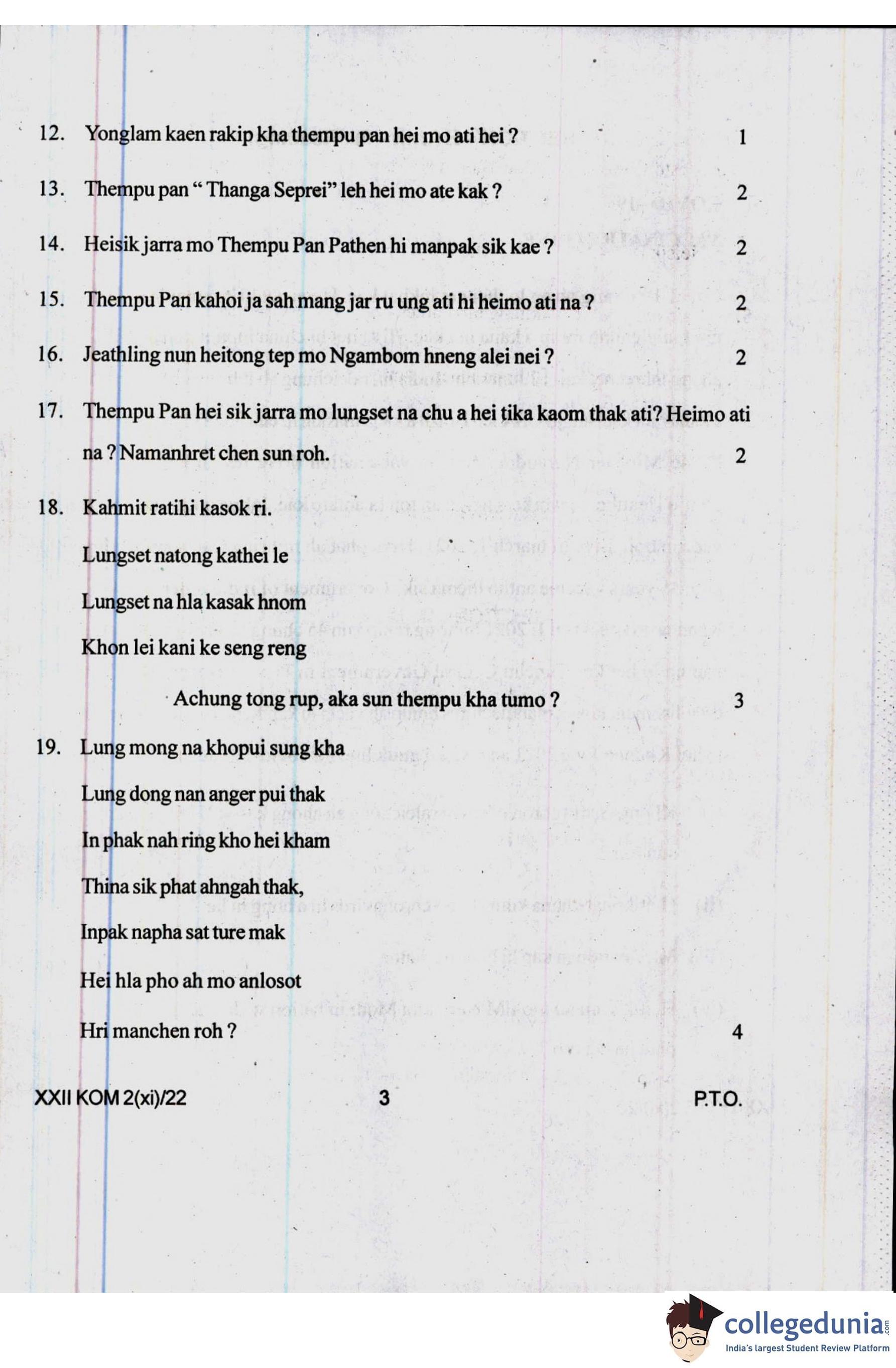 Manipur Board Class 12 Kom Question Paper 2022 with Answer Key pdf is available for download here. The exam was conducted by Council Of Higher Secondary Education, Manipur on April 9, 2022. The question paper comprised a total of 36 questions divided among 3 sections.