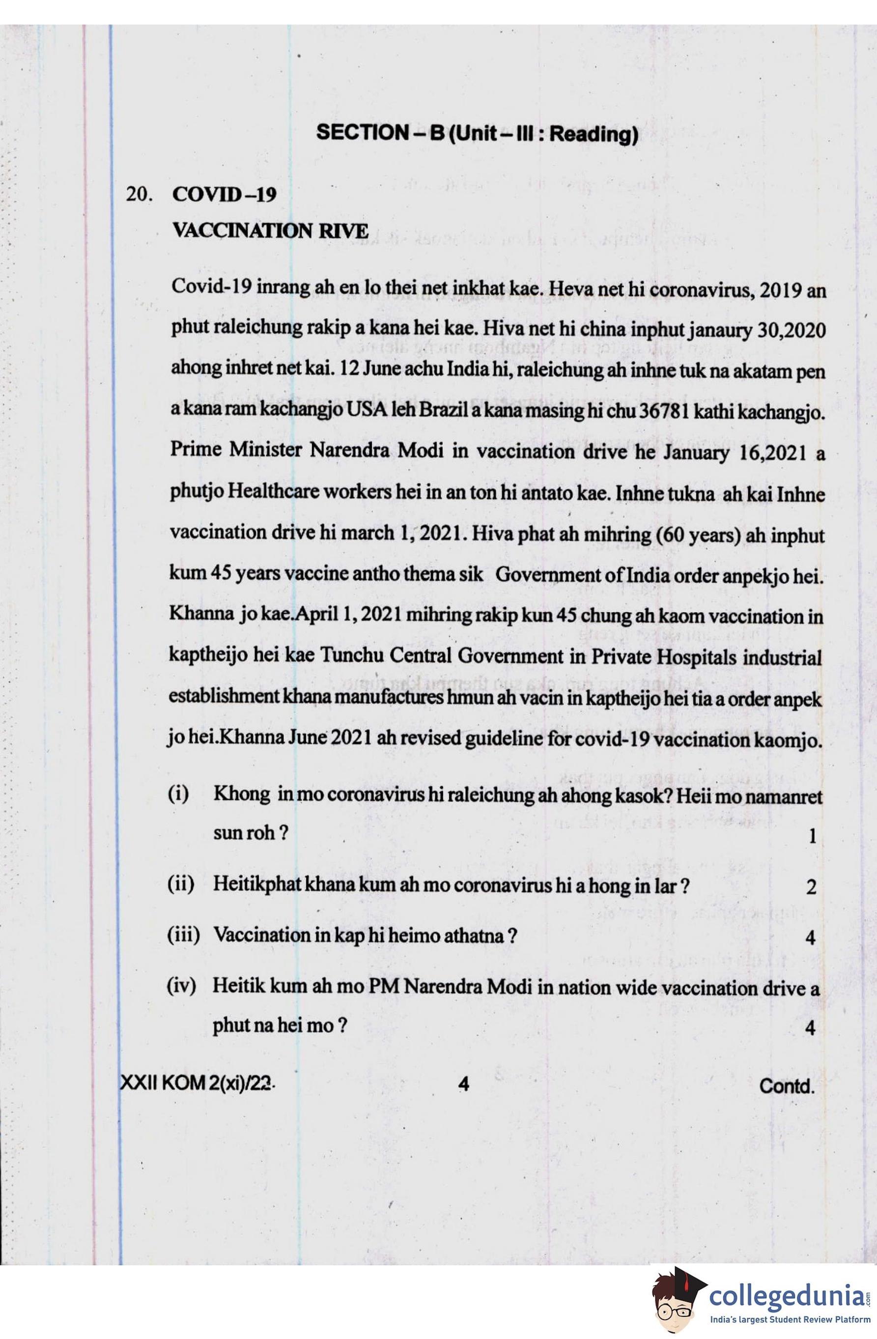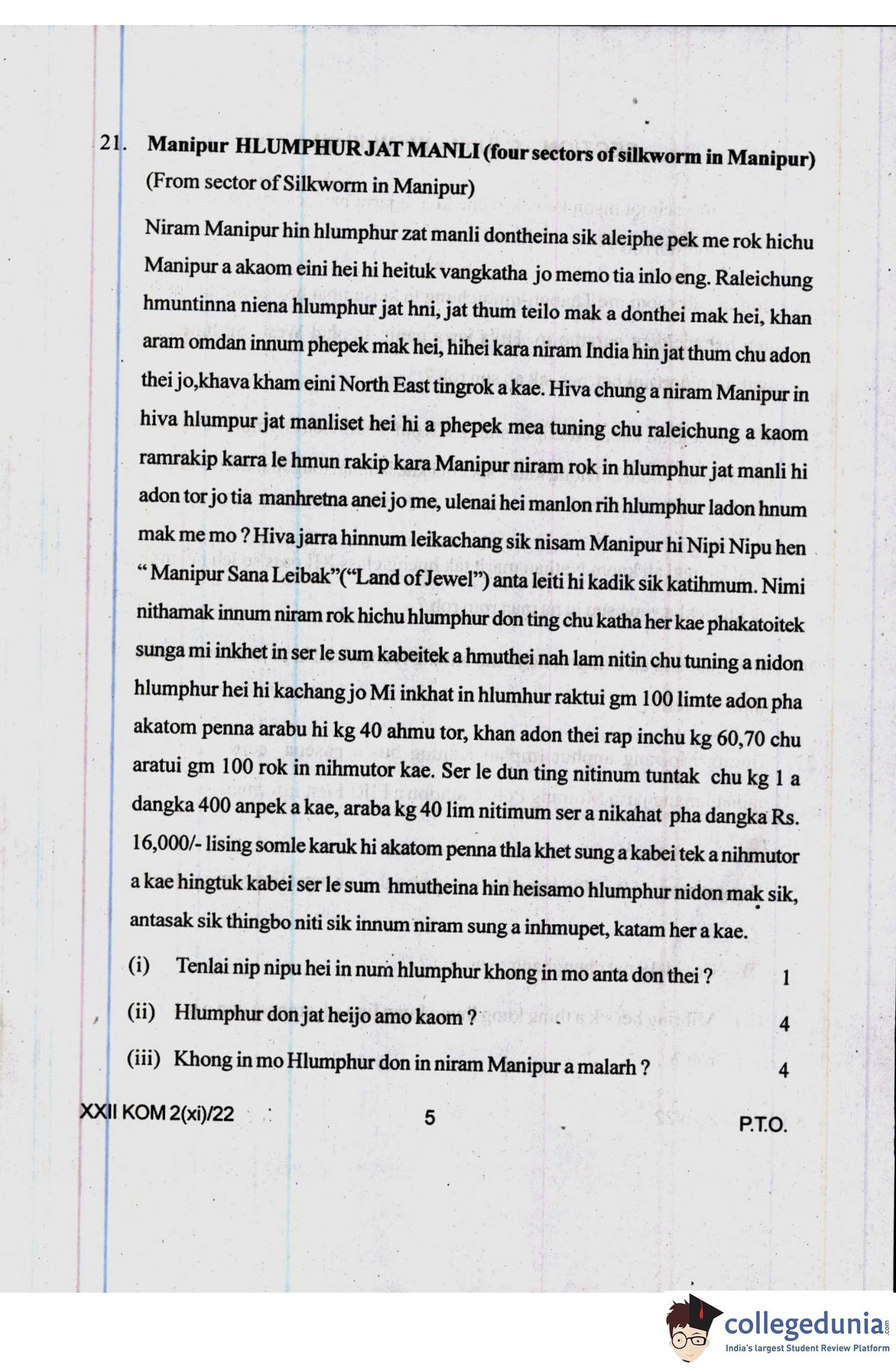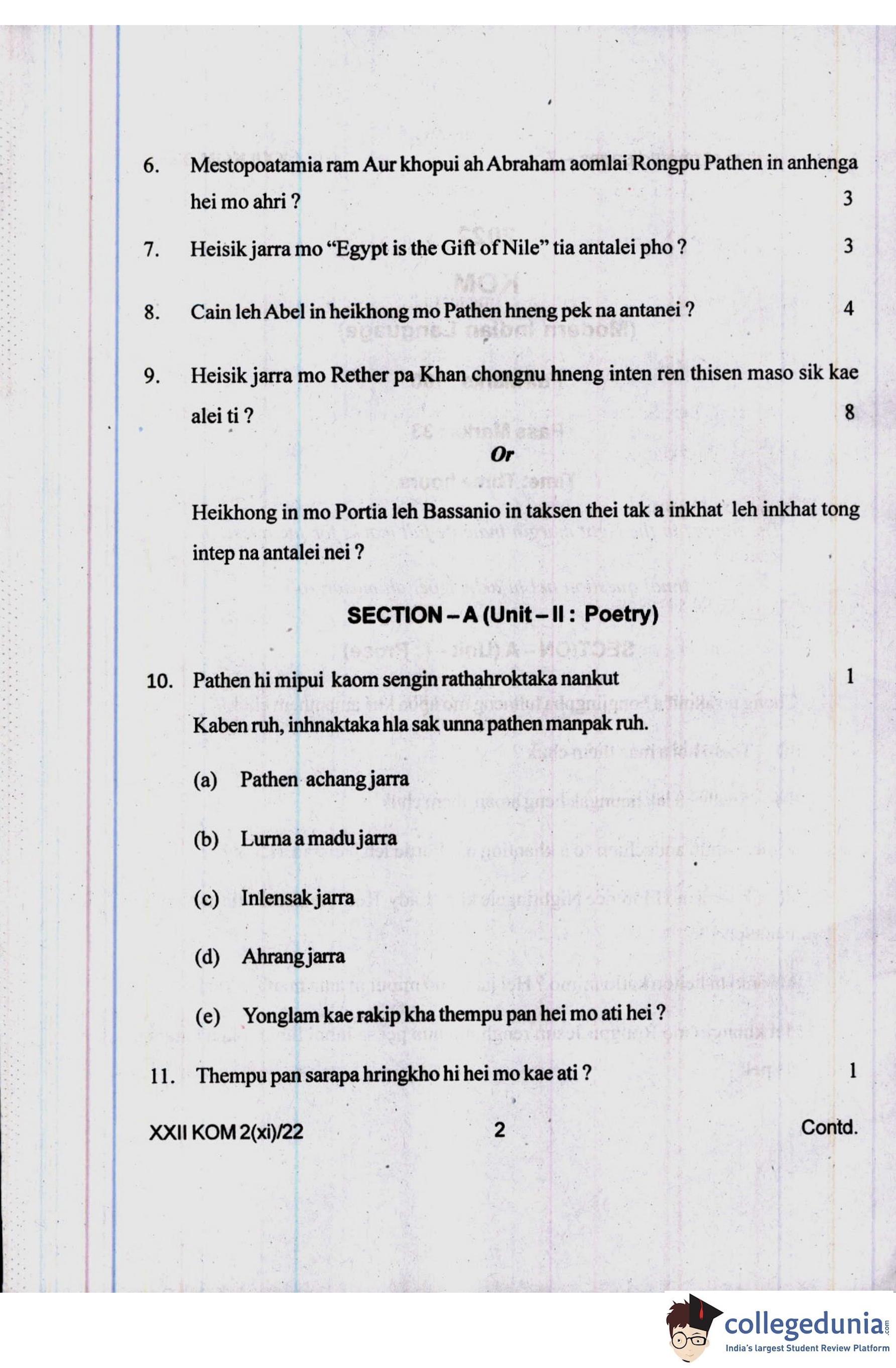 Manipur Board Class 12 Kom Question Paper 2022 with Answer Key pdf is available for download here. The exam was conducted by Council Of Higher Secondary Education, Manipur on April 9, 2022. The question paper comprised a total of 36 questions divided among 3 sections.