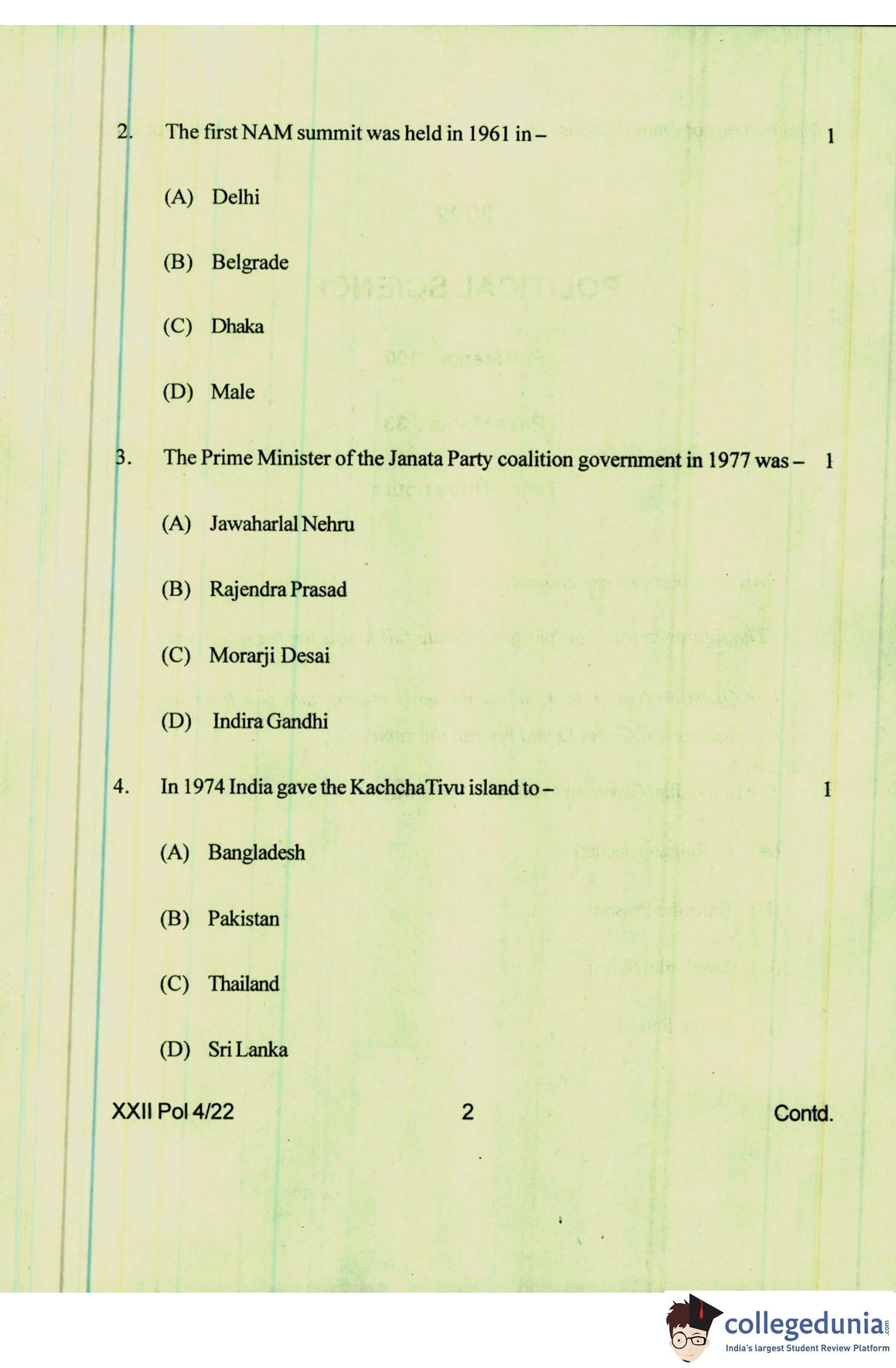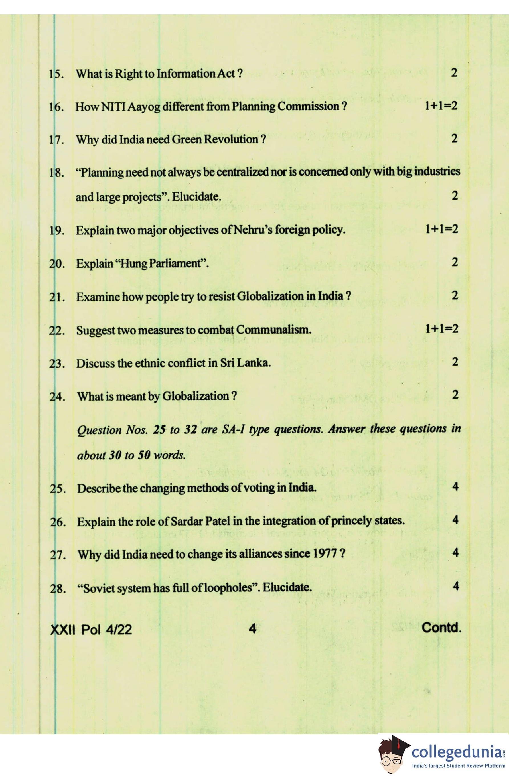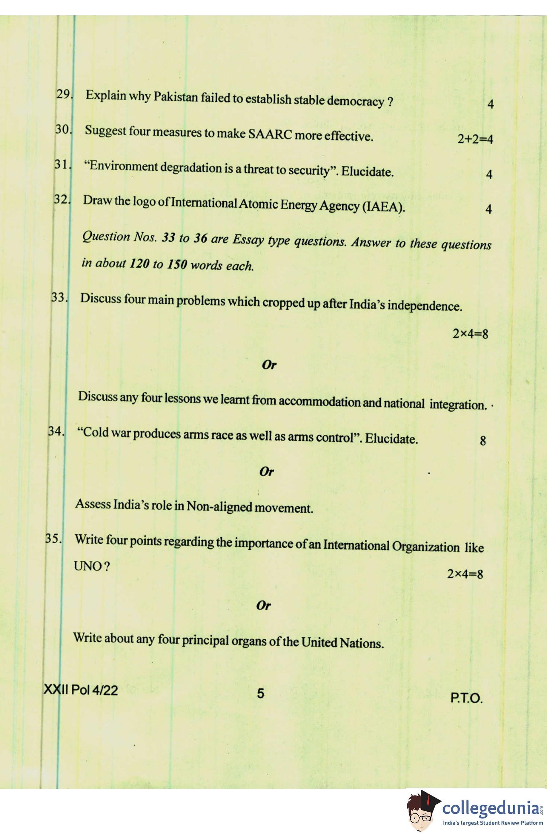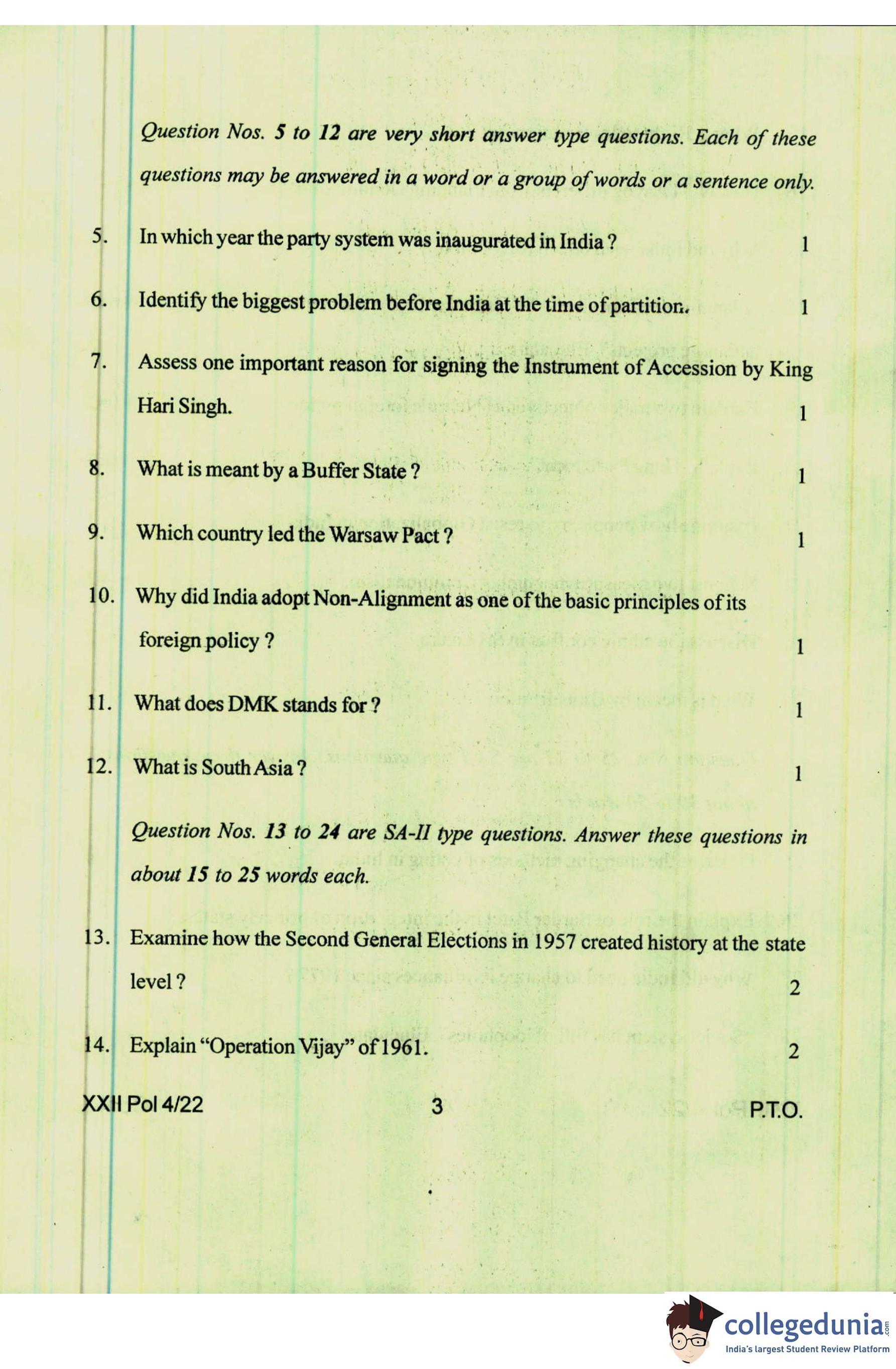 Manipur Board Class 12 Political Science Question Paper 2022 with Answer Key pdf is available for download here. The exam was conducted by Council Of Higher Secondary Education, Manipur on April 12, 2022. The question paper comprised a total of 36 questions.