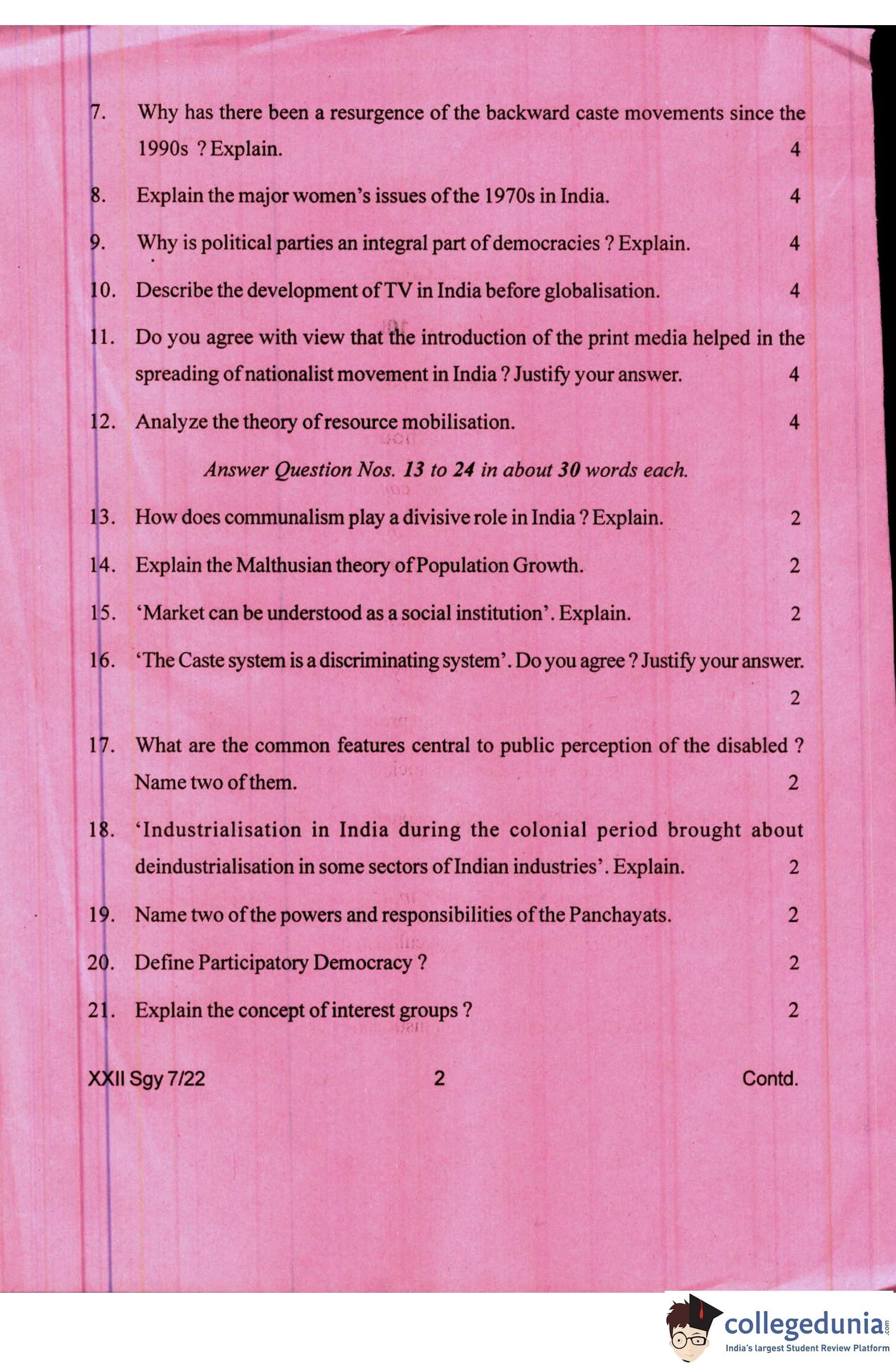 Manipur Board Class 12 Sociology Question Paper 2022 with Answer Key pdf is available for download here. The exam was conducted by Council Of Higher Secondary Education, Manipur on April 29, 2022. The question paper comprised a total of 36 questions.