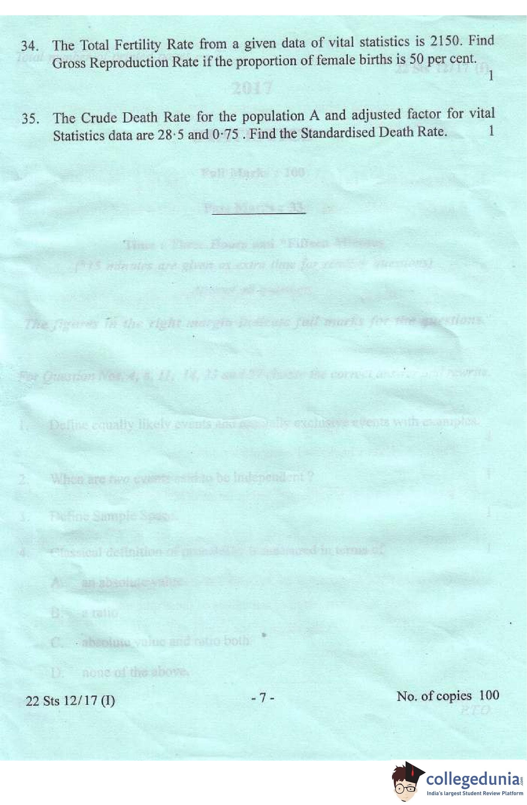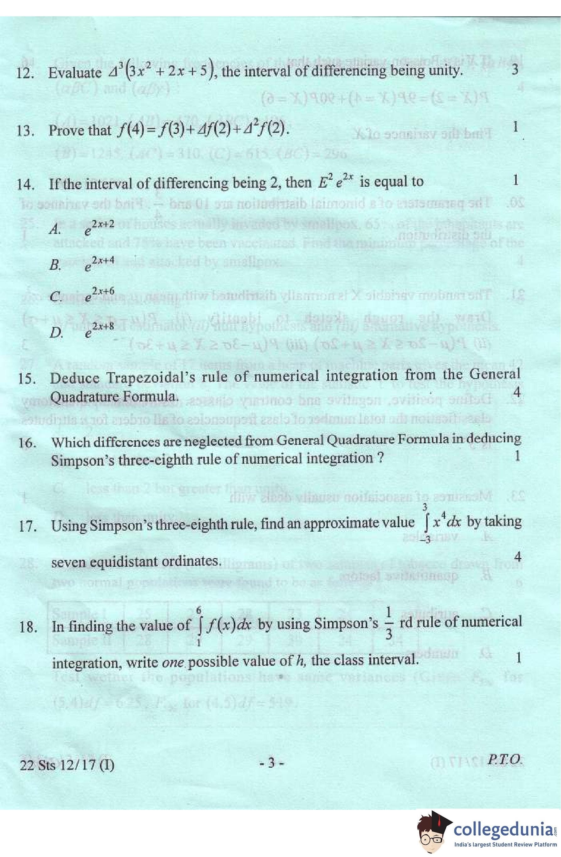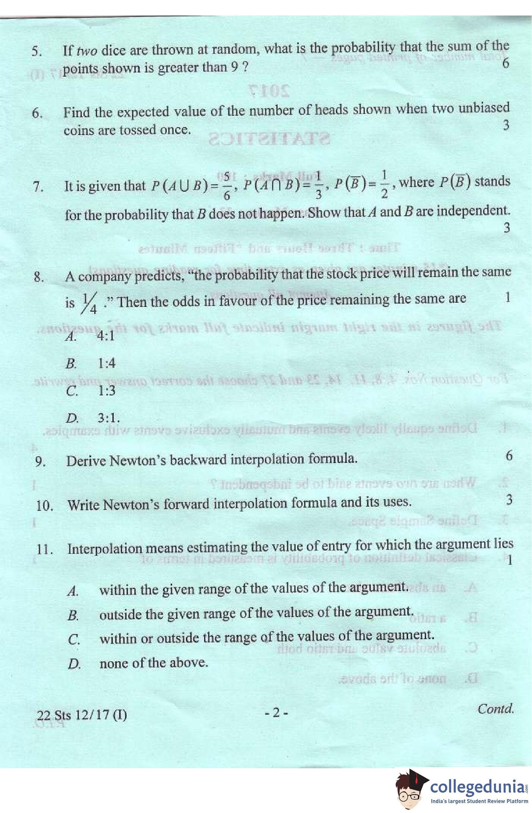 Manipur Board Class 12 Statistics Compartment Question Paper 2017