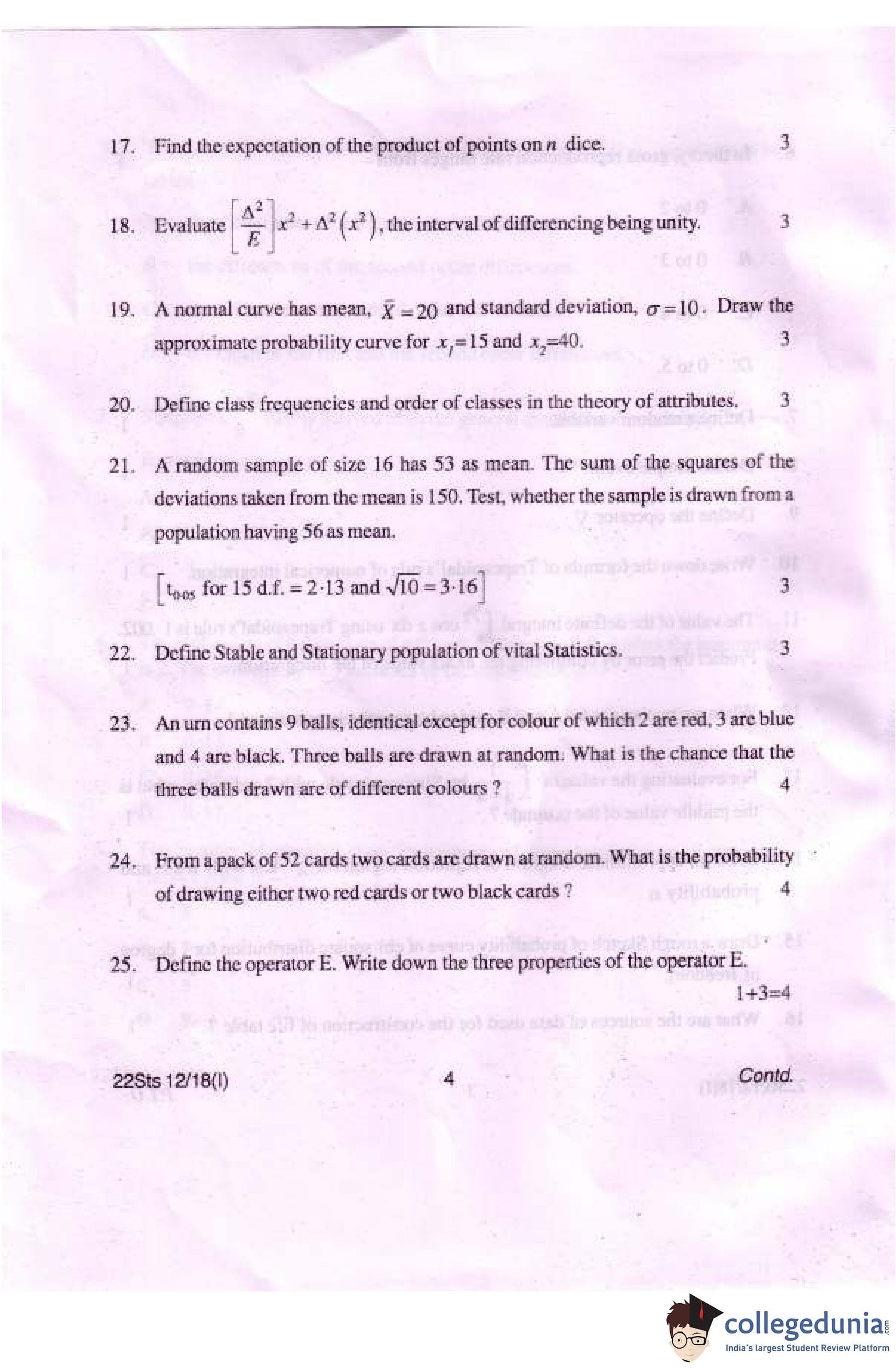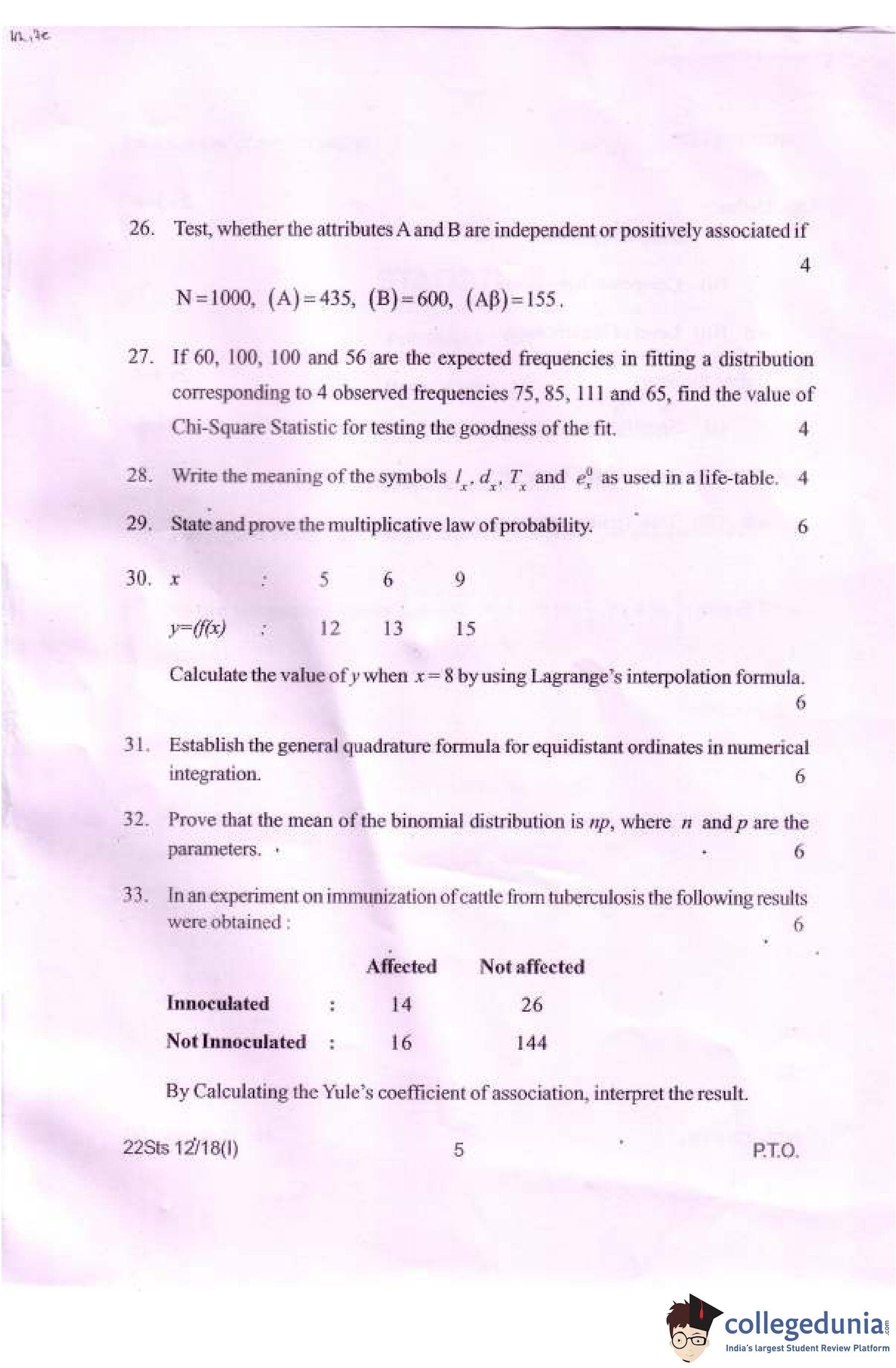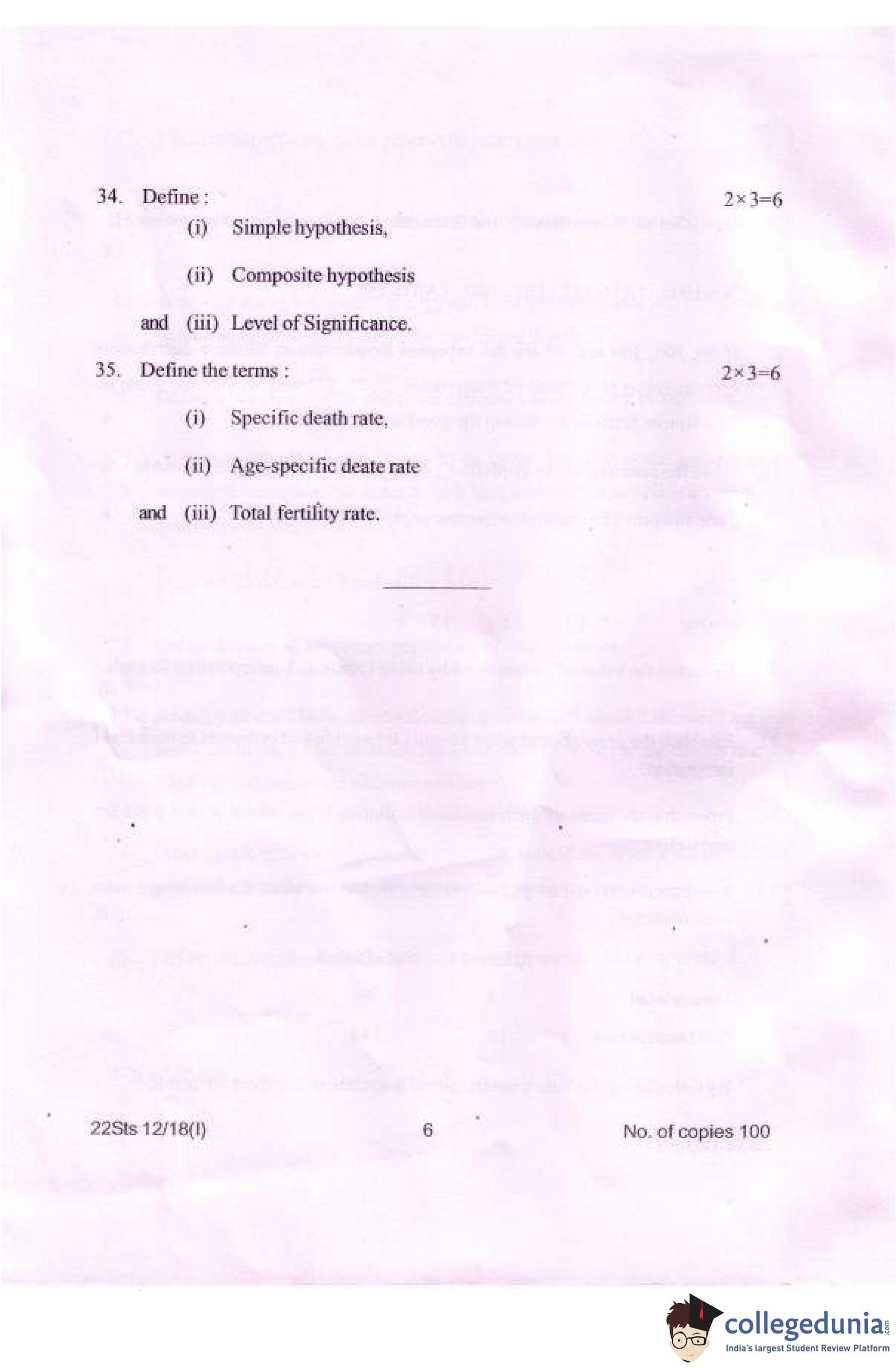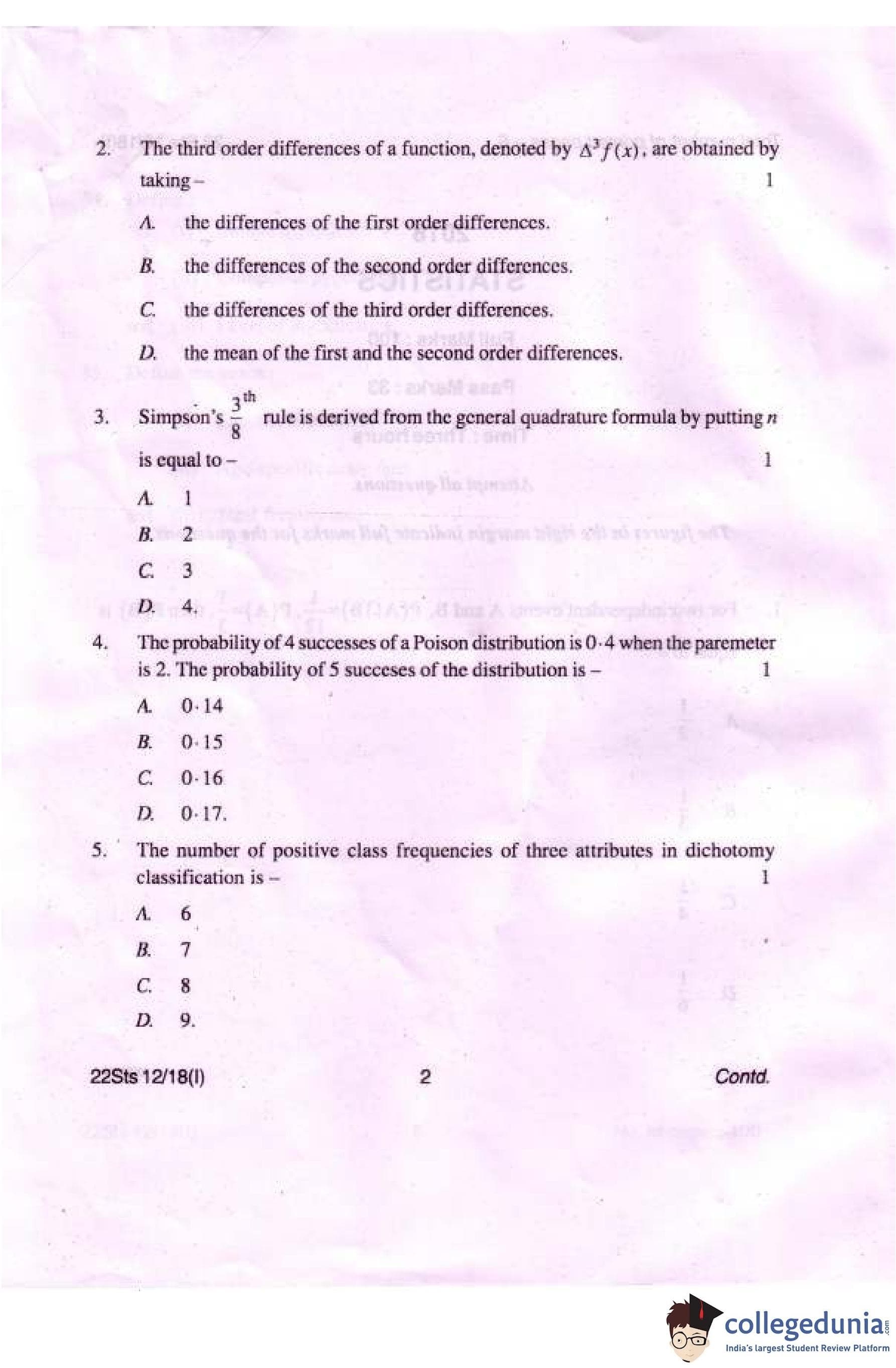 Manipur Board Class 12 Statistics Compartment Question Paper 2018