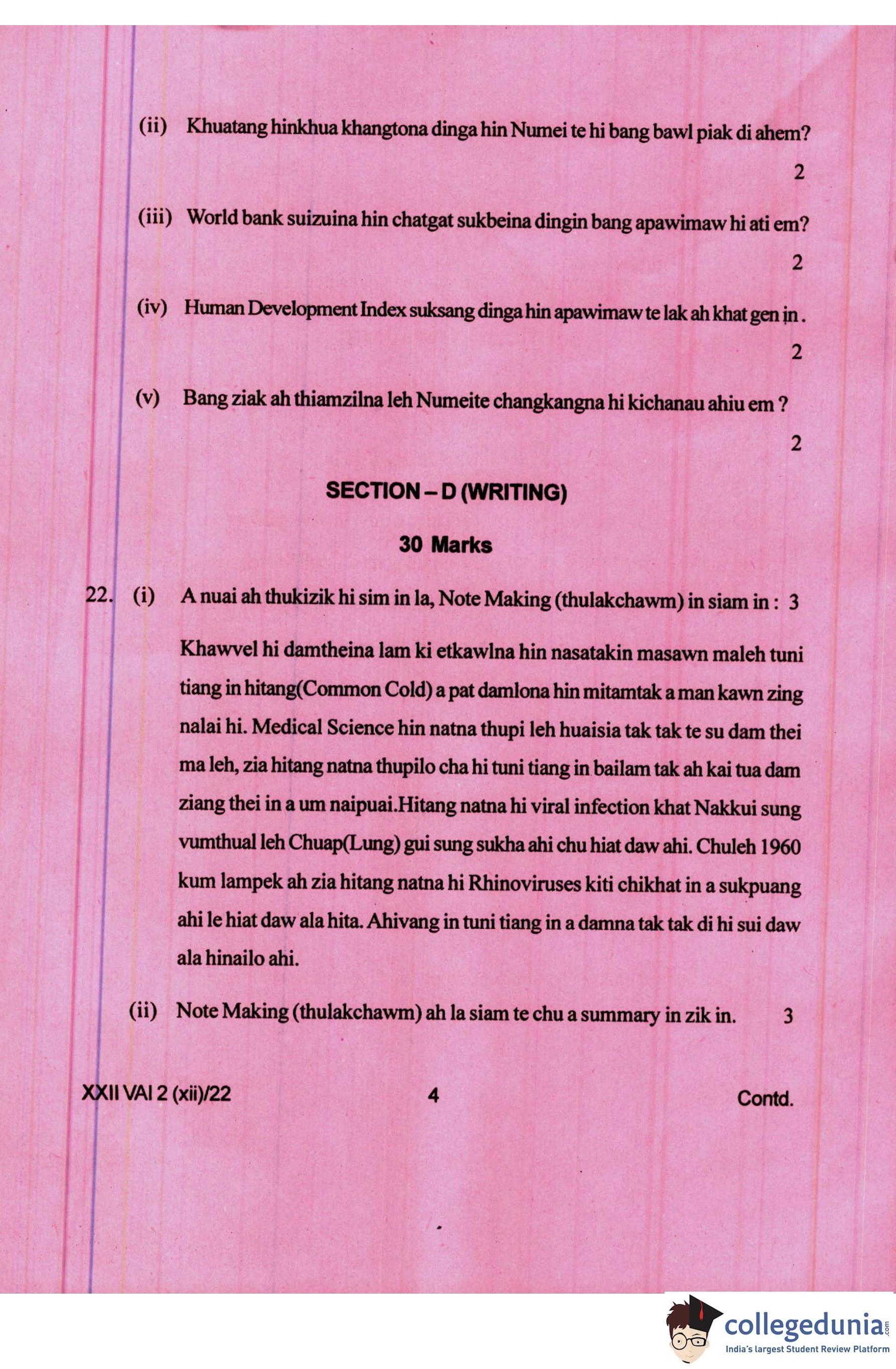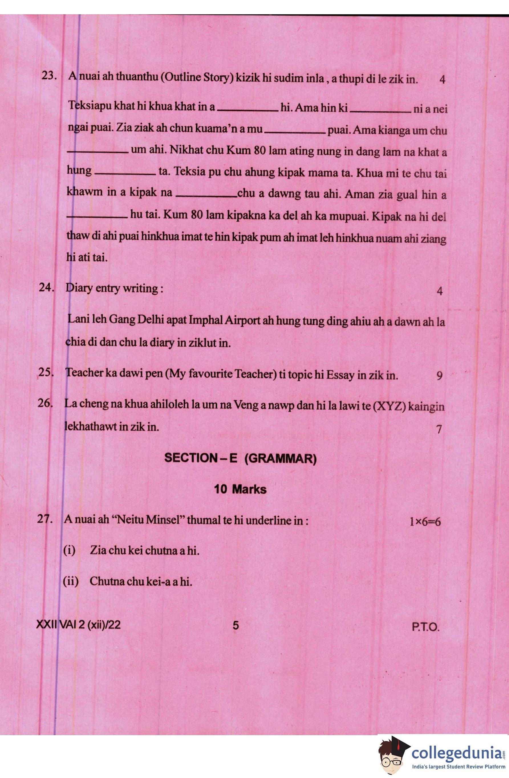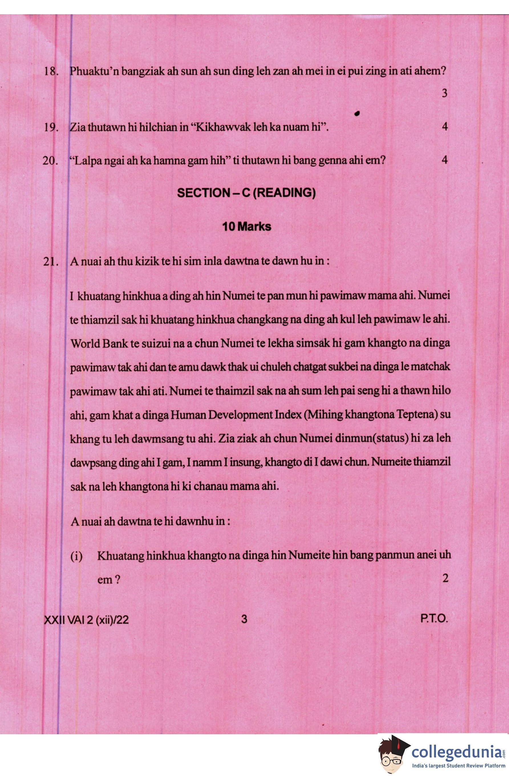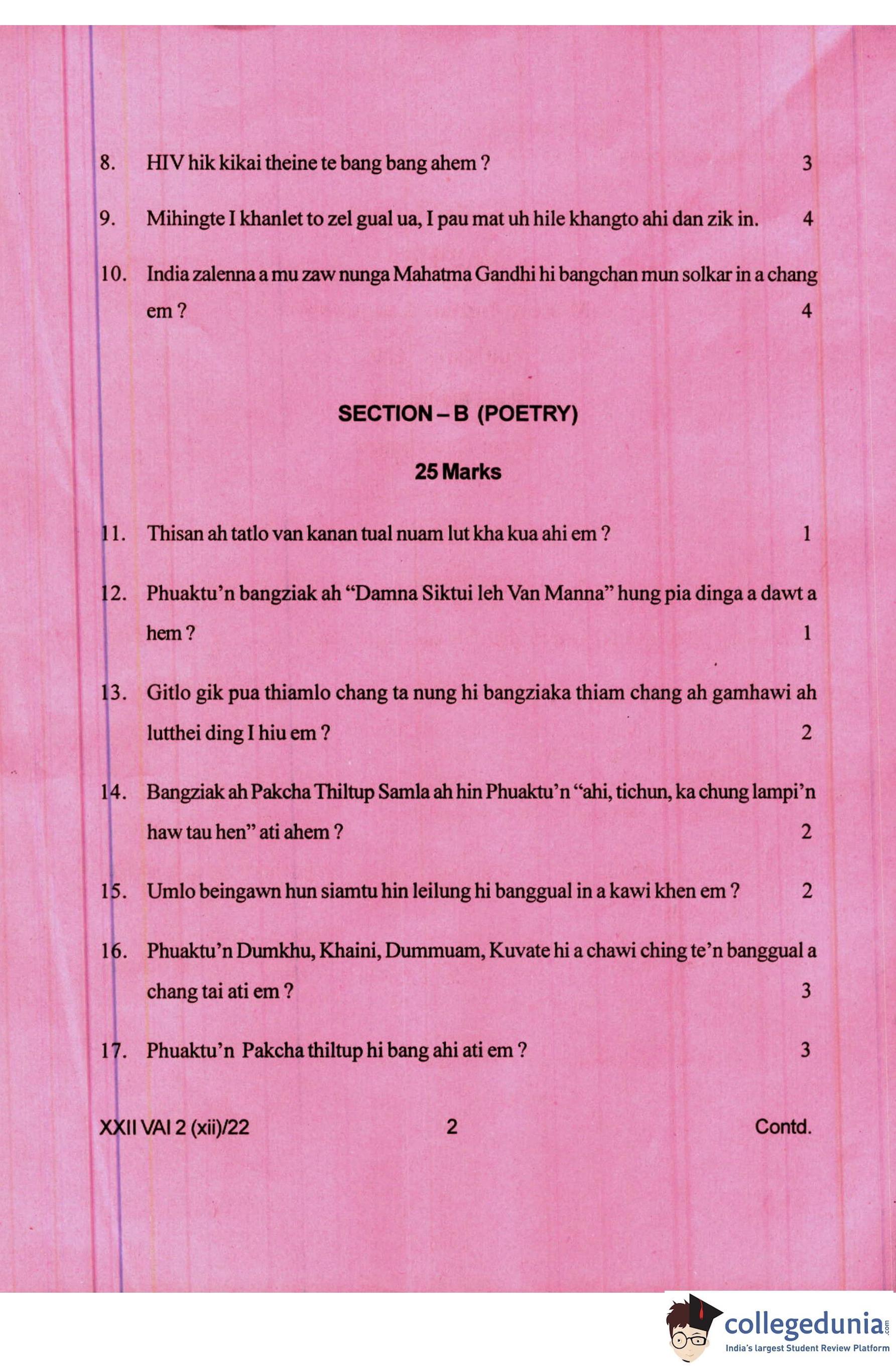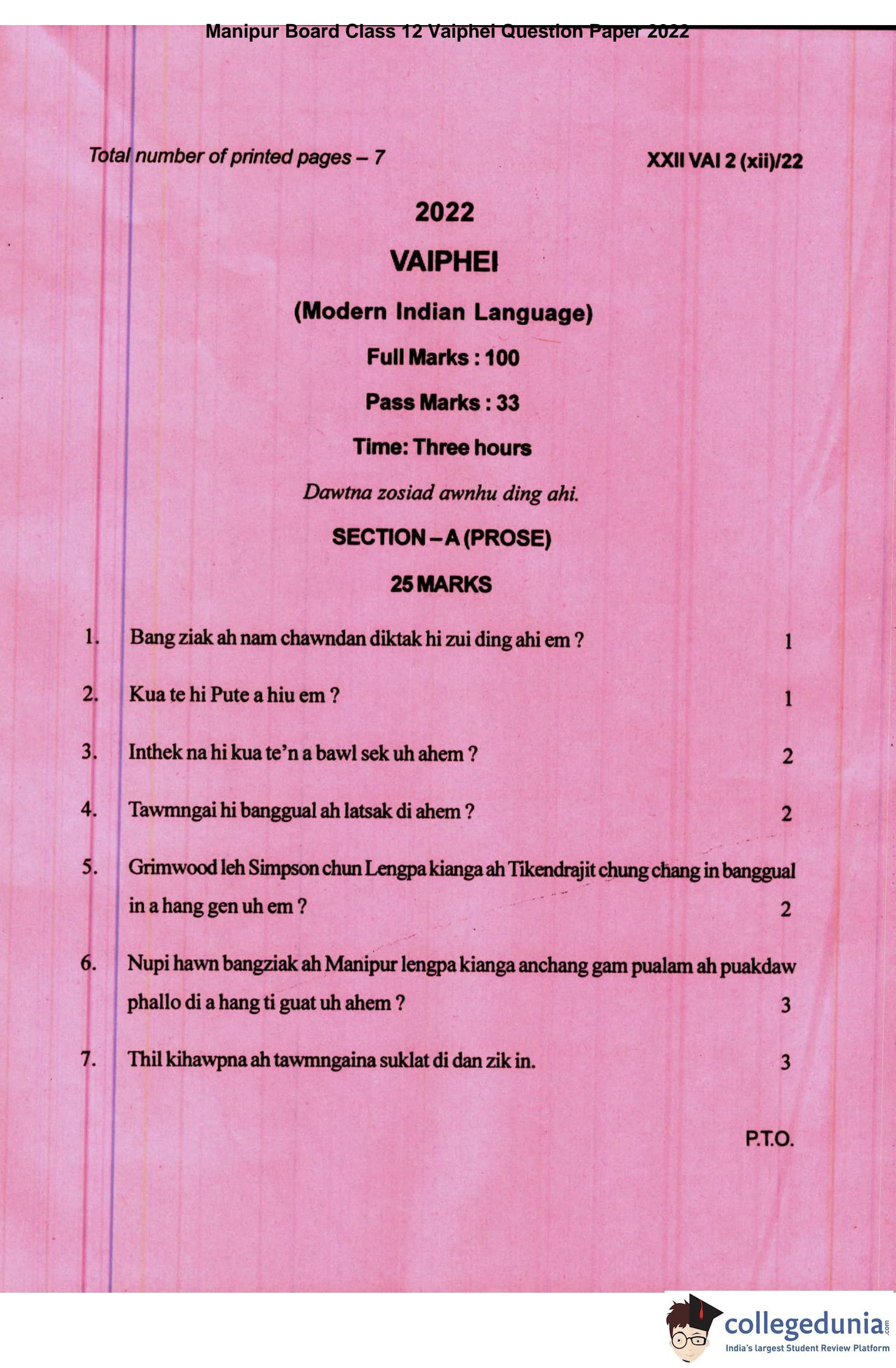 Manipur Board Class 12 Vaiphei Question Paper 2022