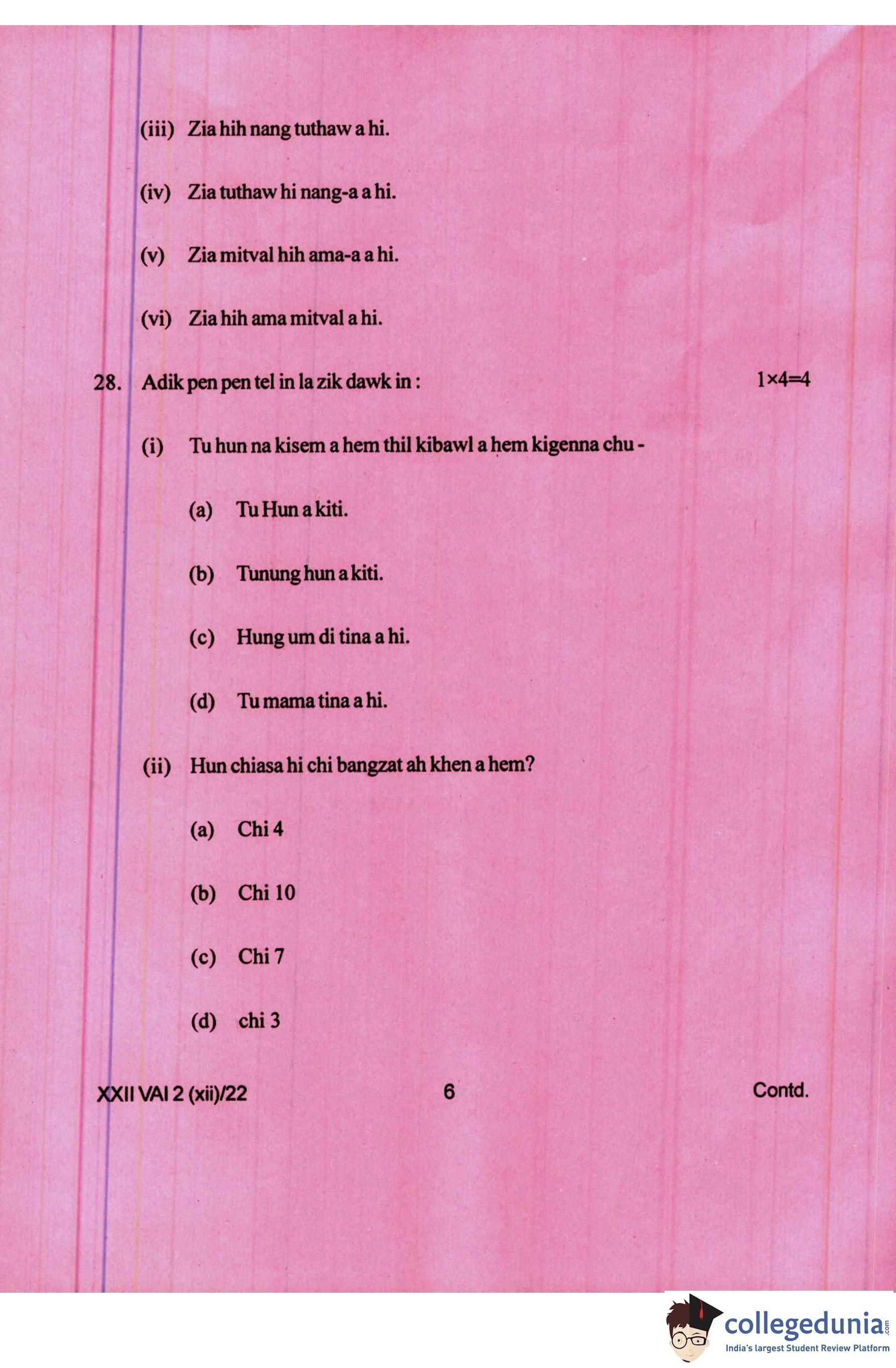Manipur Board Class 12 Vaiphei Question Paper 2022 with Answer Key pdf is available for download here. The exam was conducted by Council Of Higher Secondary Education, Manipur on April 9, 2022. The question paper comprised a total of 28 questions divided among 5 sections.
