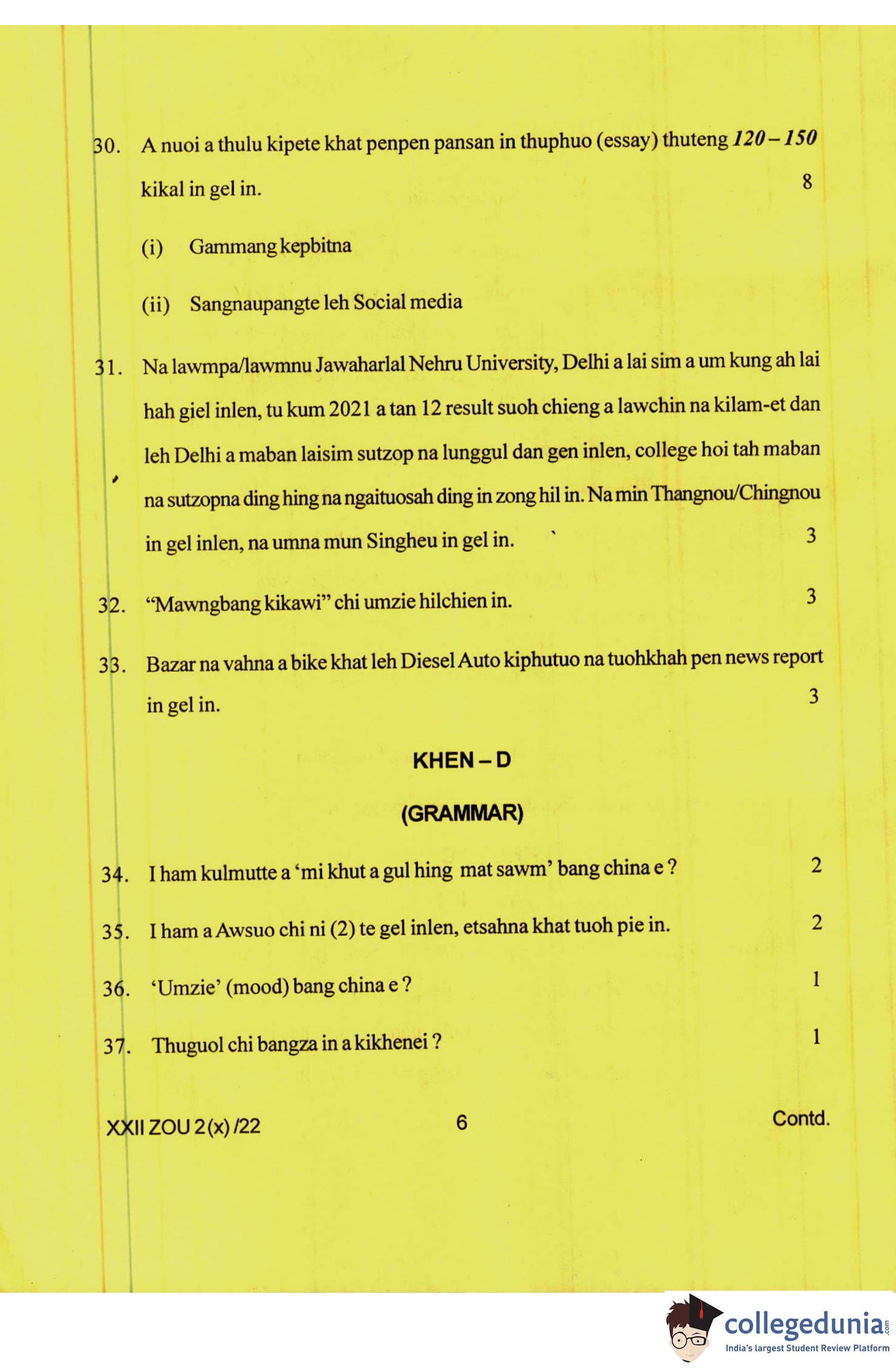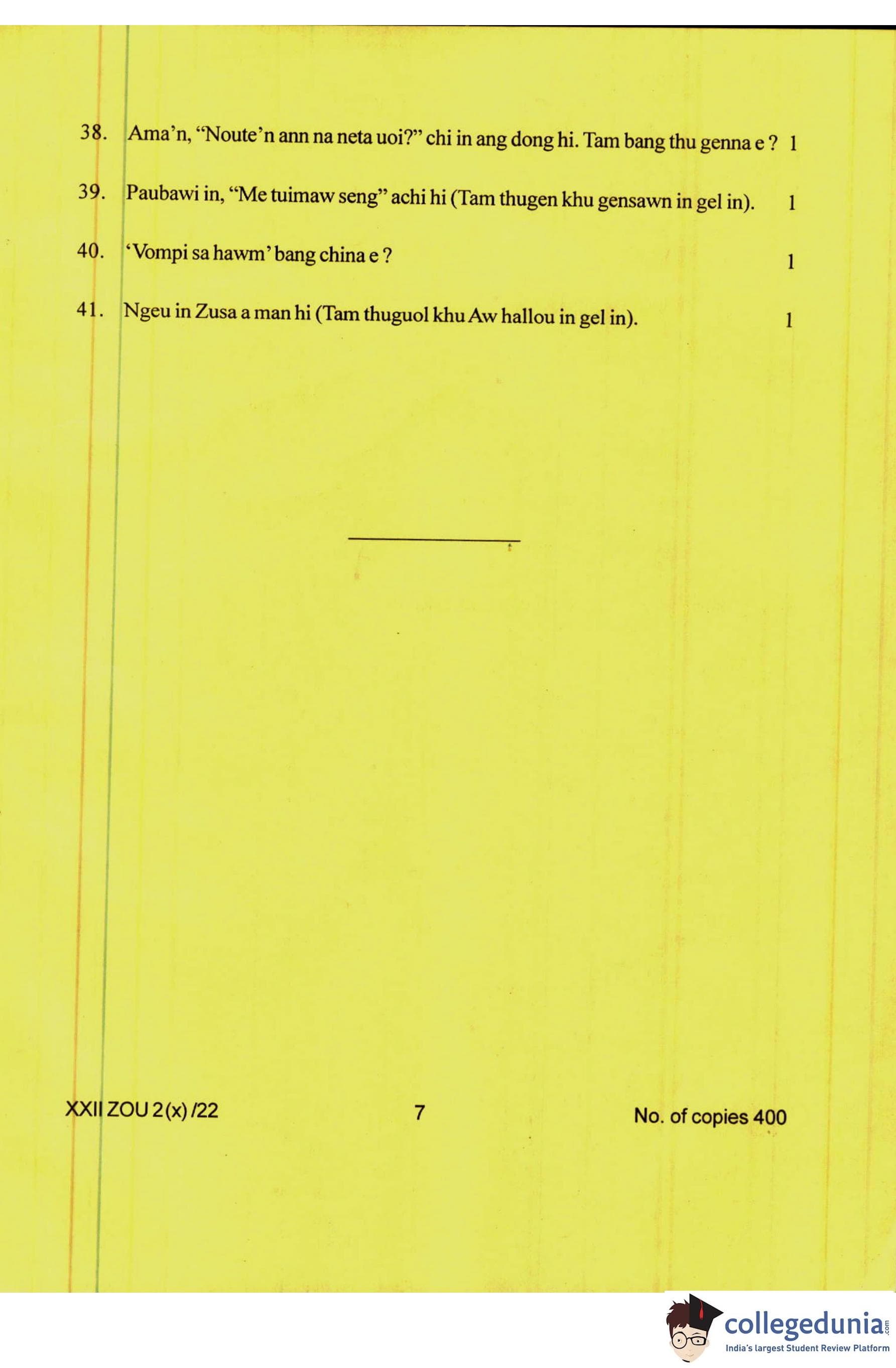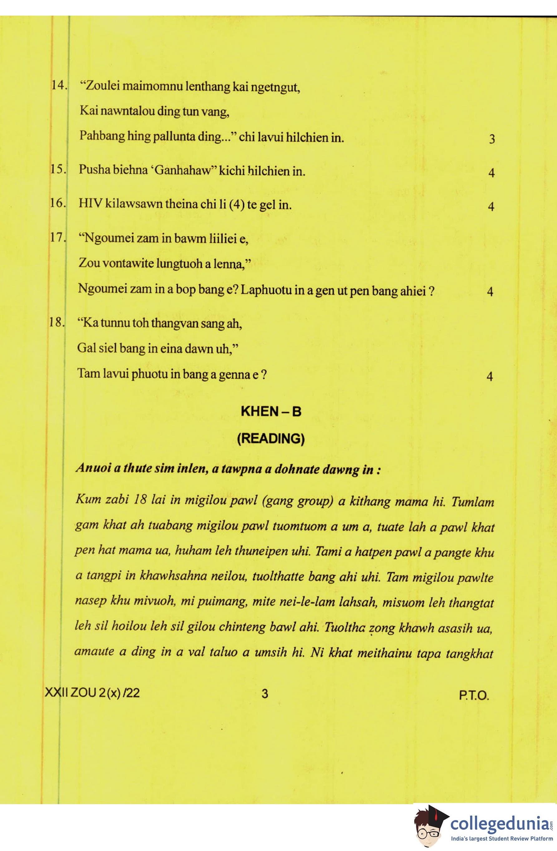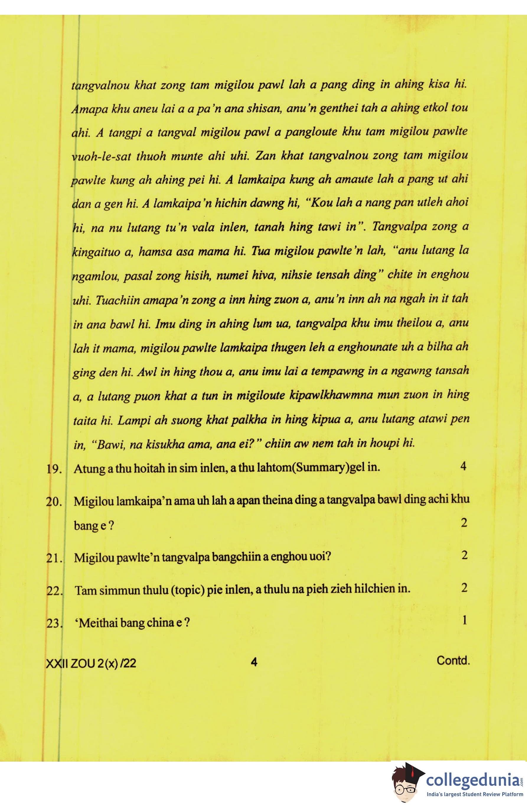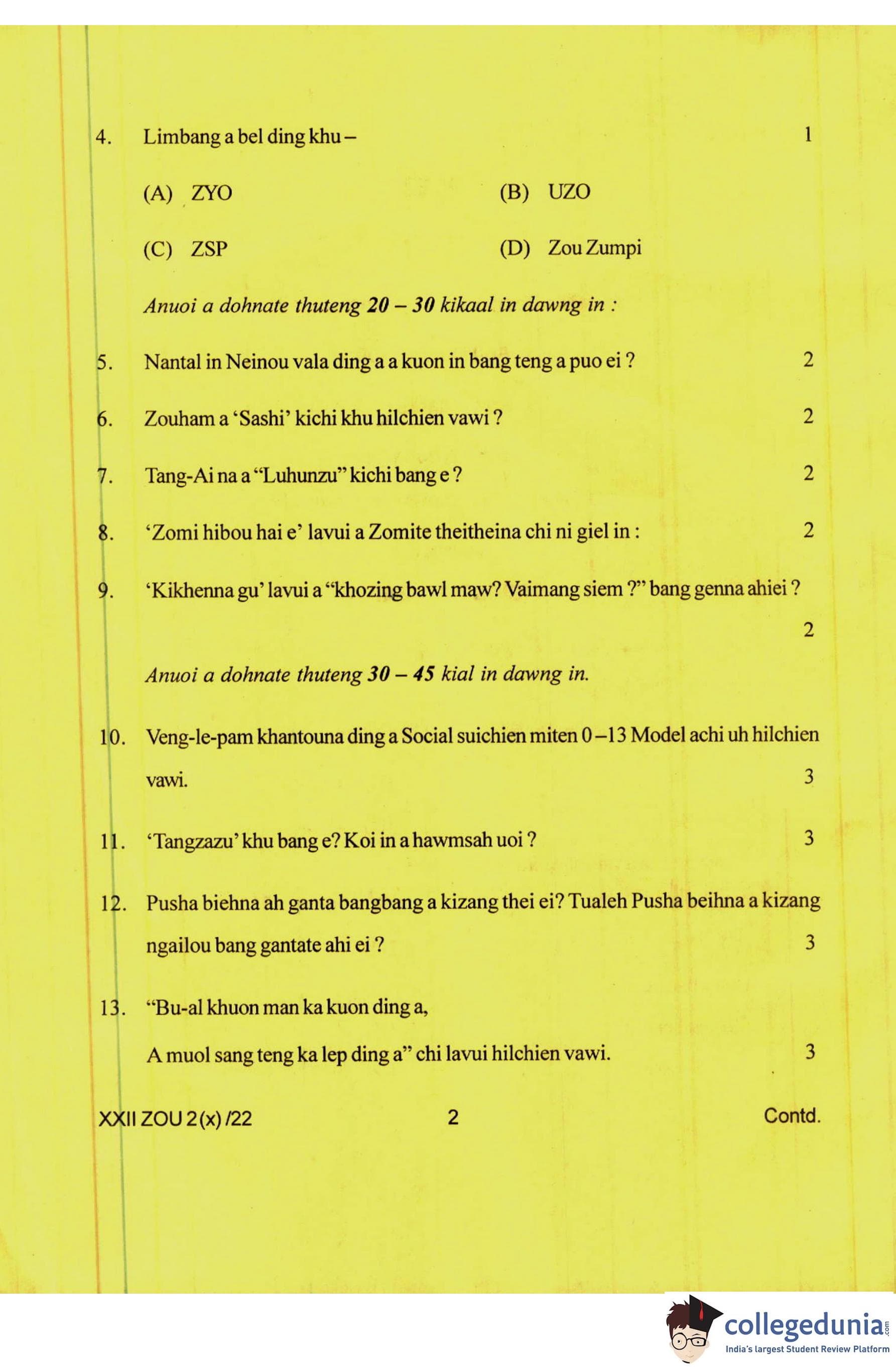Manipur Board Class 12 Zou Question Paper 2022 with Answer Key pdf is available for download here. The exam was conducted by Council Of Higher Secondary Education, Manipur on April 9, 2022. The question paper comprised a total of 41 questions divided among 4 sections.