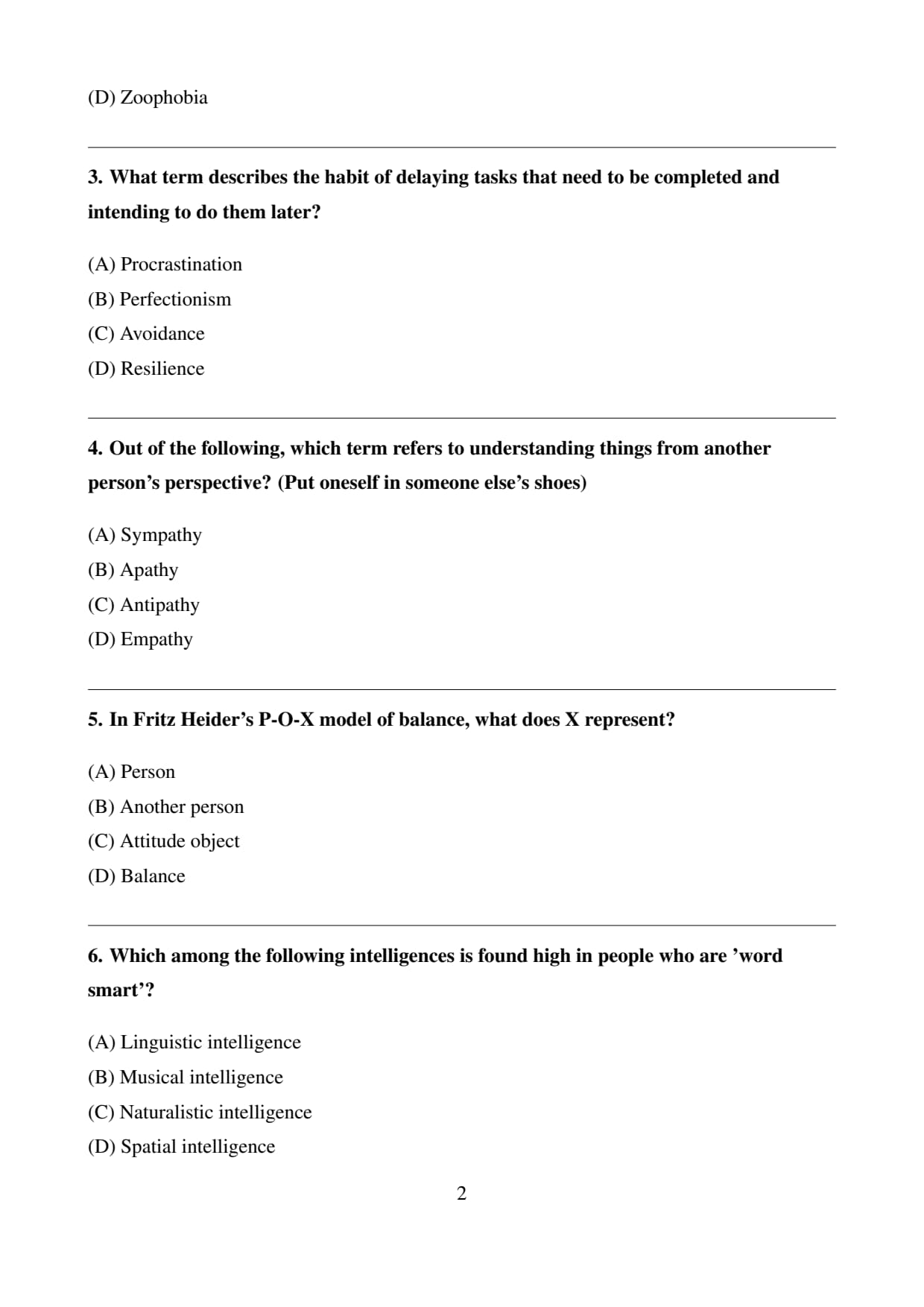 (A) Procrastination: Correct. Procrastination is the habit of putting off tasks until later, often unnecessarily.