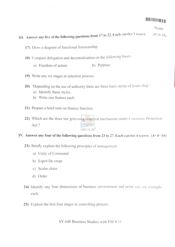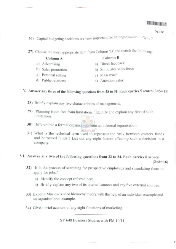 | Kerala Plus Two 2025 Business Studies (SY-648) Model Question Paper | Check Solutions |