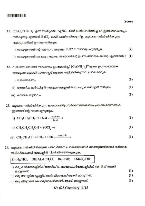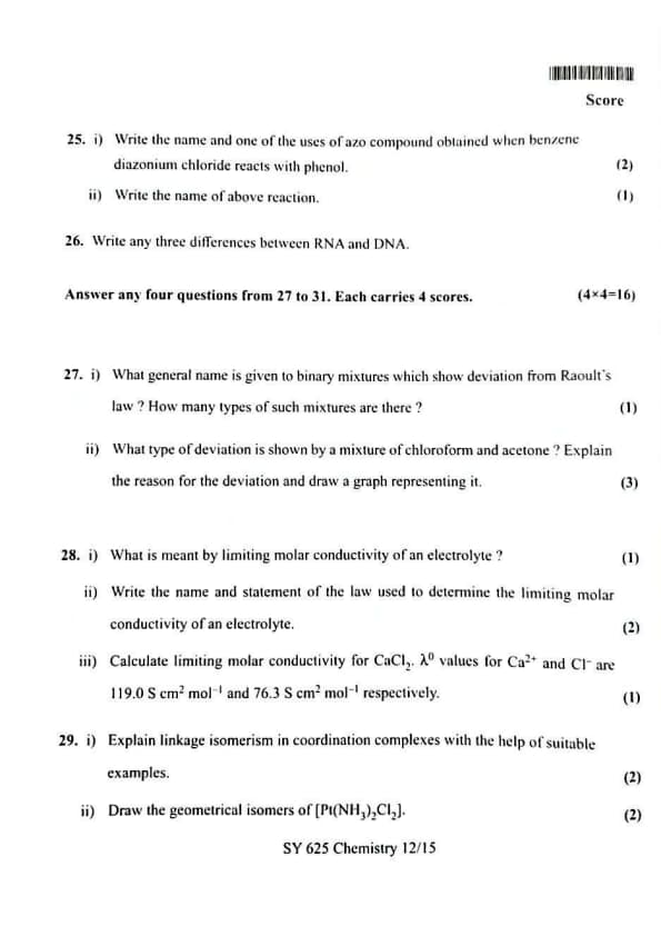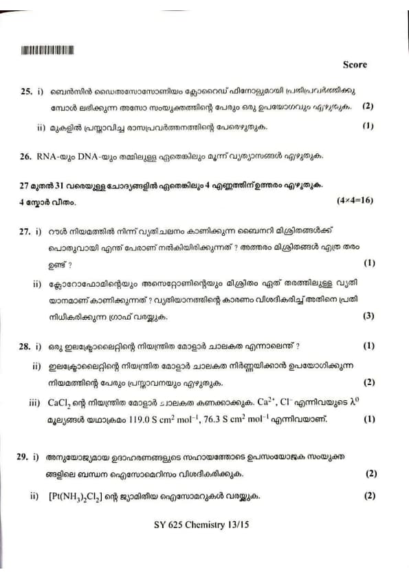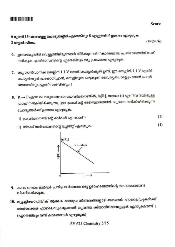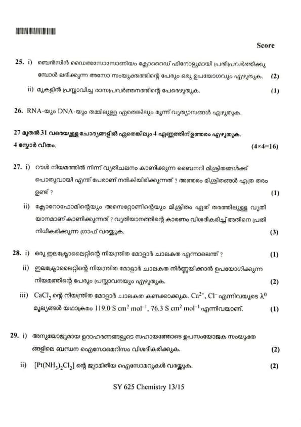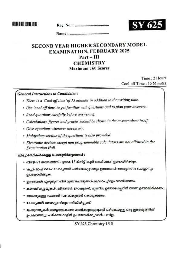 | Kerala Plus Two 2025 Chemistry (SY-625) Model Question Paper | Check Solutions |