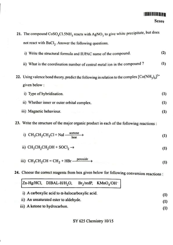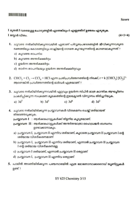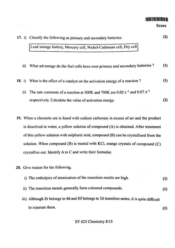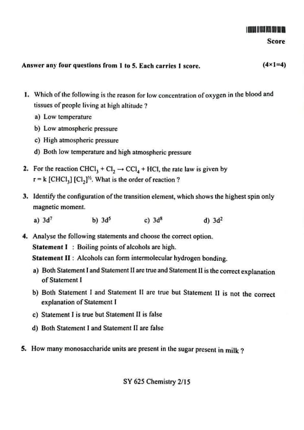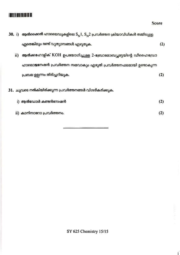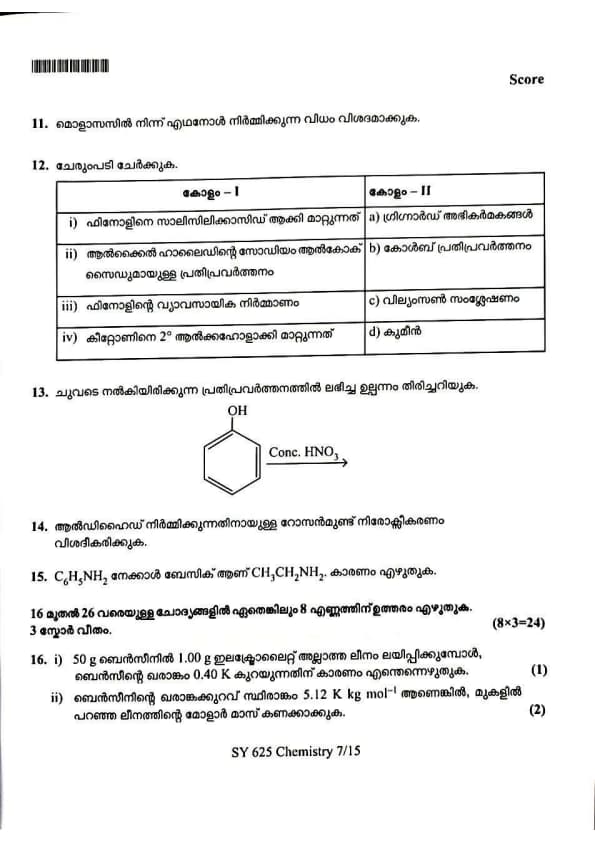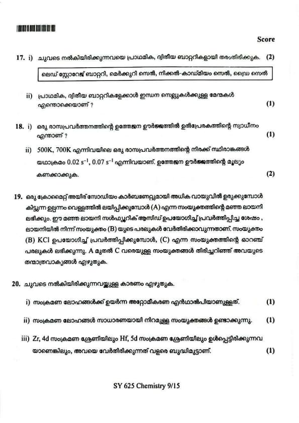 | Kerala Plus Two 2025 Chemistry (SY-625) Model Question Paper | Check Solutions |