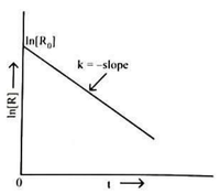 The graph shows a straight line when \(\ln[R]\) is plotted against time \(t\). The slope of the straight line is negative and is equal to \(-k\), where \(k\) is the rate constant.