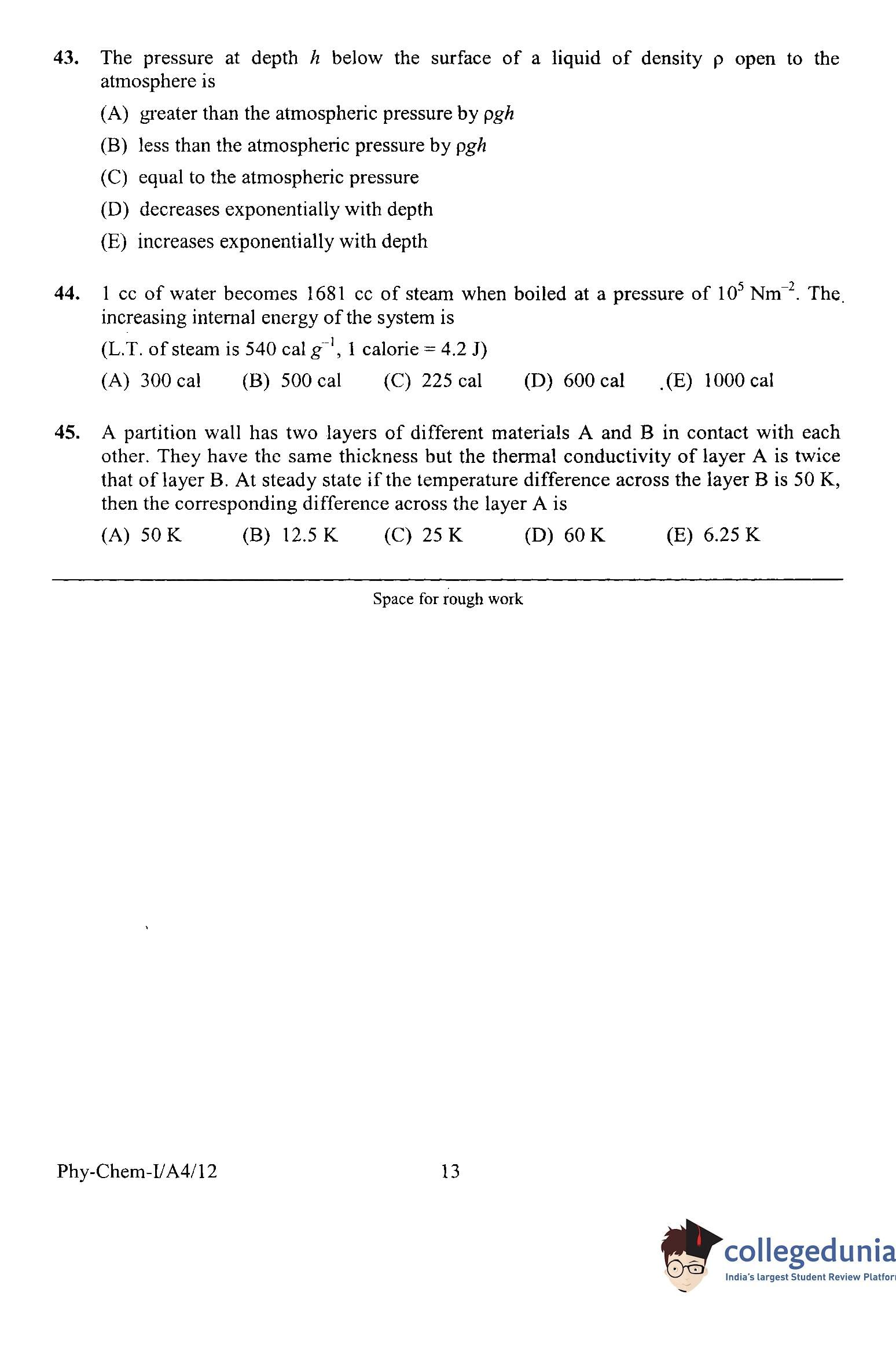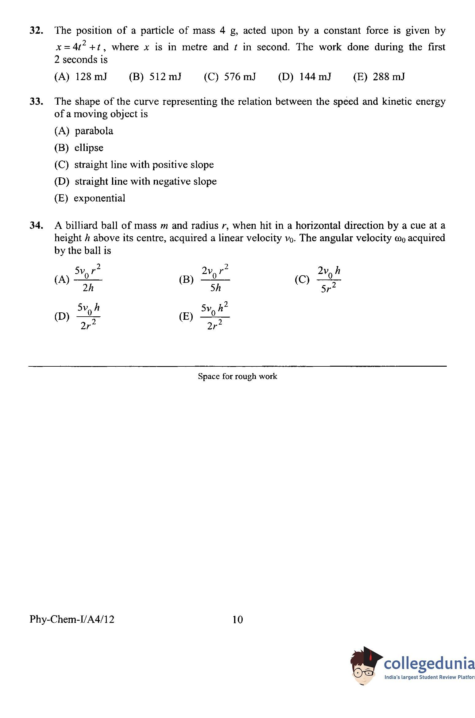KEAM 2012 Physics and Chemistry Question Paper with Answer Key PDF