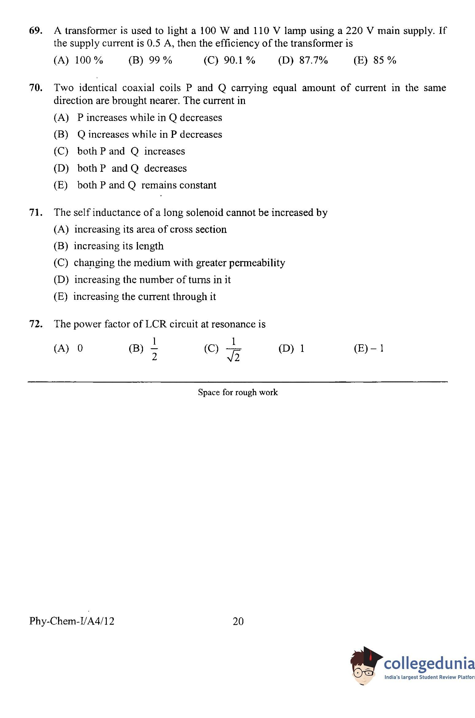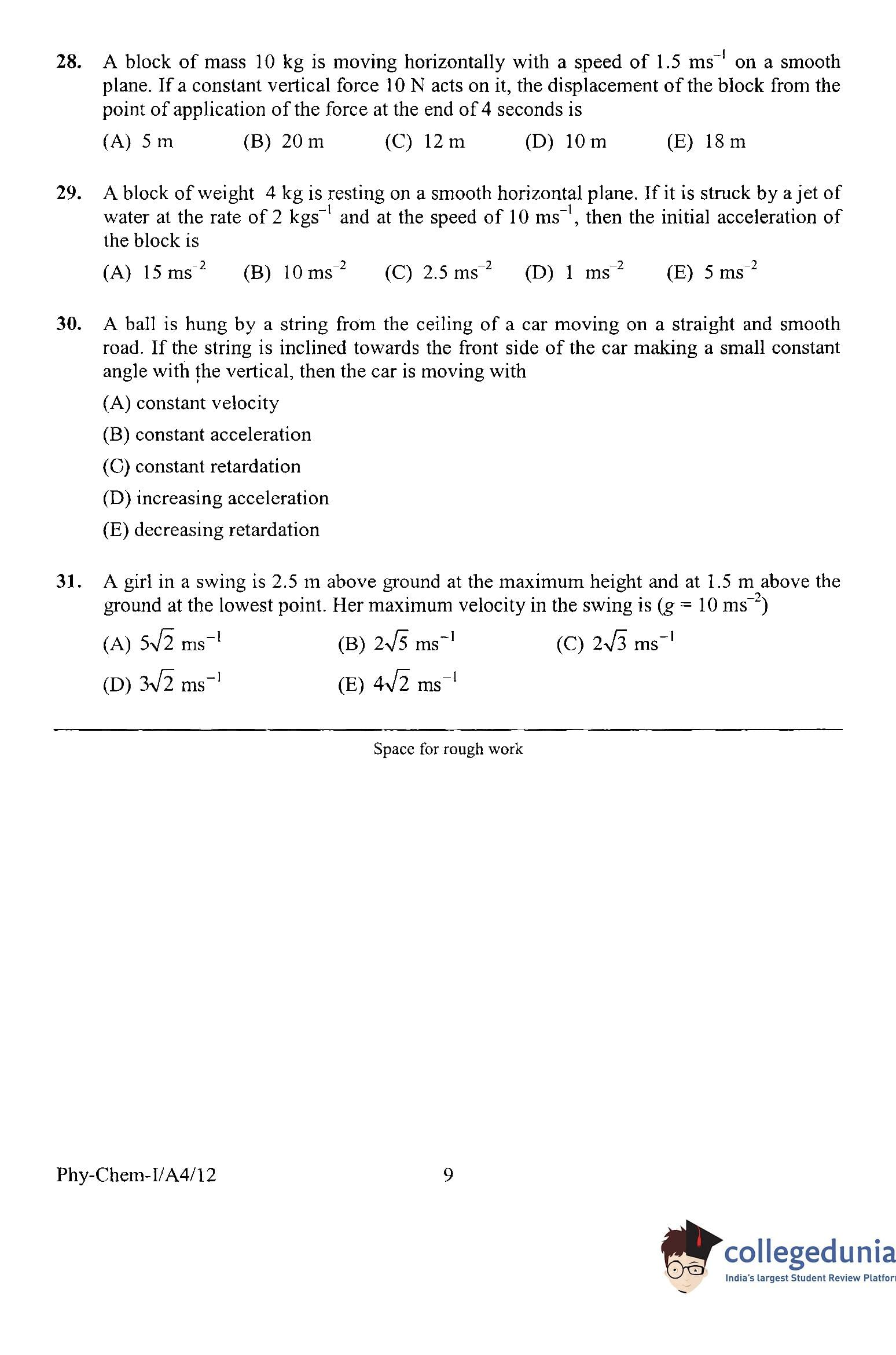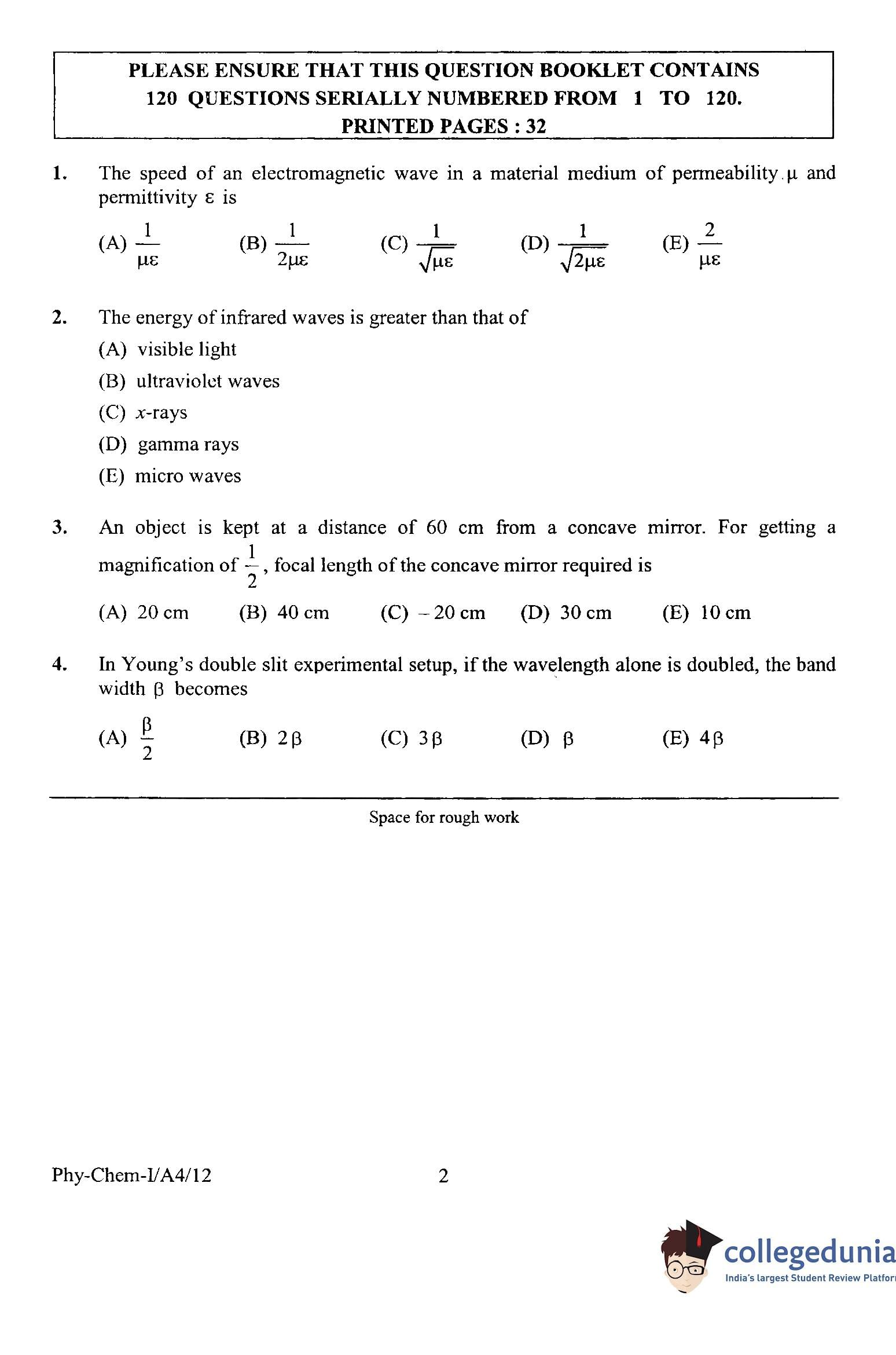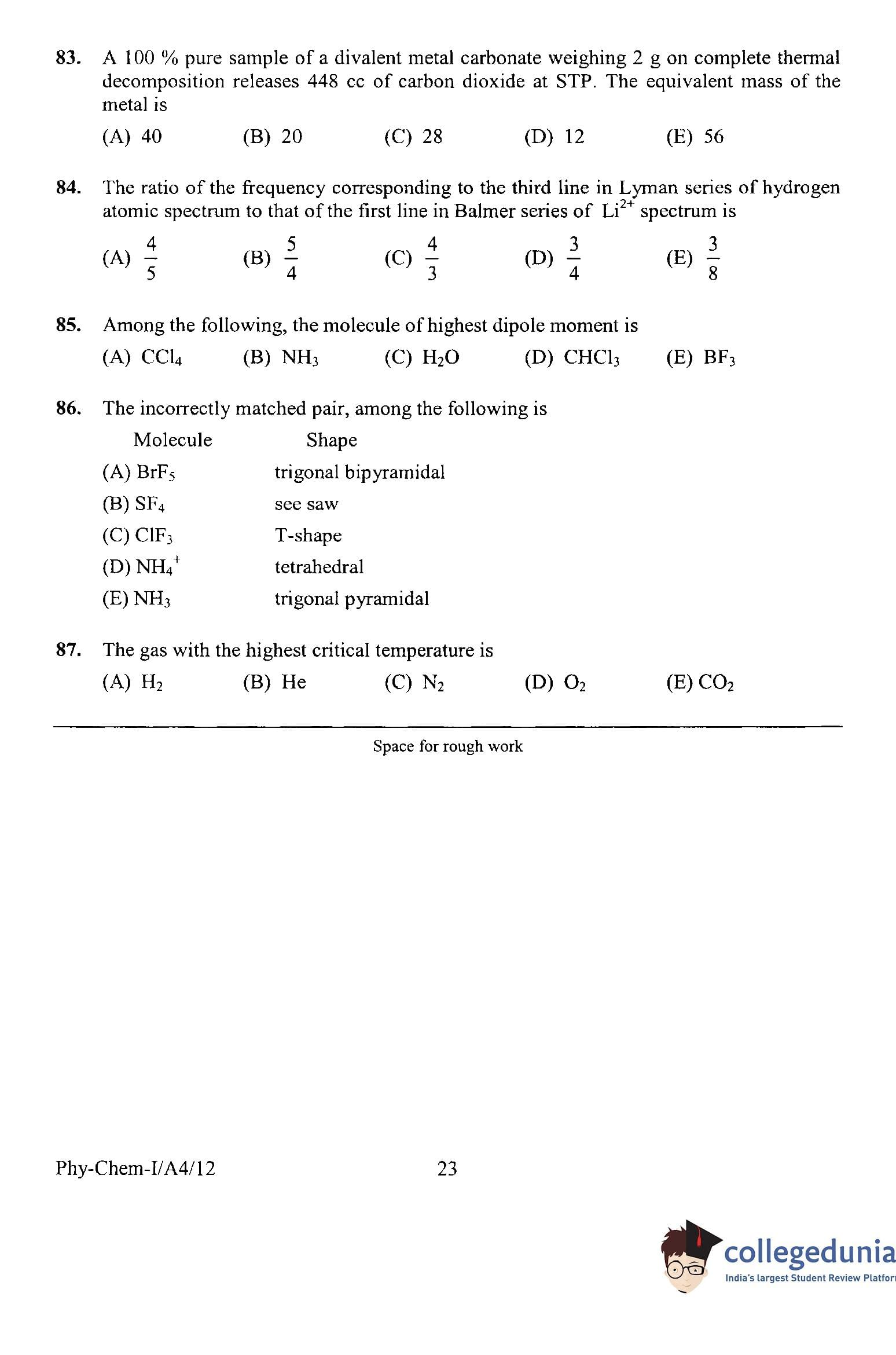 KEAM 2012 Physics and Chemistry Question Paper with Answer Key pdf is available for download. The exam was conducted by Commissioner of Entrance Examination (CEE) on April 23, 2012 in the Morning Session 10 AM to 12:30 PM. The question paper comprised a total of 120 questions divided among 2 sections.