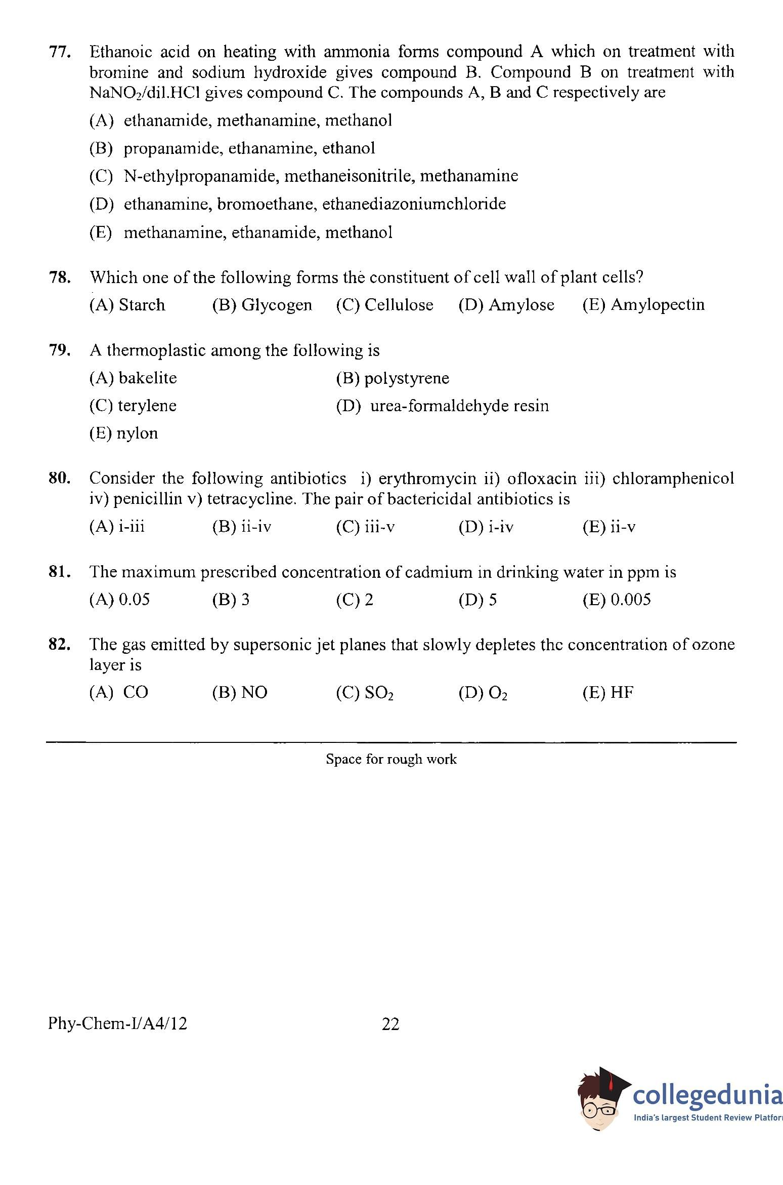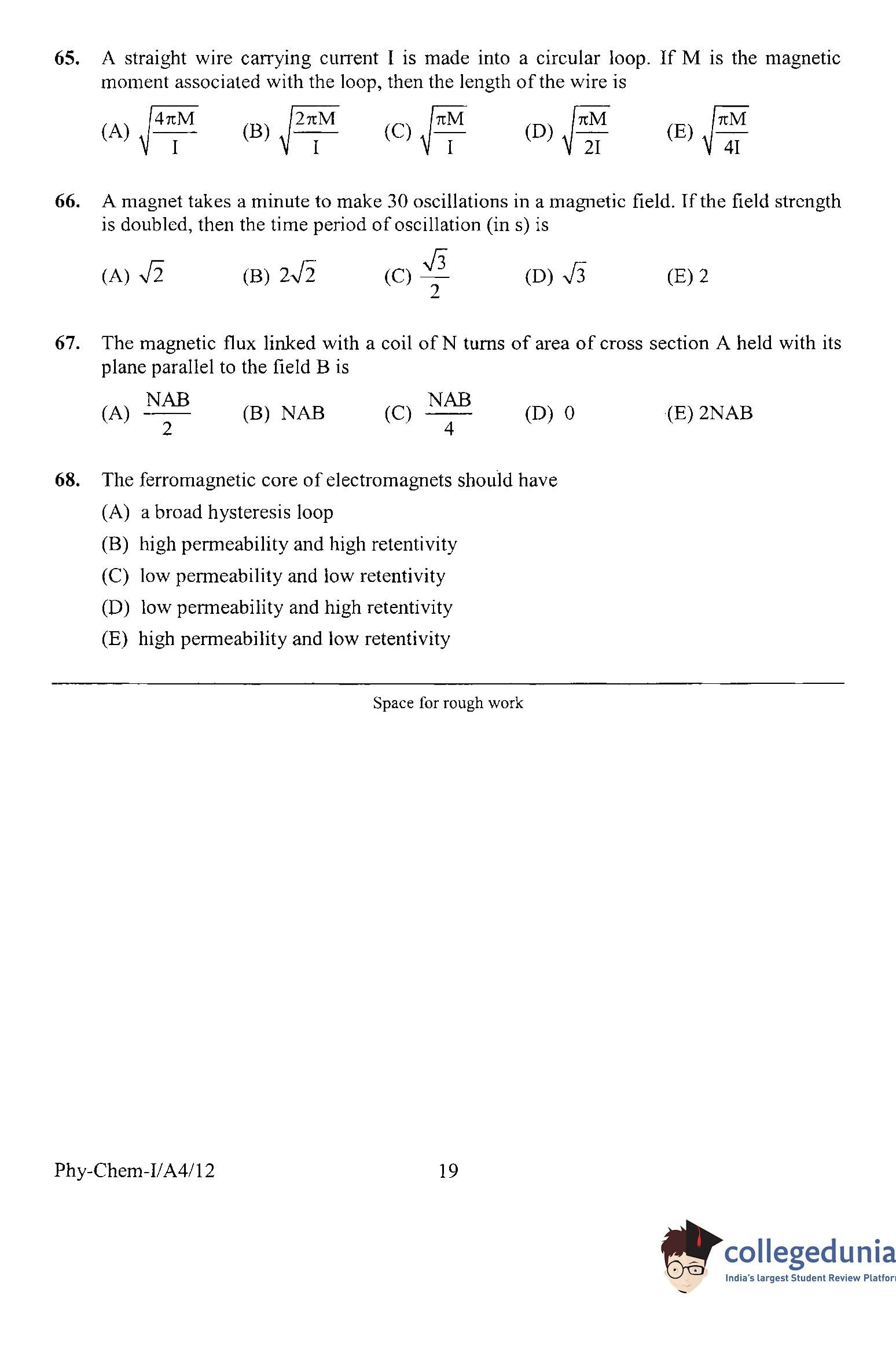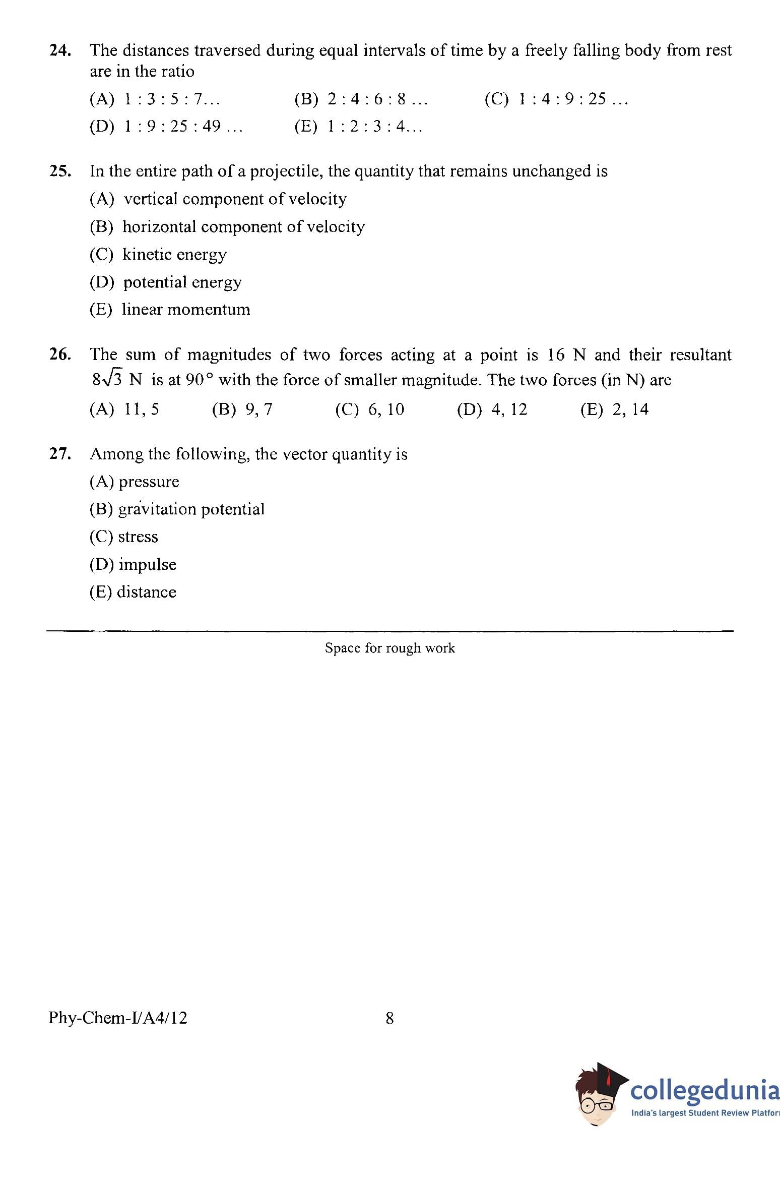KEAM 2012 Physics and Chemistry Question Paper with Answer Key pdf is available for download. The exam was conducted by Commissioner of Entrance Examination (CEE) on April 23, 2012 in the Morning Session 10 AM to 12:30 PM. The question paper comprised a total of 120 questions divided among 2 sections.