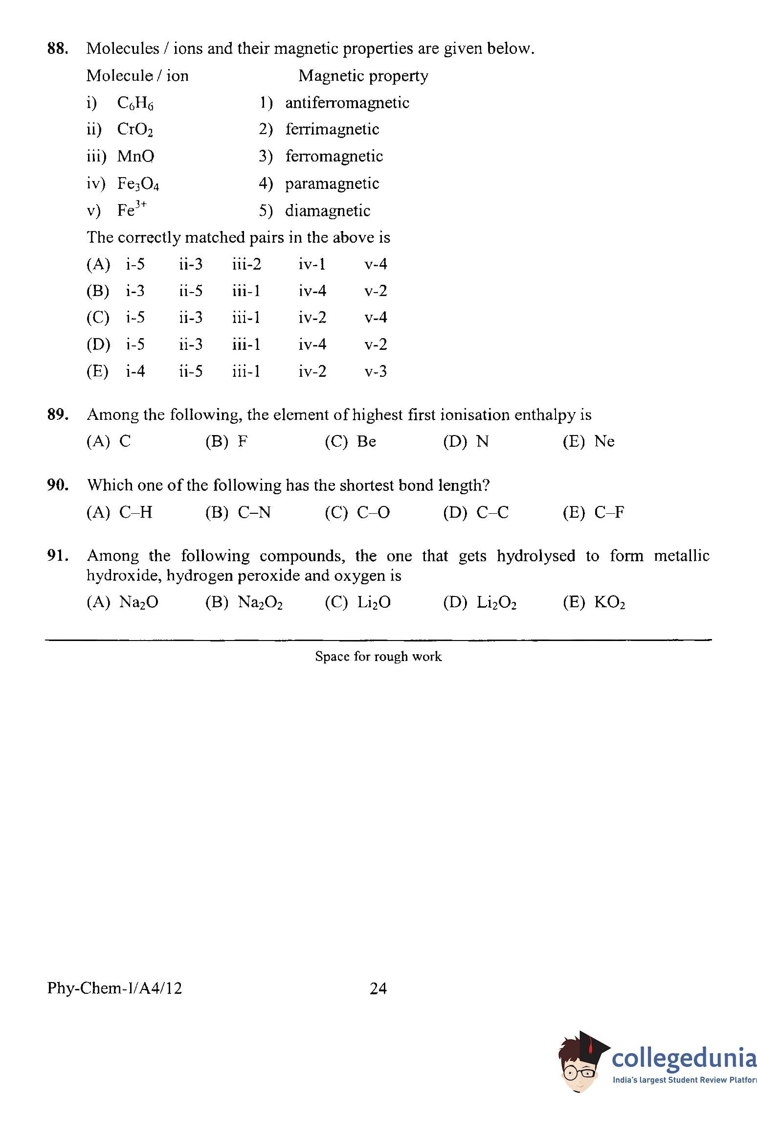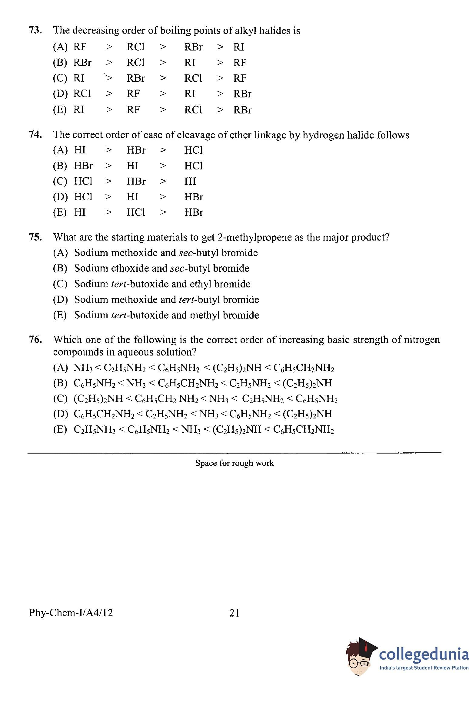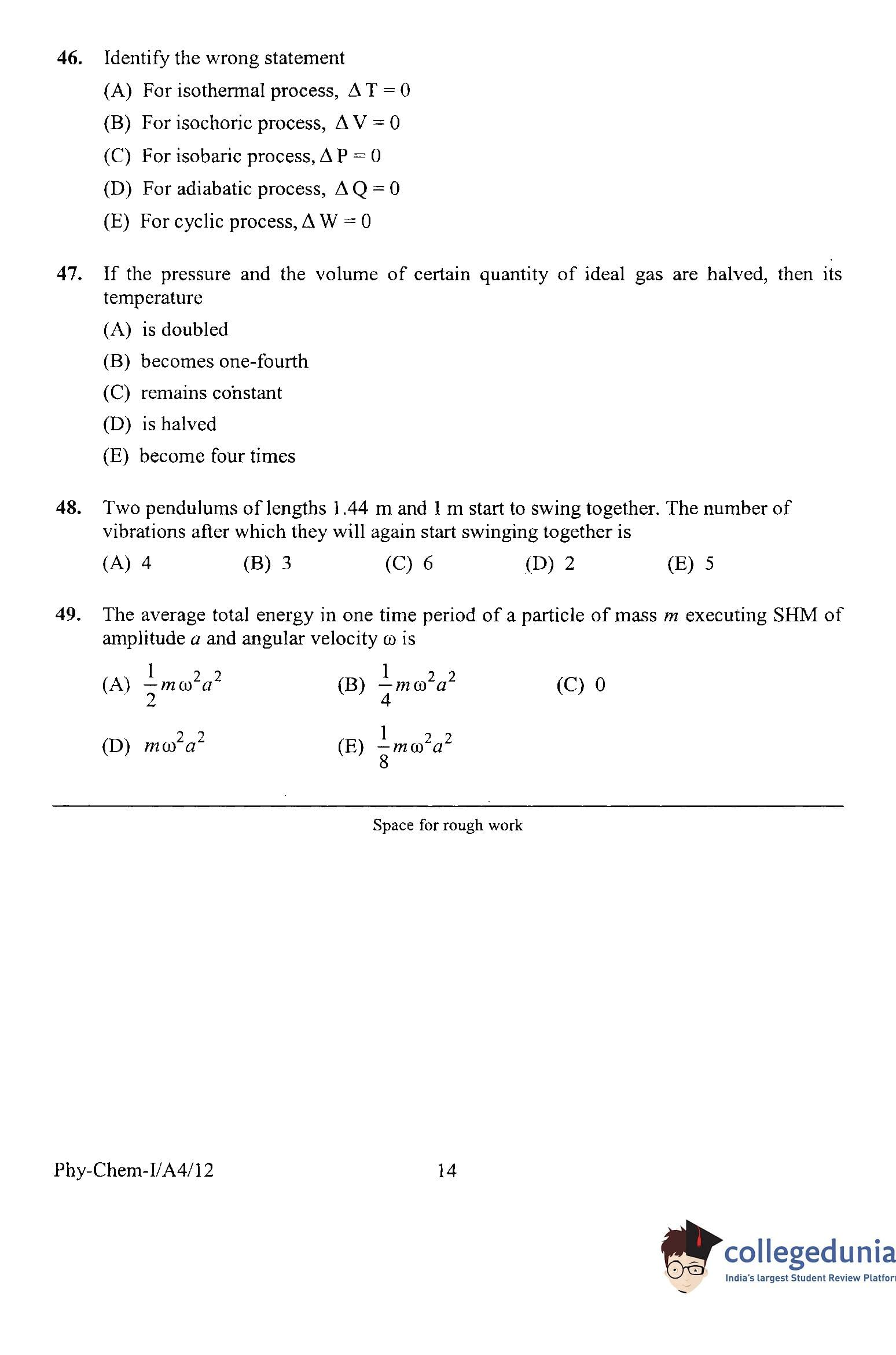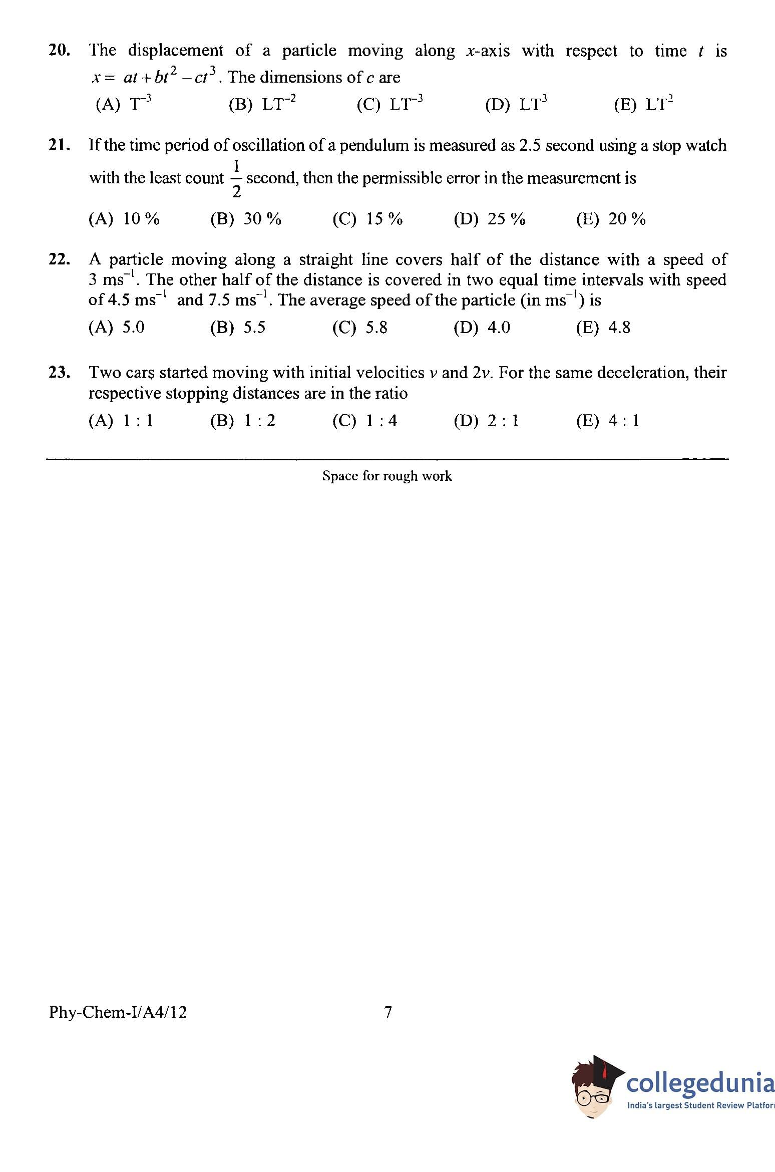 KEAM 2012 Physics and Chemistry Question Paper with Answer Key pdf is available for download. The exam was conducted by Commissioner of Entrance Examination (CEE) on April 23, 2012 in the Morning Session 10 AM to 12:30 PM. The question paper comprised a total of 120 questions divided among 2 sections.