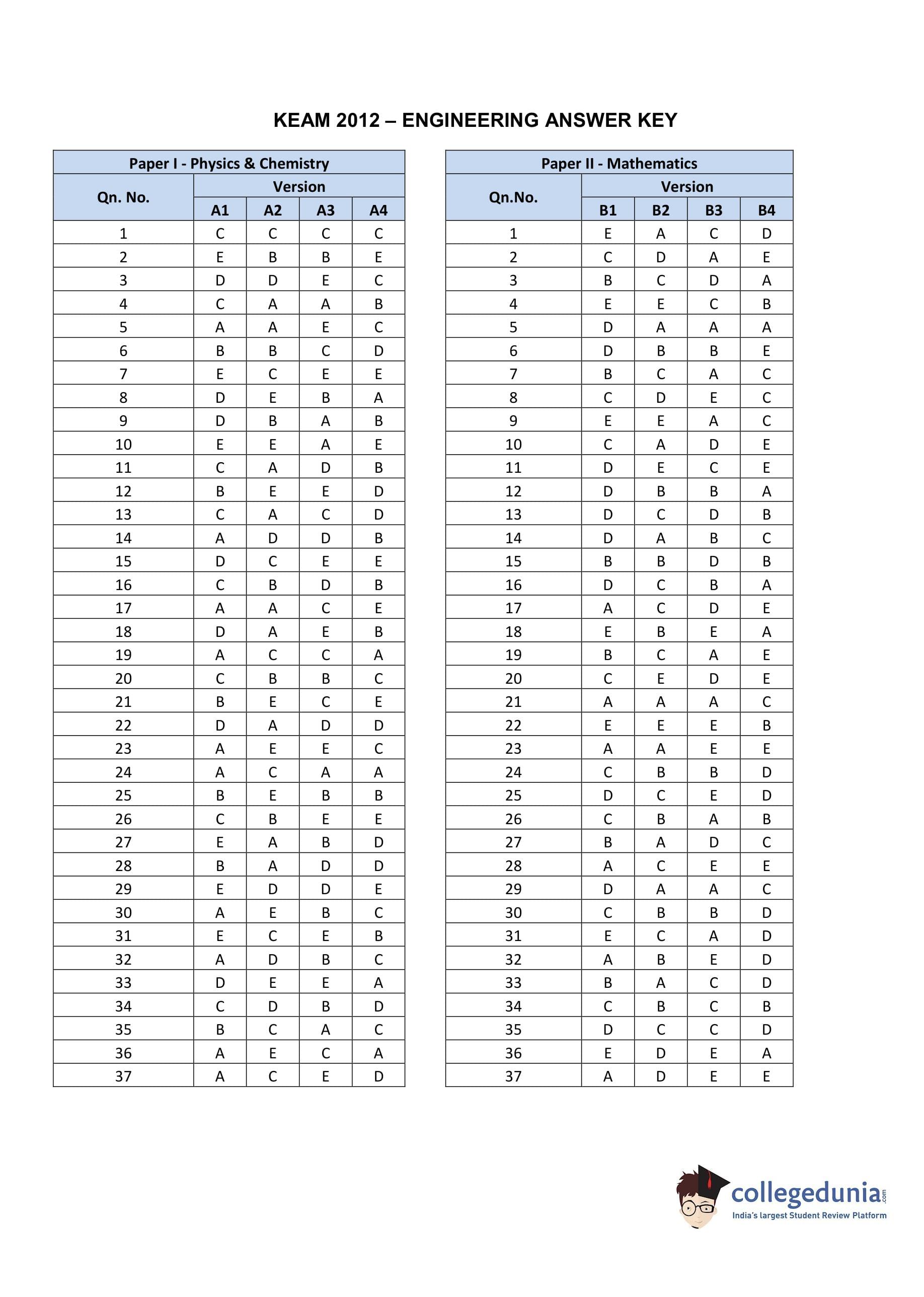 | KEAM 2012 Physics and Chemistry Question Paper PDF | KEAM 2012 Physics and Chemistry Answer Key PDF |