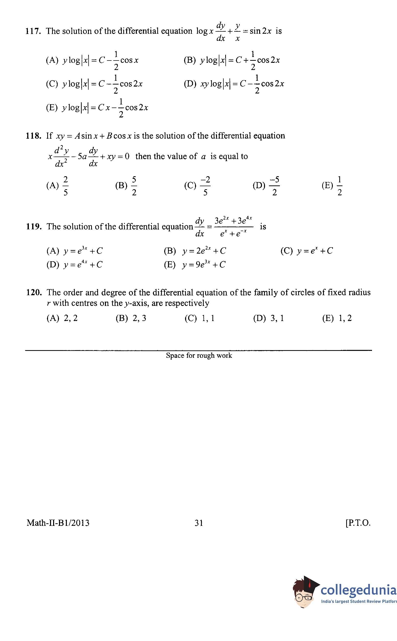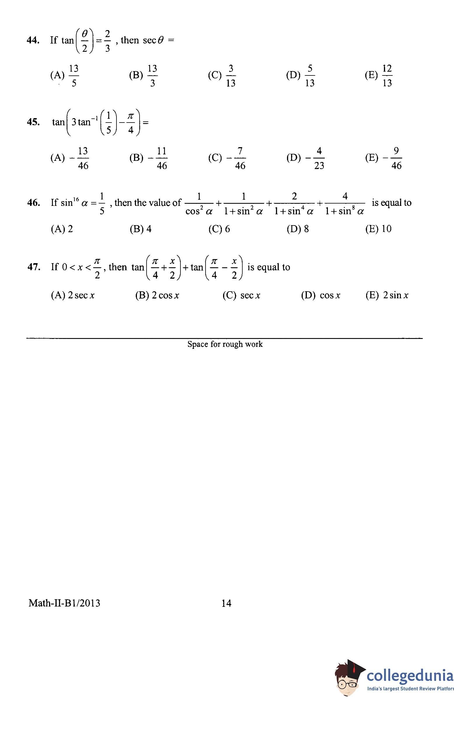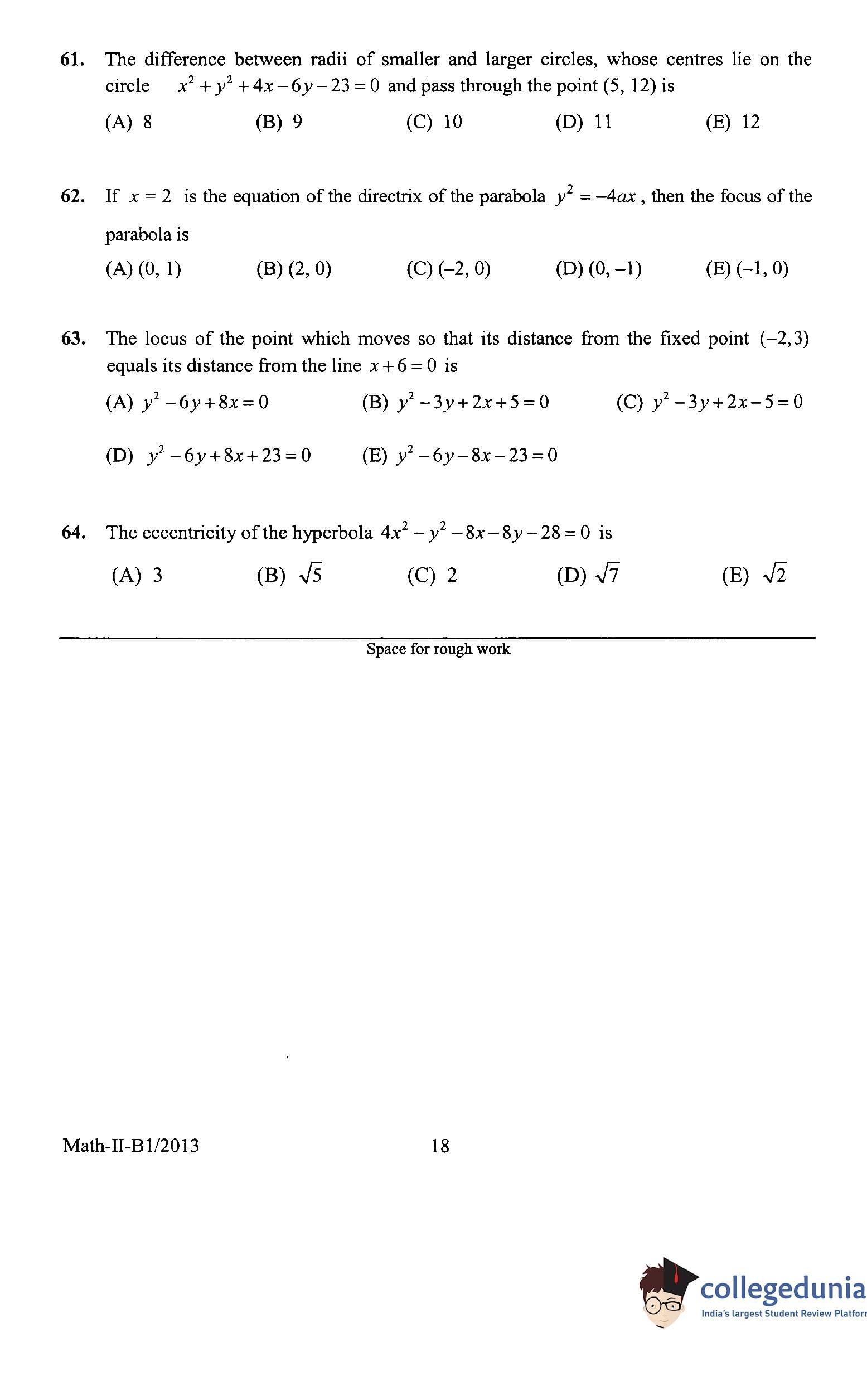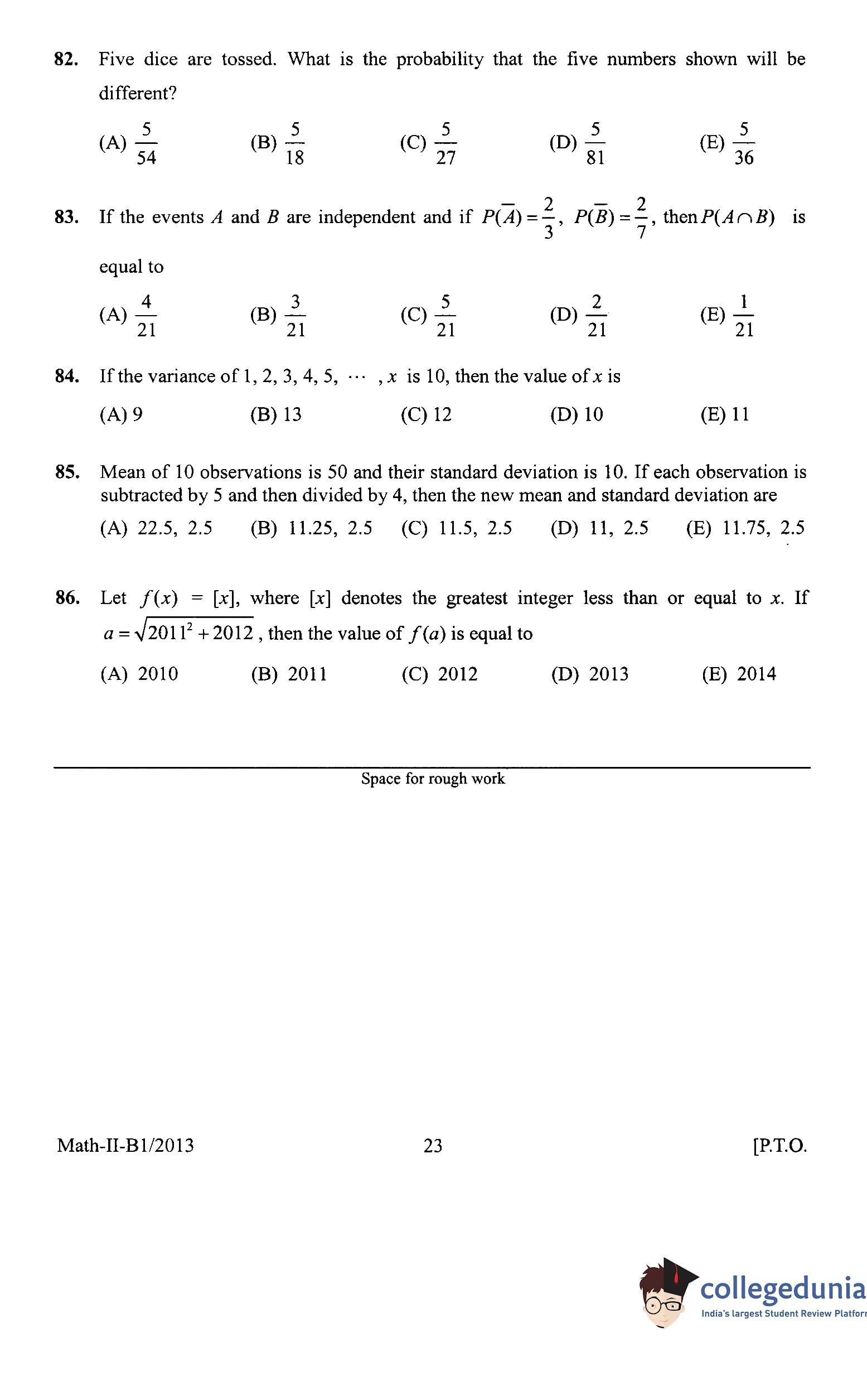 KEAM 2013 Mathematics Question Paper with Answer Key pdf is available for download. The exam was conducted by Commissioner of Entrance Examination (CEE) on April 23, 2013 in the Morning Session 10 AM to 12:30 PM. The question paper comprised a total of 120 questions.