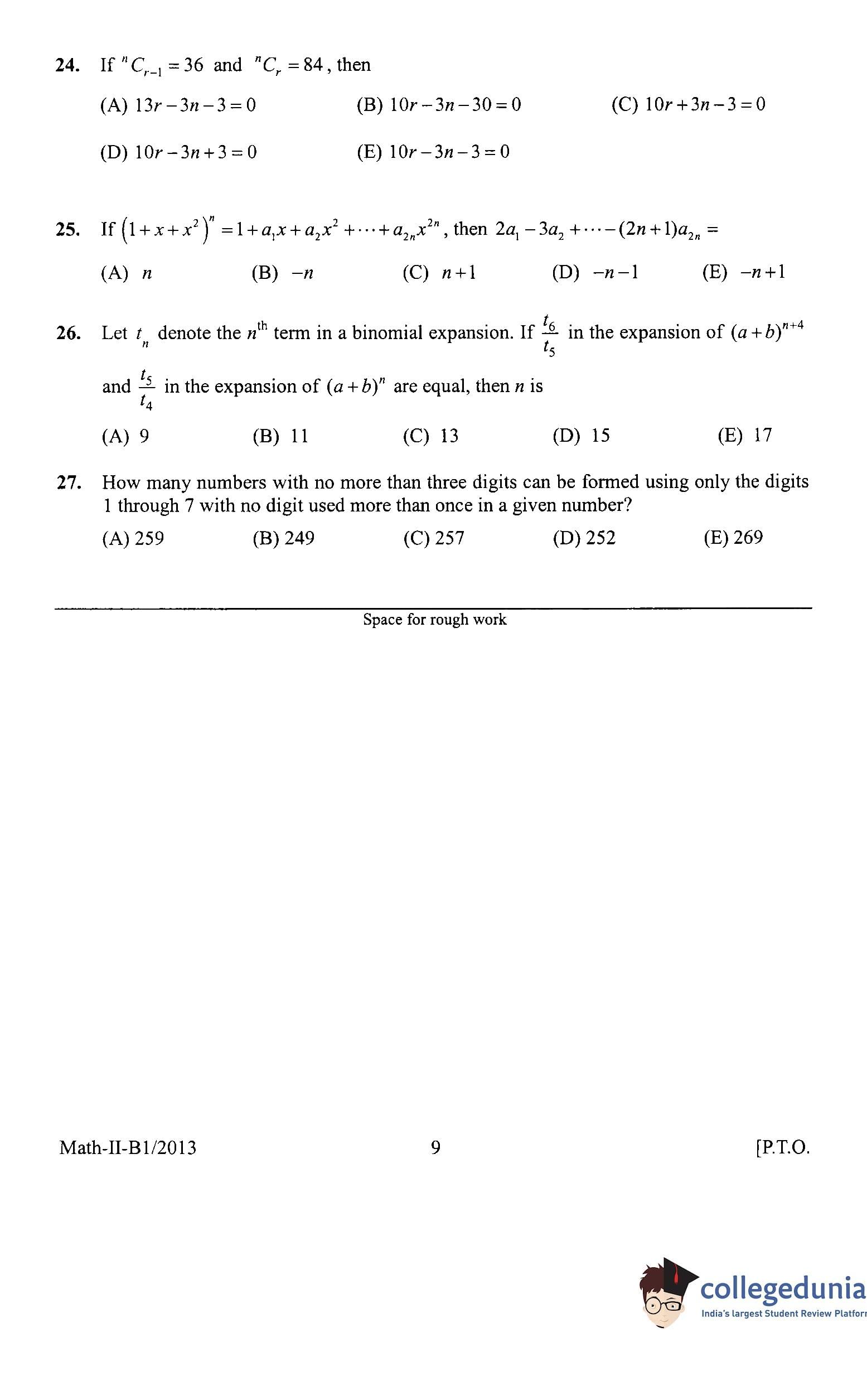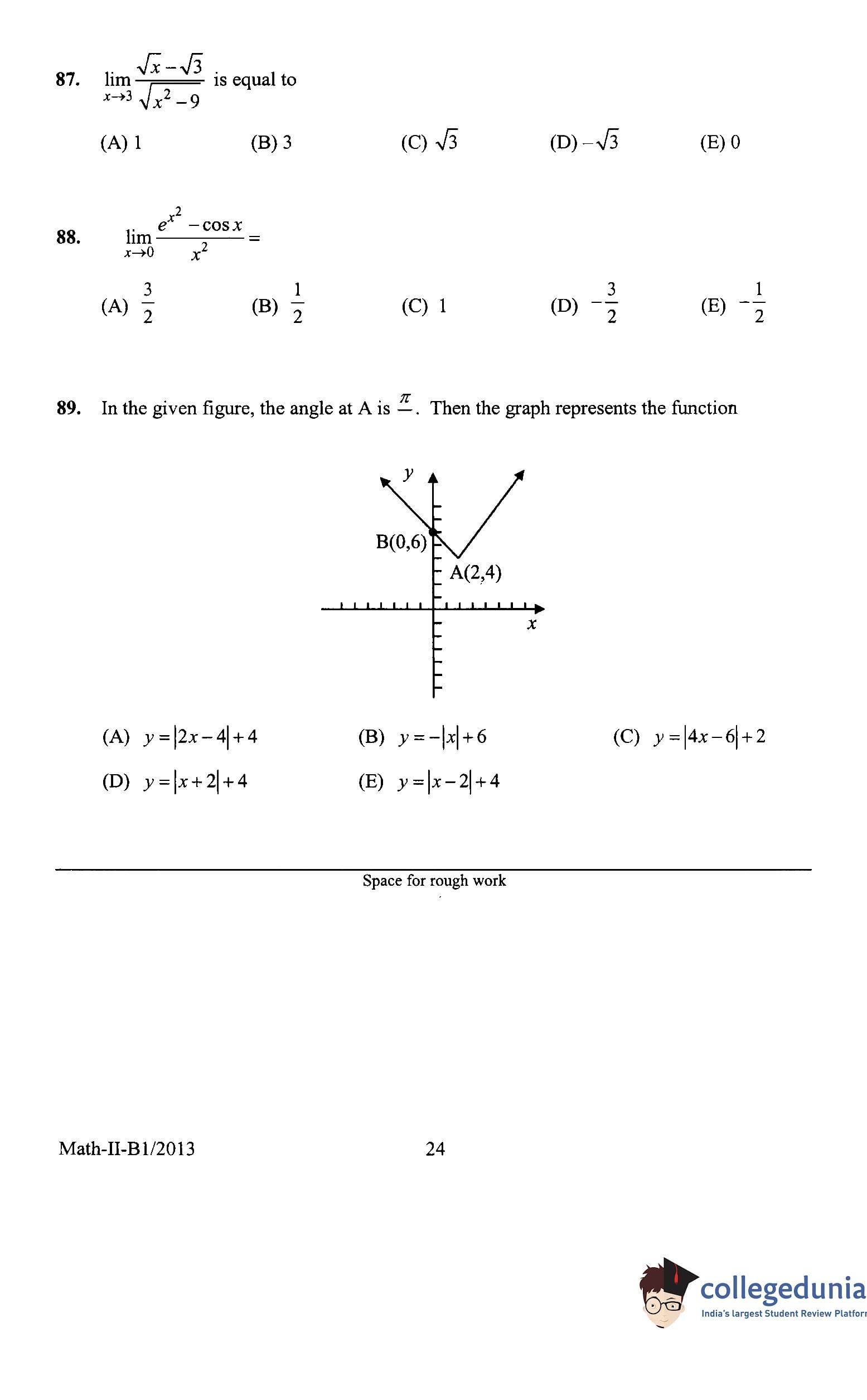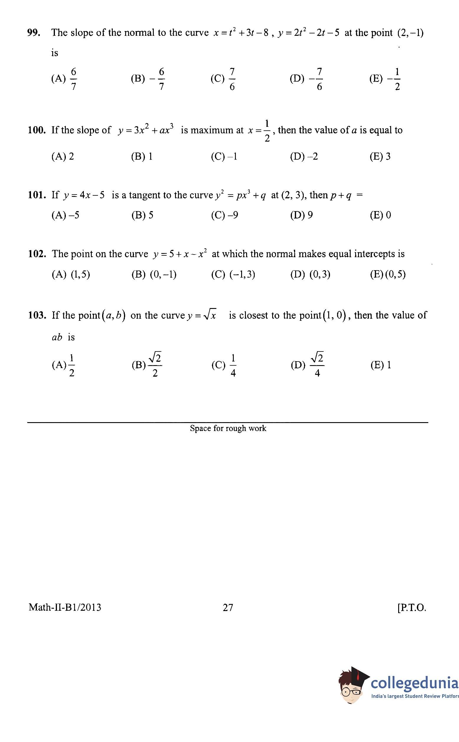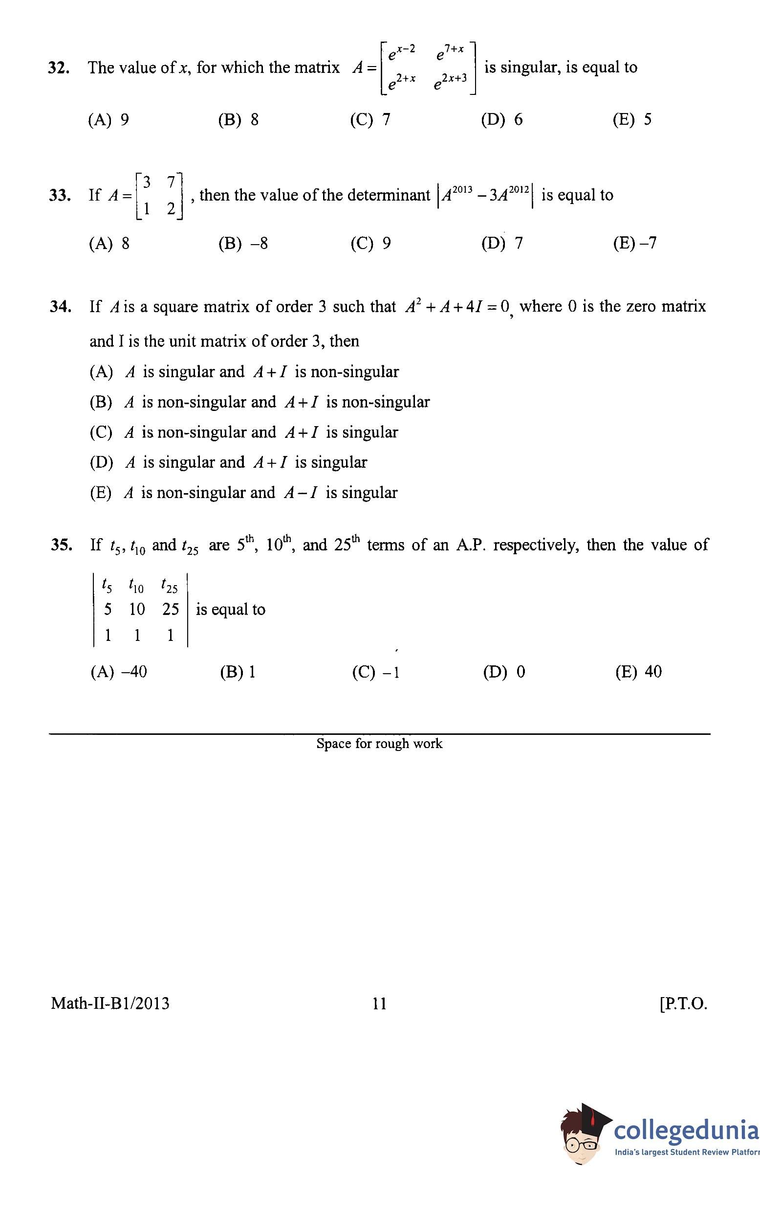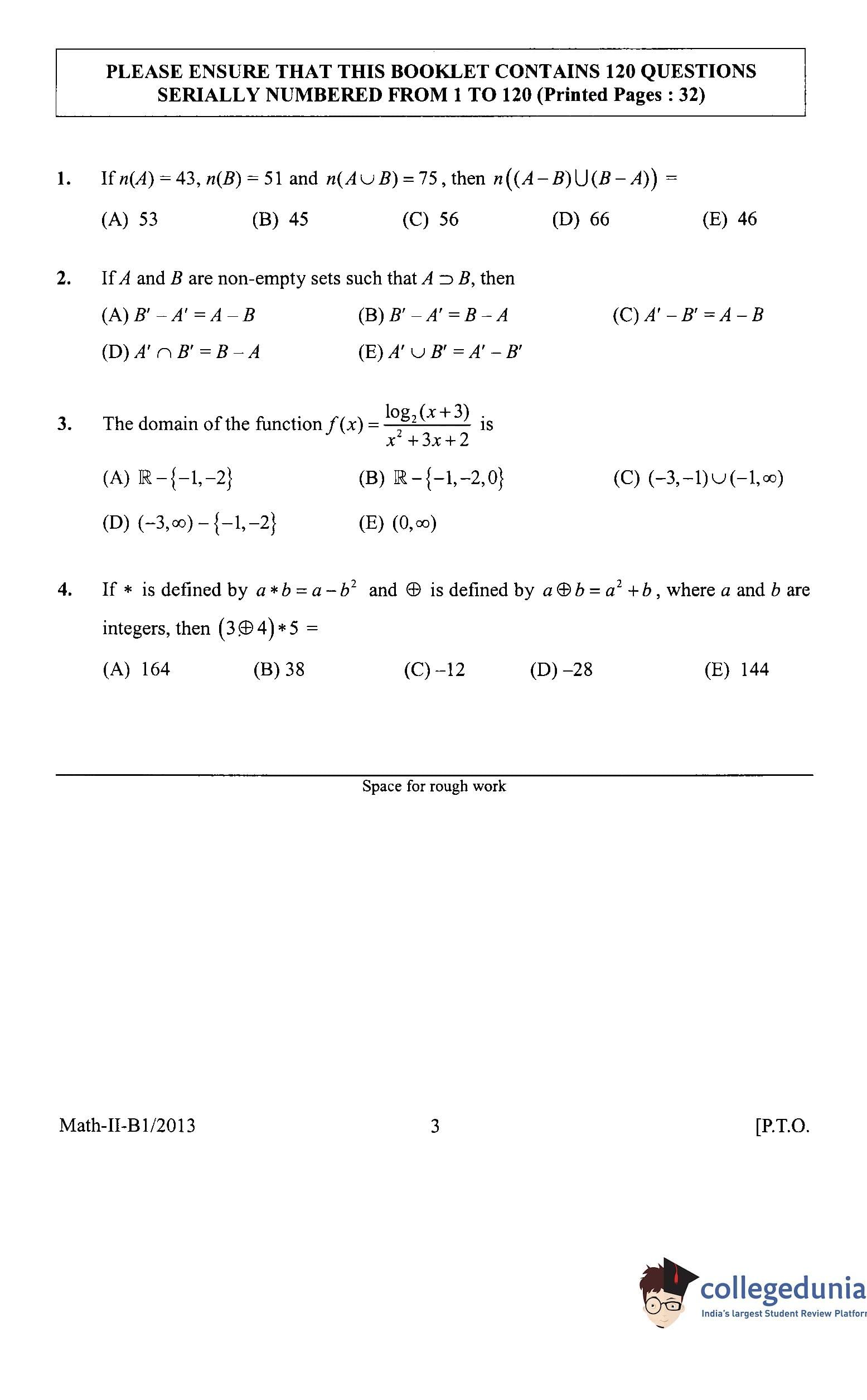 KEAM 2013 Mathematics Question Paper with Answer Key pdf is available for download. The exam was conducted by Commissioner of Entrance Examination (CEE) on April 23, 2013 in the Morning Session 10 AM to 12:30 PM. The question paper comprised a total of 120 questions.