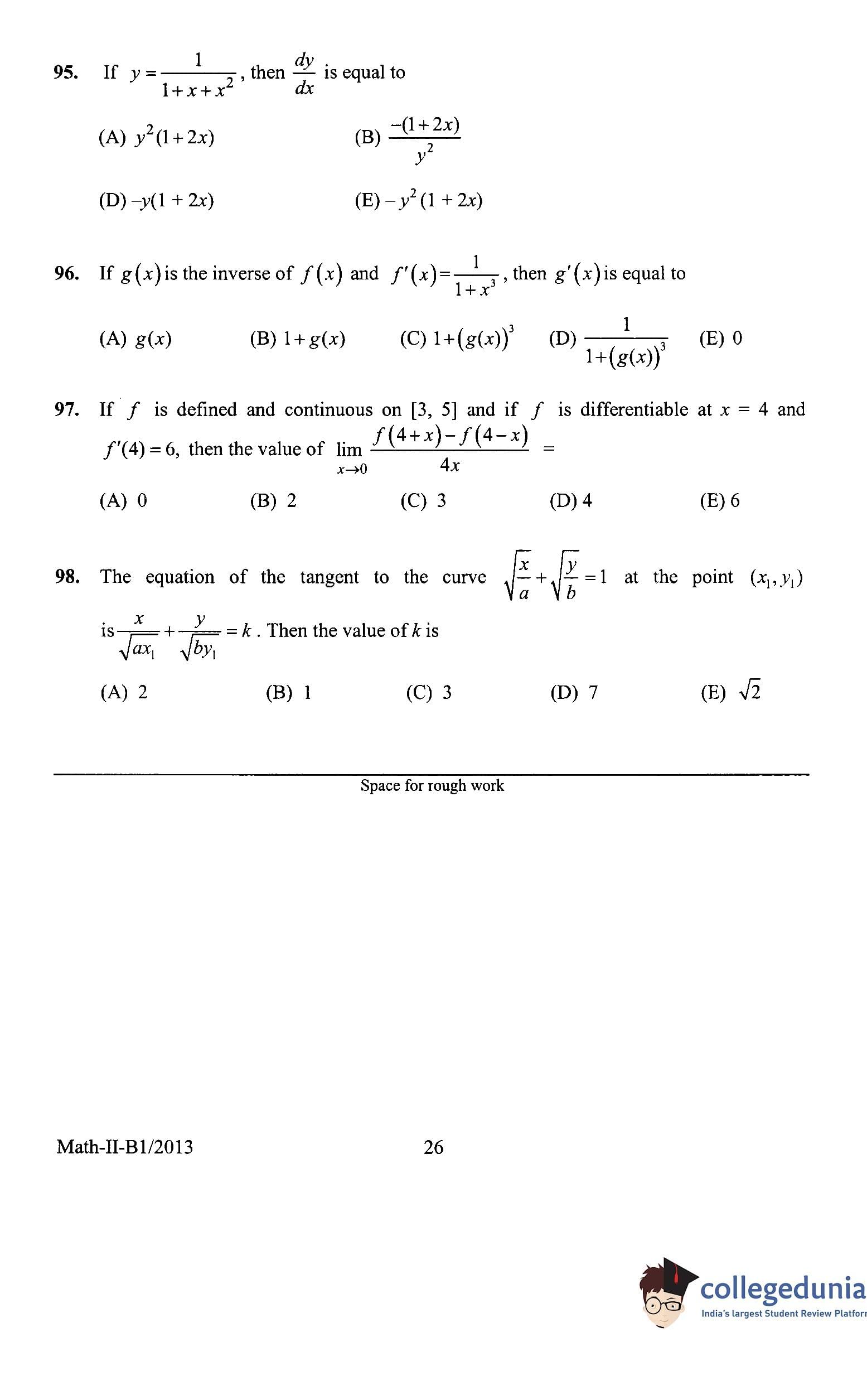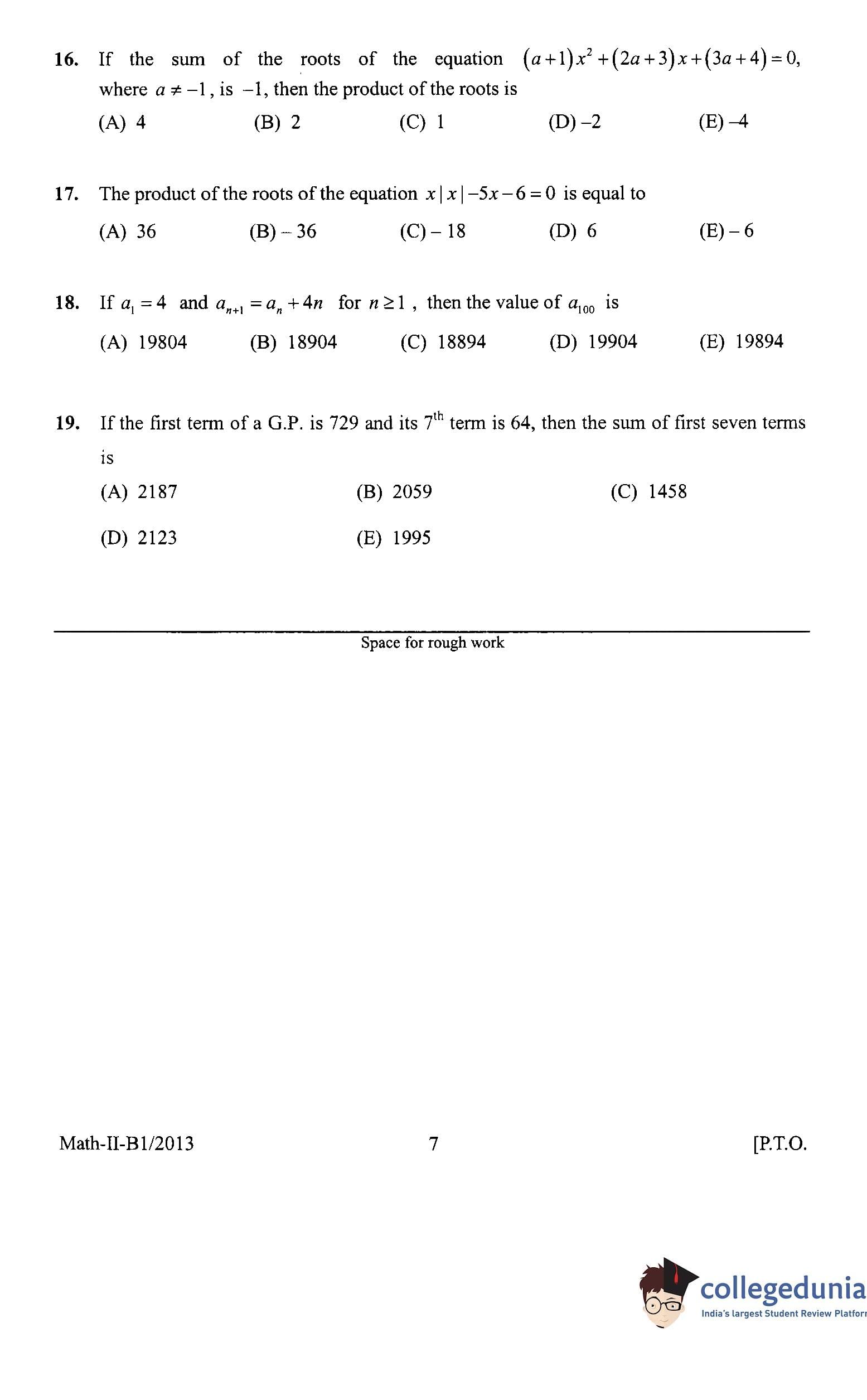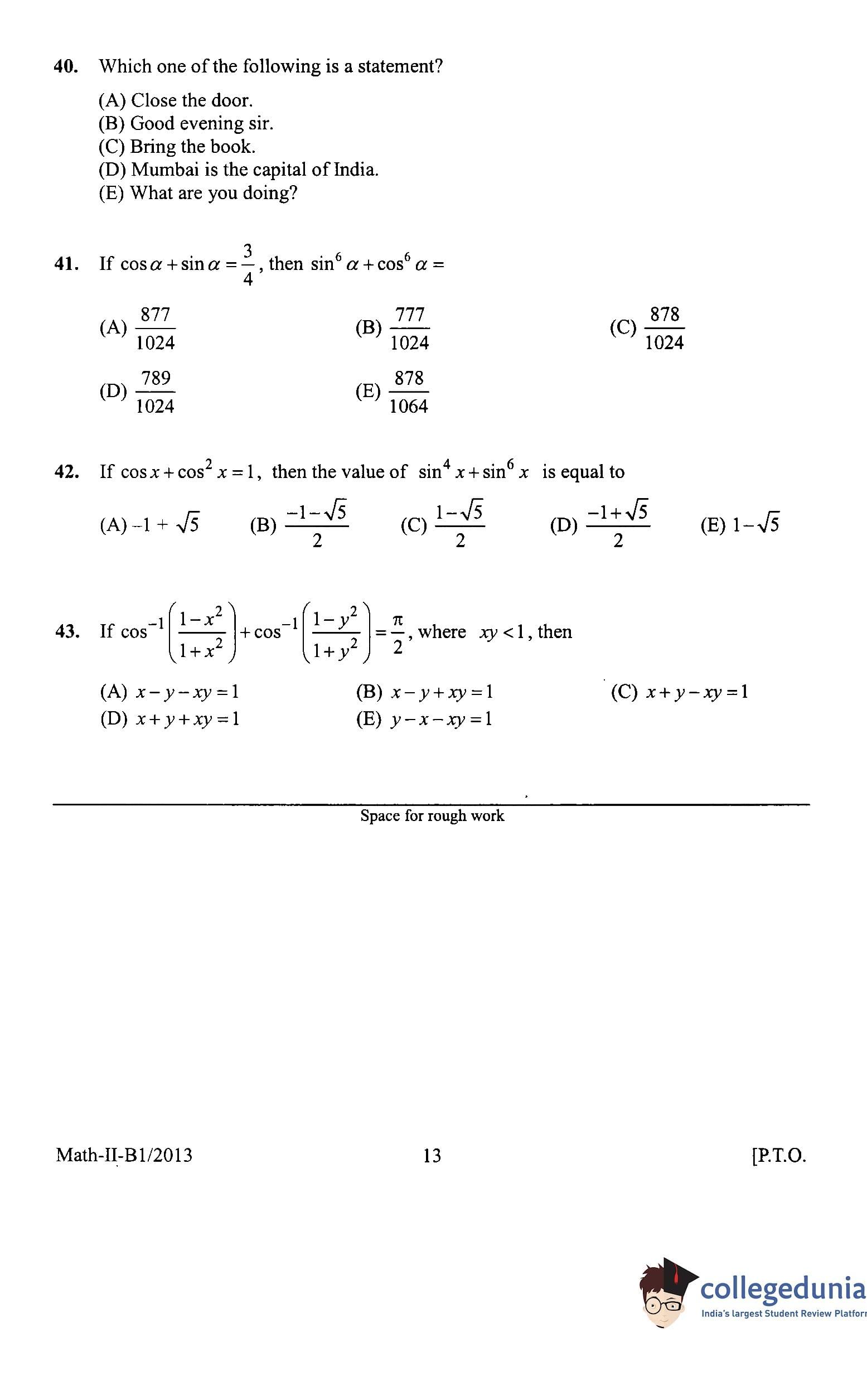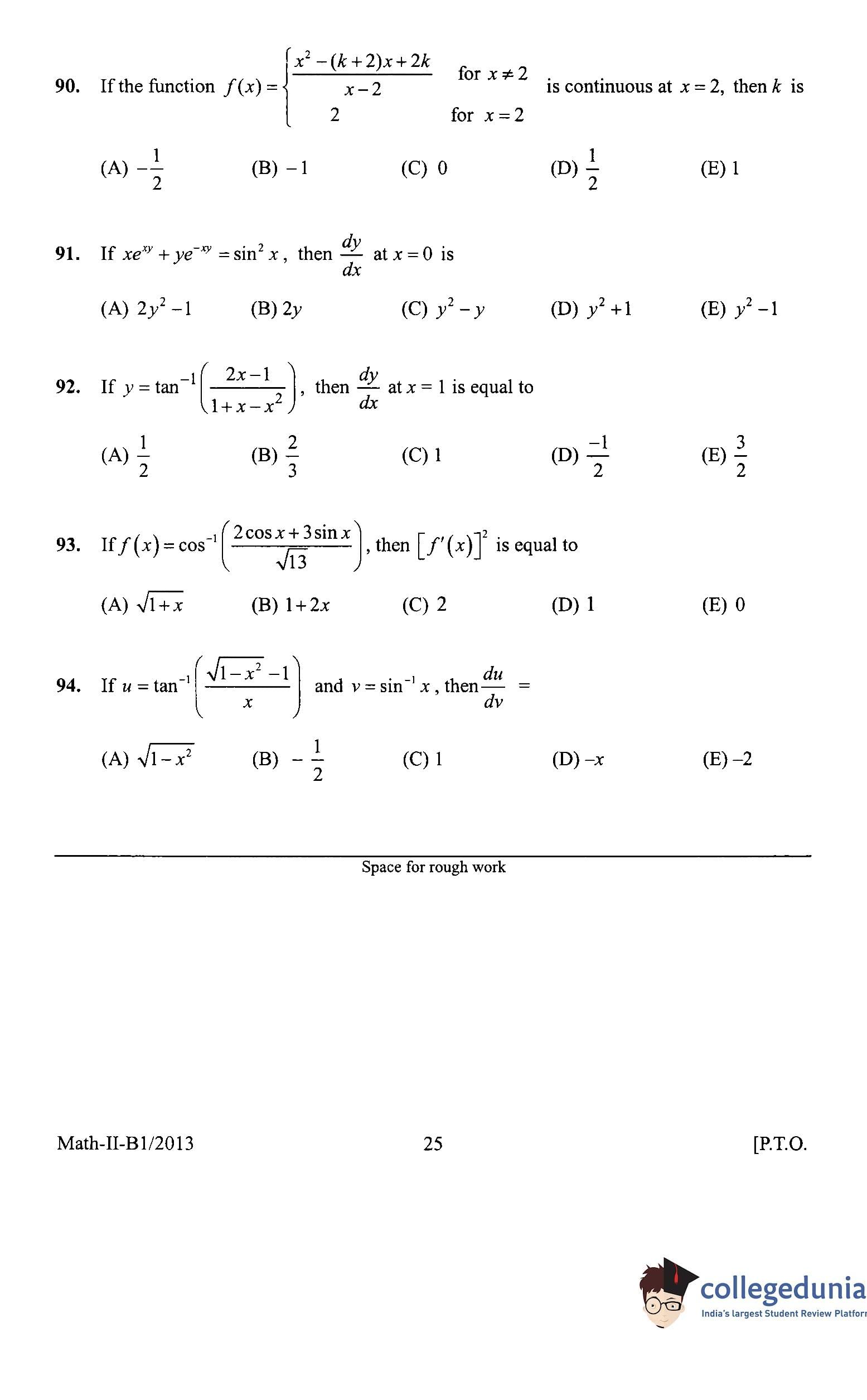 KEAM 2013 Mathematics Question Paper with Answer Key pdf is available for download. The exam was conducted by Commissioner of Entrance Examination (CEE) on April 23, 2013 in the Morning Session 10 AM to 12:30 PM. The question paper comprised a total of 120 questions.