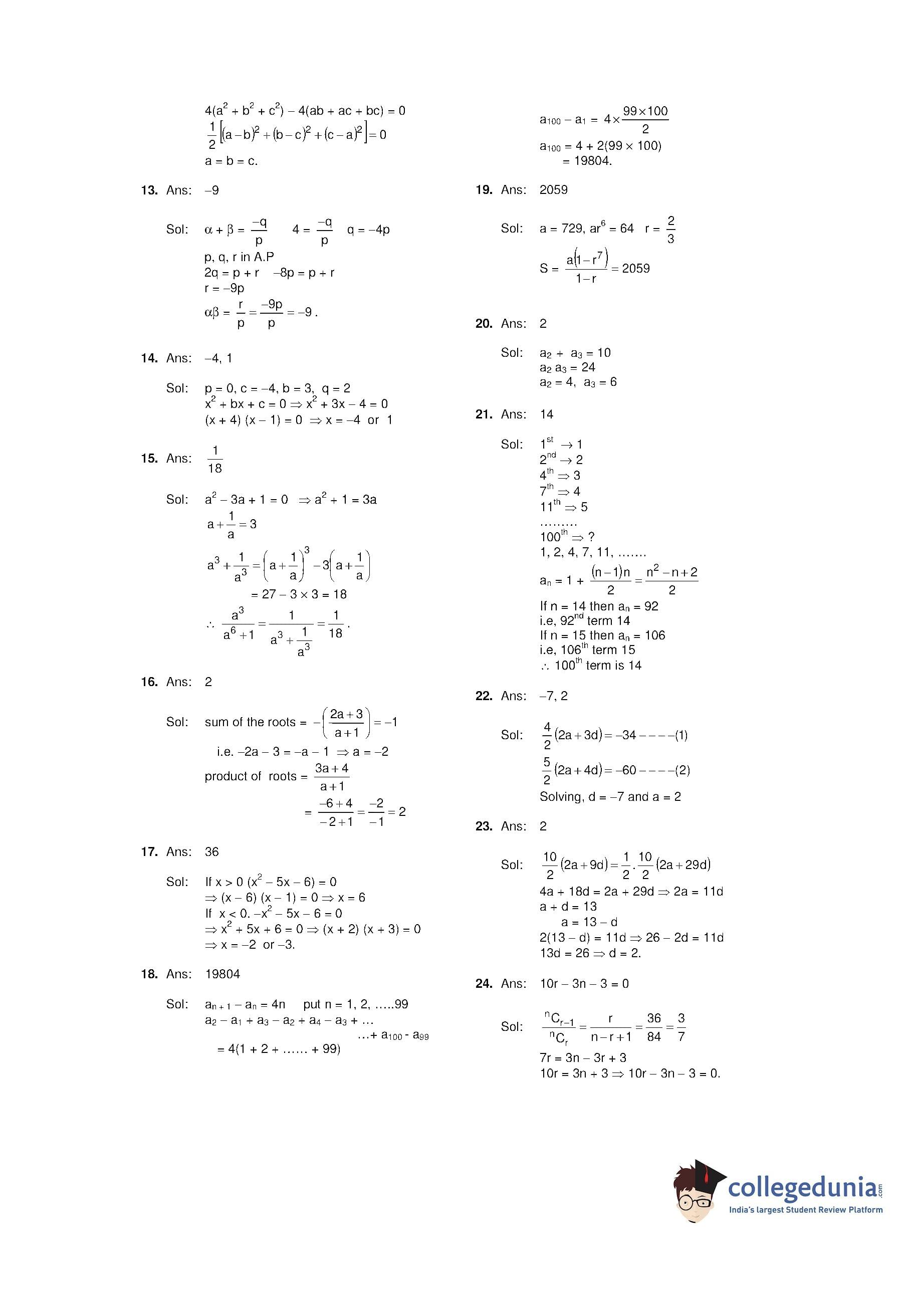 KEAM 2013 Mathematics Question Paper with Answer Key PDF
