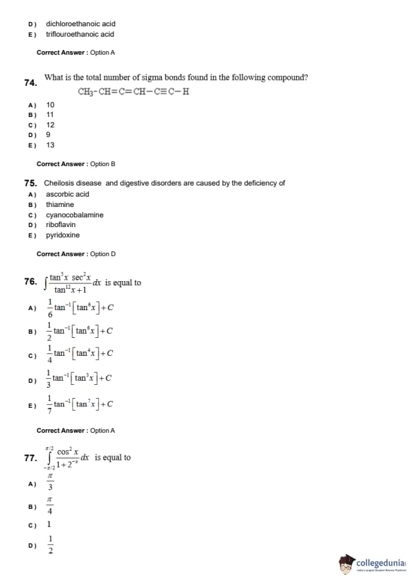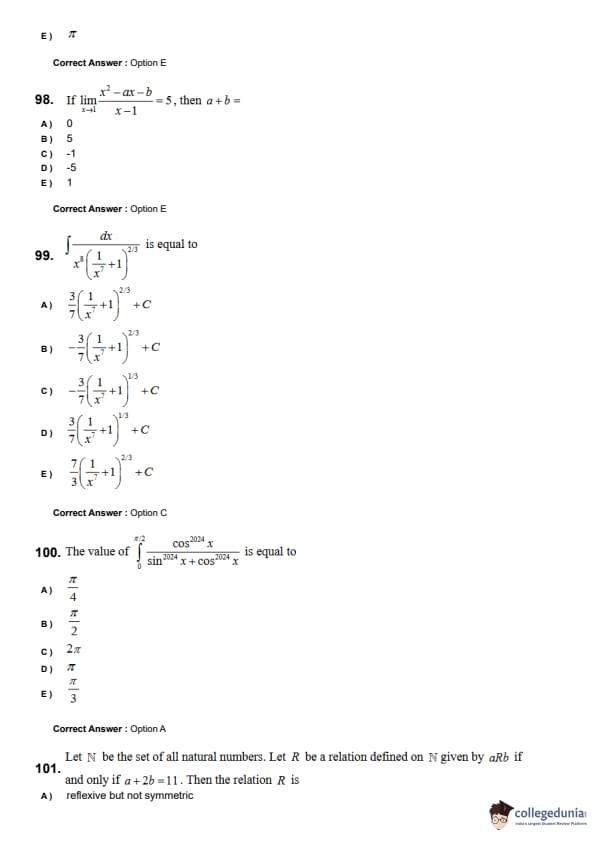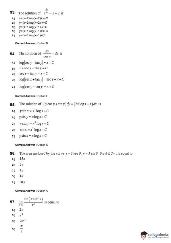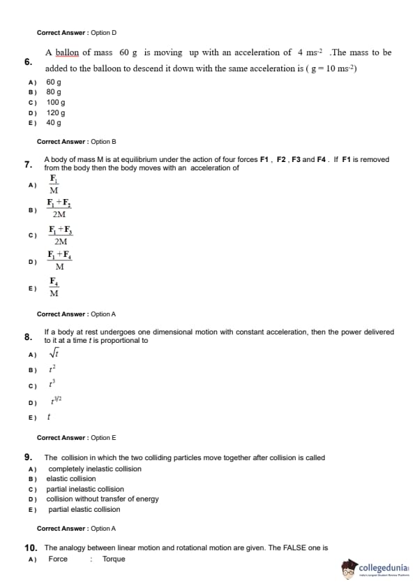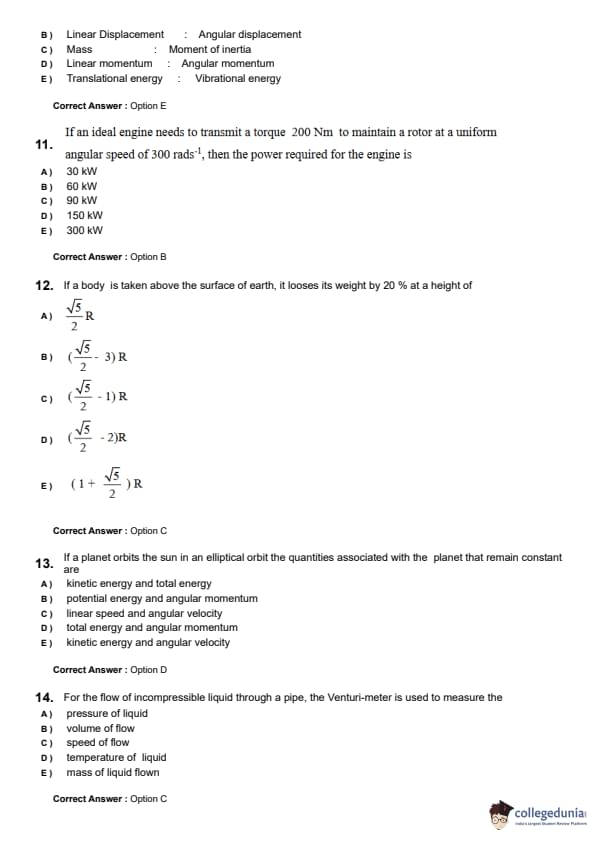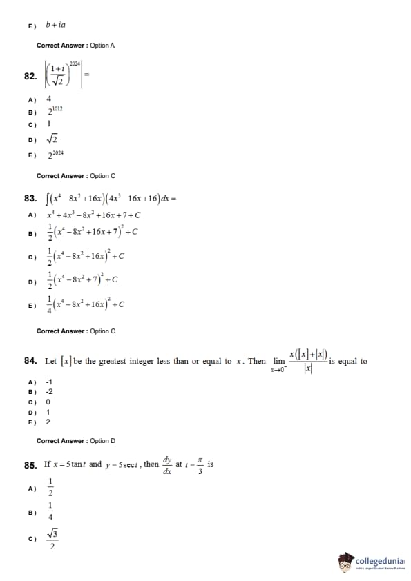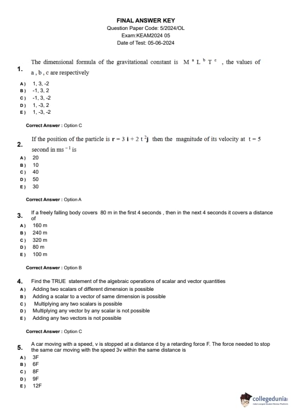 | KEAM 2024 (June 5) Question Paper with Answer Key | Check Solution |