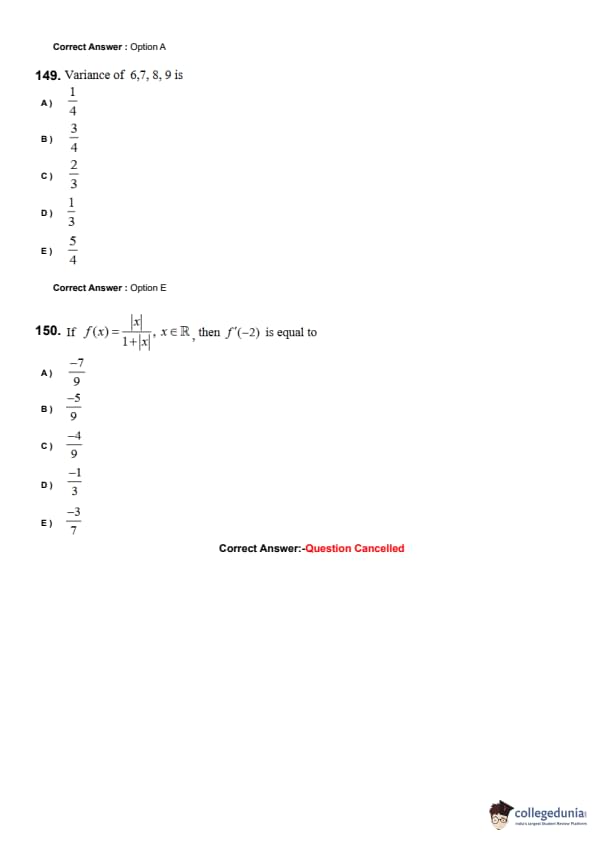 Thus, the variance is \( \frac{5}{4} \). Therefore, the correct answer is option (E). Quick Tip: To calculate the variance of a set of numbers, first find the mean, then calculate the squared differences from the mean for each number, and finally find the average of these squared differences.