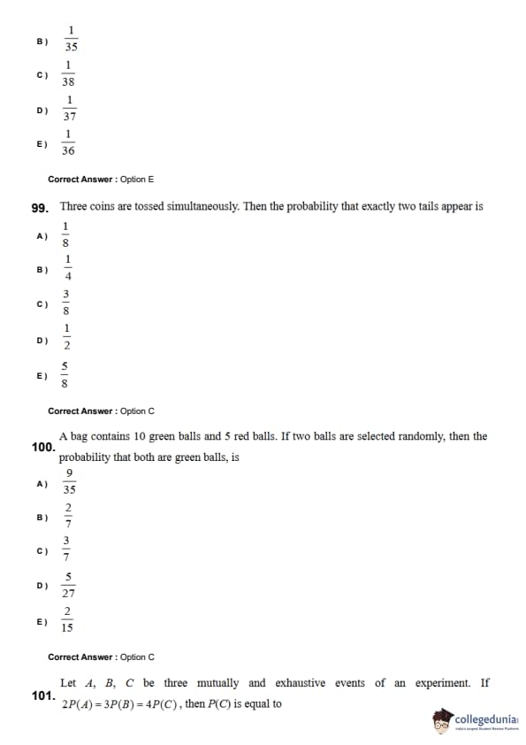 Let \( A, B, C \) be three mutually and exhaustive events of an experiment. If \( 2P(A) = 3P(B) = 4P(C) \), then \( P(C) \) is equal to: